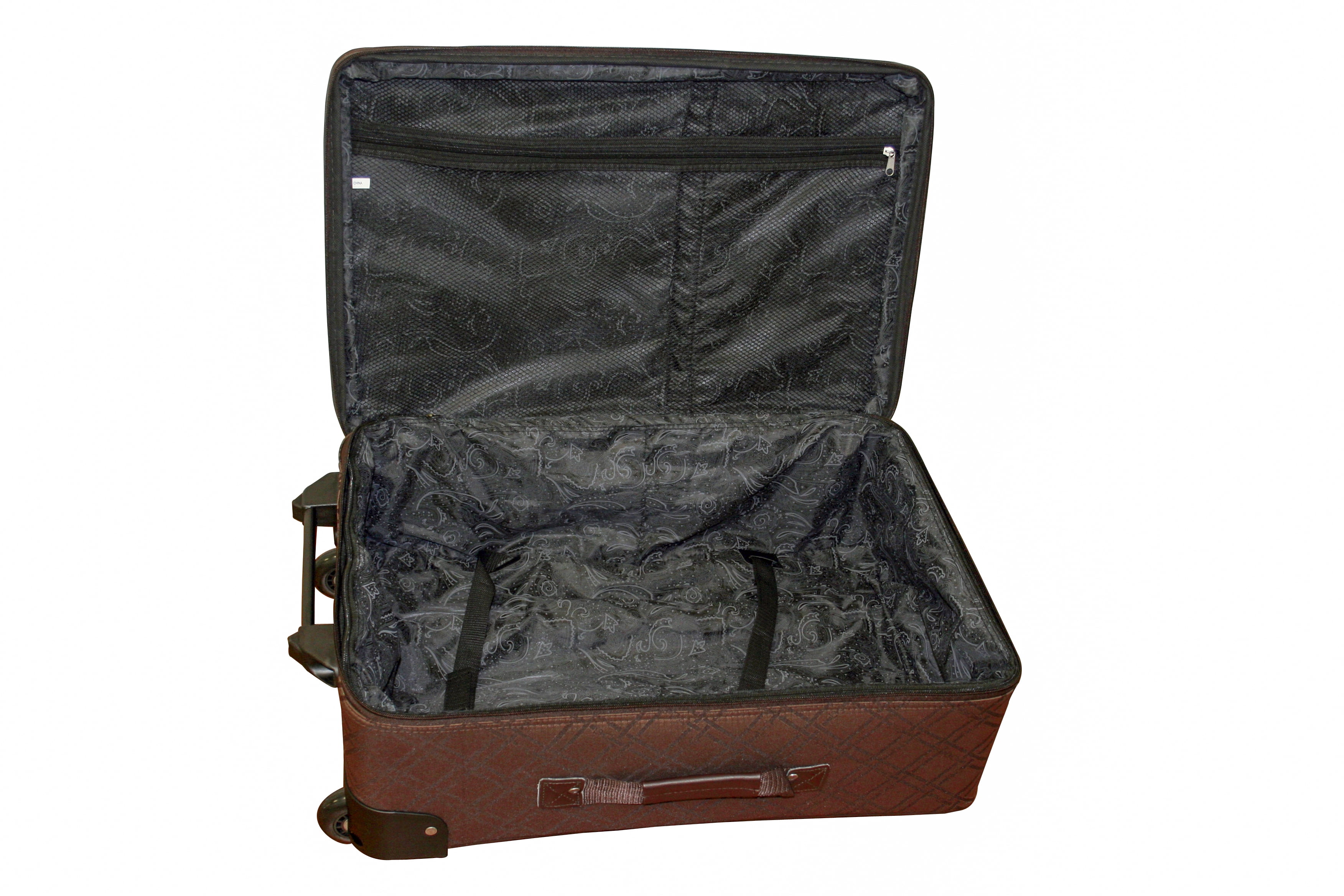 American Flyer 5-Piece luggage set includes 3 rolling upright luggages, a Wheeled Duffel & a Cosmetic Satchel. Large Rolling Upright: 28″ X 18″ X 10″ – 11 lbs. Medium Rolling Upright: 25″ X 16″ X 8.5″ – 9.2 lbs. Small Rolling Upright: 20″ X 14″ X 7.5″ – 7.4 lbs. Wheeled Duffel: 18″ X 11″ X 11″ – 4.4 lbs. Cosmetic Satchel: 13″ X 8″ X 7″ – 1.2 lbs. Easy-to-find print at the baggage claim Uprights feature a telescoping handle, top & side handles for easy mobility In-line skate wheels offer a quieter & smoother ride Wheeled Duffel has a U-Zip opening for quick packing Cosmetic Satchel includes detachable shoulder strap & exterior pockets for added storage & organization