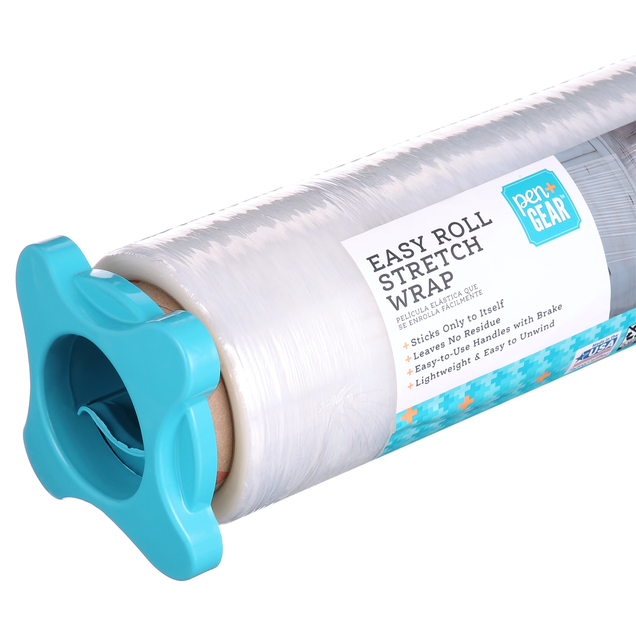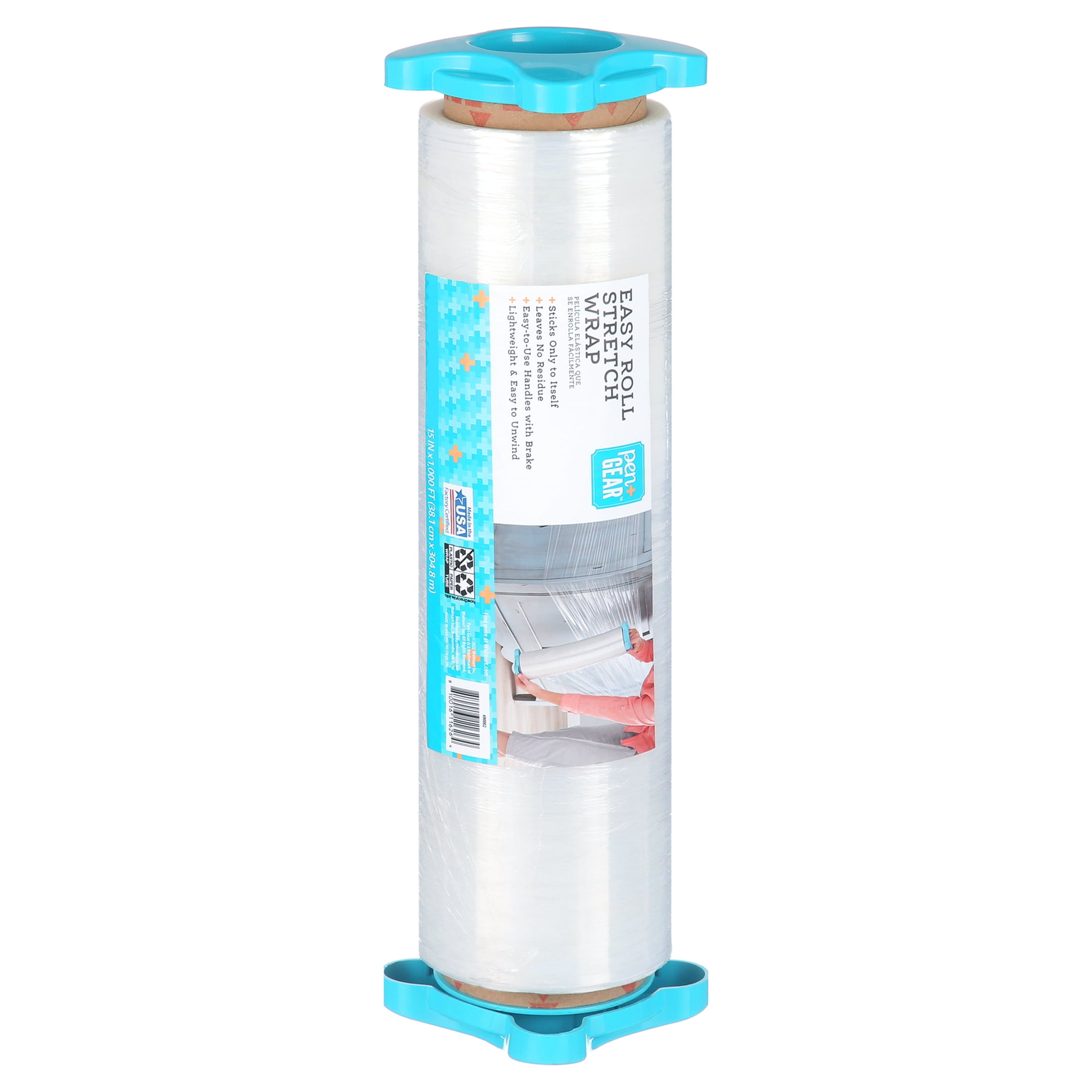 Ideal use for surface protection during moving, storing or shipping Also used for securing drawers and cabinets while moving or storing Can be used to secure items when in transit Lighter weight than regular stretch film, and easier to unroll and use Includes 2 handles for ease of use application Made of plastic Sticks only to itself and leaves no residue behind on your items Easy to dispense and unroll Lightweight stretch and shrink wrap Color: Clear Size: 15 inches x 1,000 feet Brand: Pen+Gear Case Size: Includes 6 Rolls Model # 651648036C