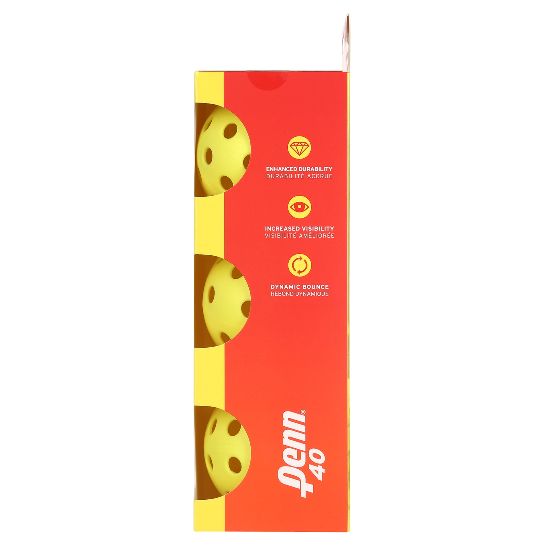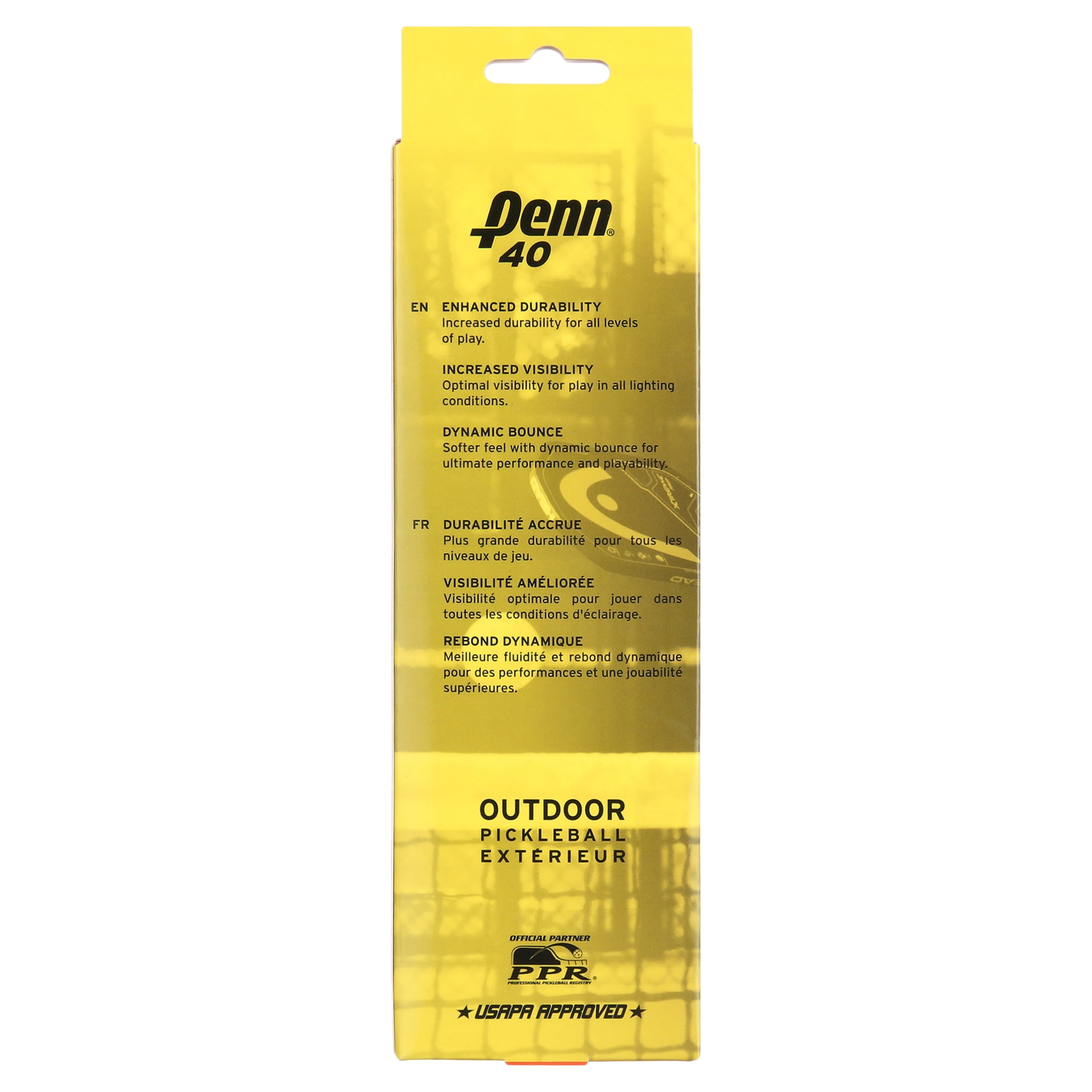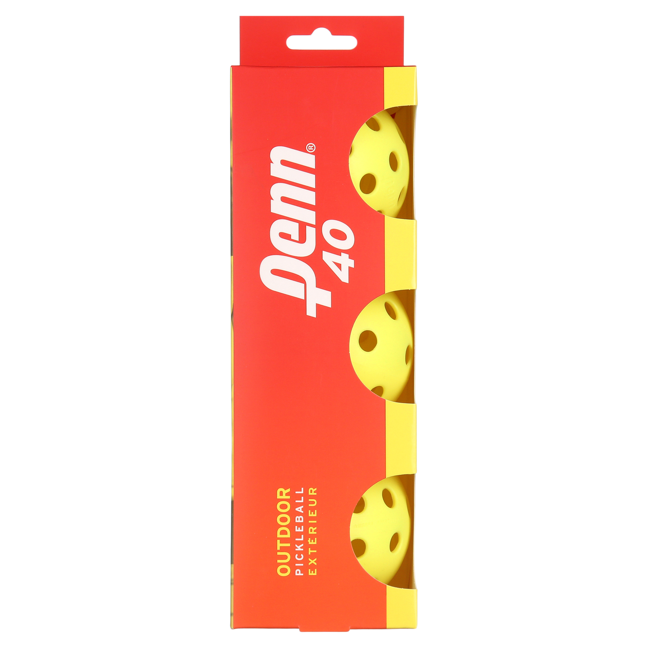 Penn 40 Outdoor Pickleball Ball Sleeve contains 3 balls High Visibility Yellow Color in all conditions Great for Beginning/Intermediate players 1 Year Warranty Durable construction ensures the outdoor pickle balls will play like new for as long as possible.