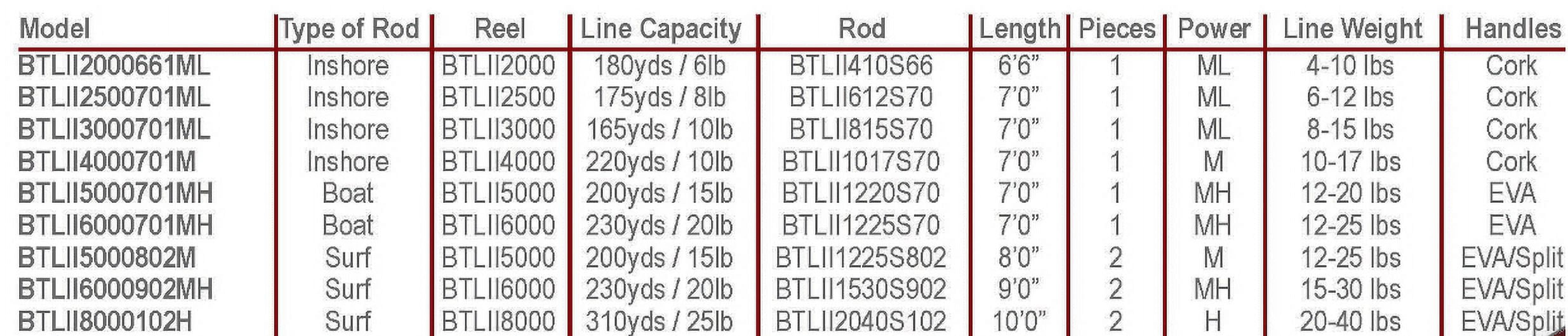 Penn Battle II Spinning Combo: Full Metal Body and sideplates Machined and anodized aluminum spool 5+1 stainless steel bearing system Graphite composite blank Aluminum oxide guides Inshore models have full cork handles Boat and surf models have EVA handles Perfect for saltwater fishing and freshwater fishing More Specifications: Mono Capacity yd/lb: 335/15 230/20 210/25 Bearing Count: 6 Rod Power: Medium Heavy Rod Length: 7′ Number of Pieces: 1 Technique: Boat Line Rating: 12-25 Reel Handle Position: Right/Left Gear Ratio: 5.6:1 Rod Action: Fast Rod Handle Type: Full Reel Size: 6000 Weight: 22.10 Max Drag lb: 25lb | 11.3kg Reel Spool Material: Aluminum Braid Capacity yd/lb: 490/30 390/40 335/50 Rod Blank Material: Composite Rod Handle Material: EVA Hook Keeper: Yes Guides Including Tip: 8 Lure Rating: 3/4-2 Guide Type: Aluminum Oxide Rod Butt: Straight Reel Seat: Graphite