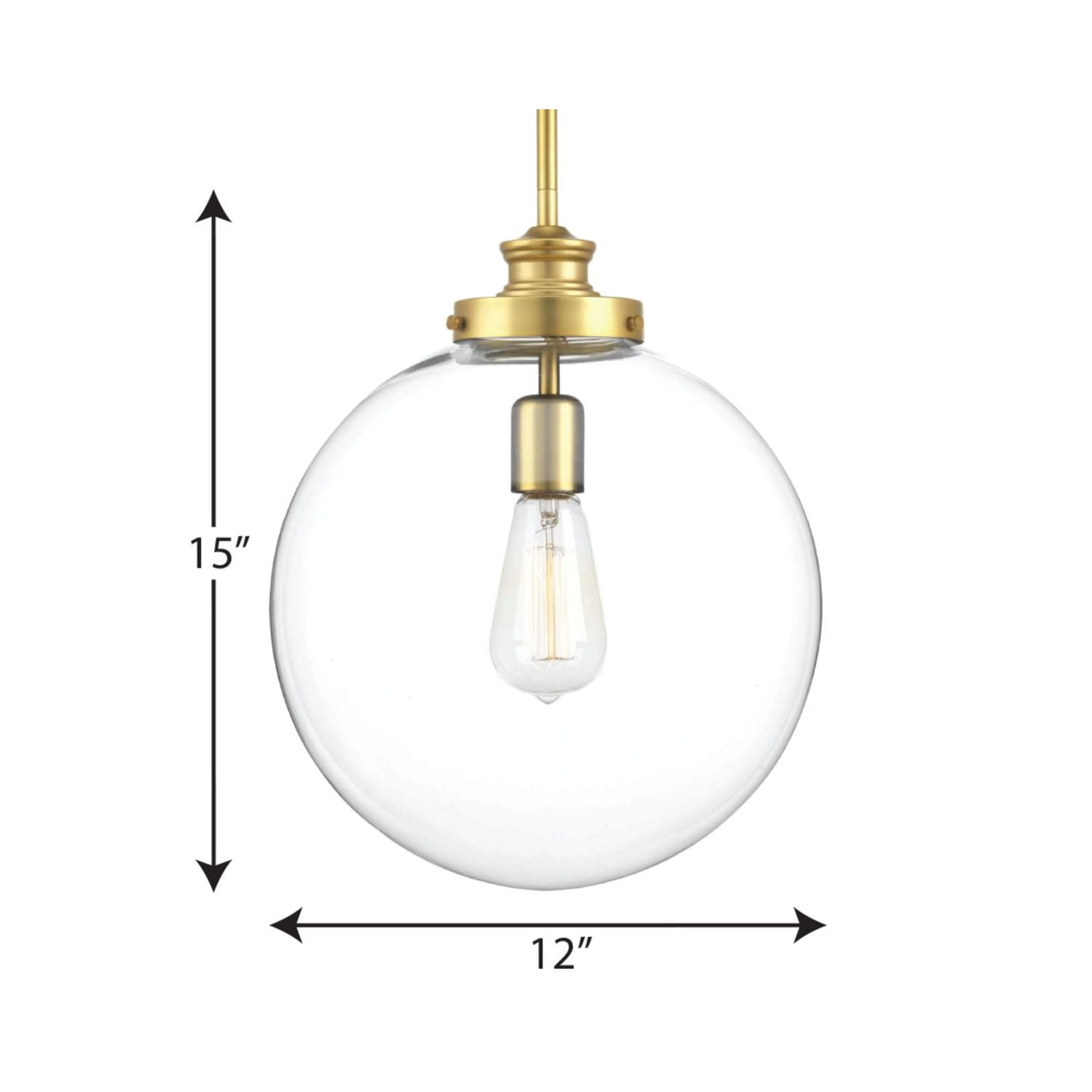 Ideal for any kitchen island, dining room, kitchen, breakfast nook, entryways, bathroomsor bedroom. Perfect for farmhouse, global, vintage electric and coastal style settings A distinctive clear round classic glass globe is accented by a striking golden natural brass cap Fixture is 12-in diameter and 15-in height, maximum installation length 81-in Bulbs: For ideal illumination, use 1 medium base bulb that is sold separately (60w max – LED/CFL/incandescent), clear bulbs recommended. Include one 6″, four 12″ stems and 8″ of chain for a variety of ceiling heights. Can be displayed singularly or in groupings of two or more in a variety of spaces. Our 1-Year Limited Warranty guarantees your complete satisfaction with your purchase and includes professional after-sales customer service support. Progress Lighting products are designed for exceptional quality, reliability, and functionality Includes installation instructions and mounting hardware
