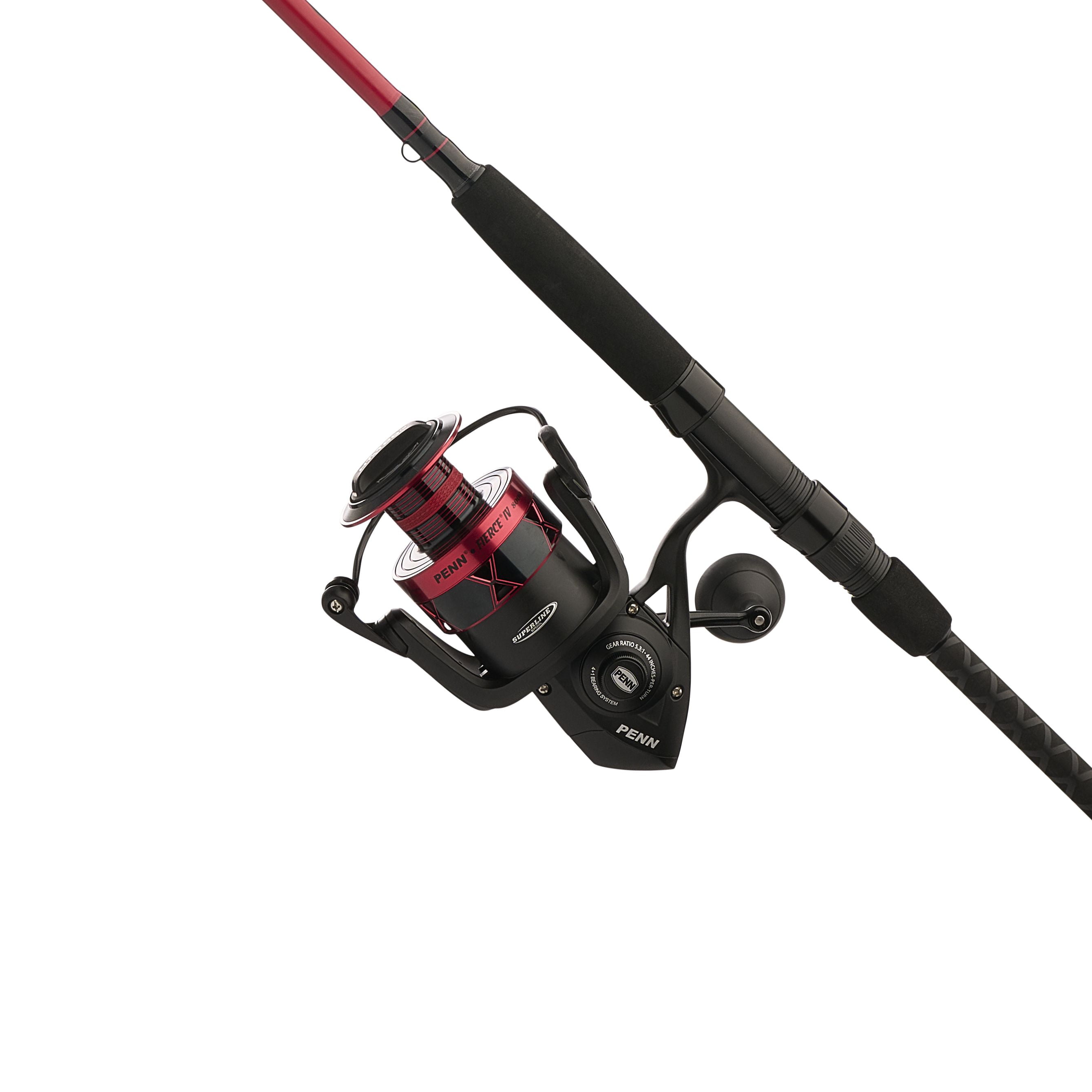 PENN FIERCE IV 10’ FISHING ROD AND REEL SPINNING COMBO: Power and performance to win combat with the toughest fish. SUPERIOR CONSTRUCTION: 2-piece, Graphite Composite rod offers a durable and break-resistant yet lightweight tool for any angler. RECOVERY RATE: Recovers at the rate of 44″ | 112cm with every turn of the crank. Gear ratio of 5.3:1. The reel features a full metal body and sideplate for improved durability. HT-100 FRONT DRAG: Max drag: 30lb | 13.6kg. Mono capacity yd/lb: 340/20 310/25 230/30. Braid capacity yd/lb: 475/50 390/65 345/80. 5 TOTAL BEARINGS: 4+1 sealed stainless steel ball bearing system with instant anti-reverse feature provides smooth operation for any fishing experience. 20-40 LB LINE RATING, HEAVY POWER, MODERATE FAST ACTION, LURE RATING OF 2-6. 6 DURABLE GUIDES: One-piece PENN Dura-Guides provide a durable, stamped solution for the heat and tension of stressed lines. ROD HANDLE CONSTRUCTION: Split EVA/Rubber Shrink Tube handle is made for right and left handed anglers.