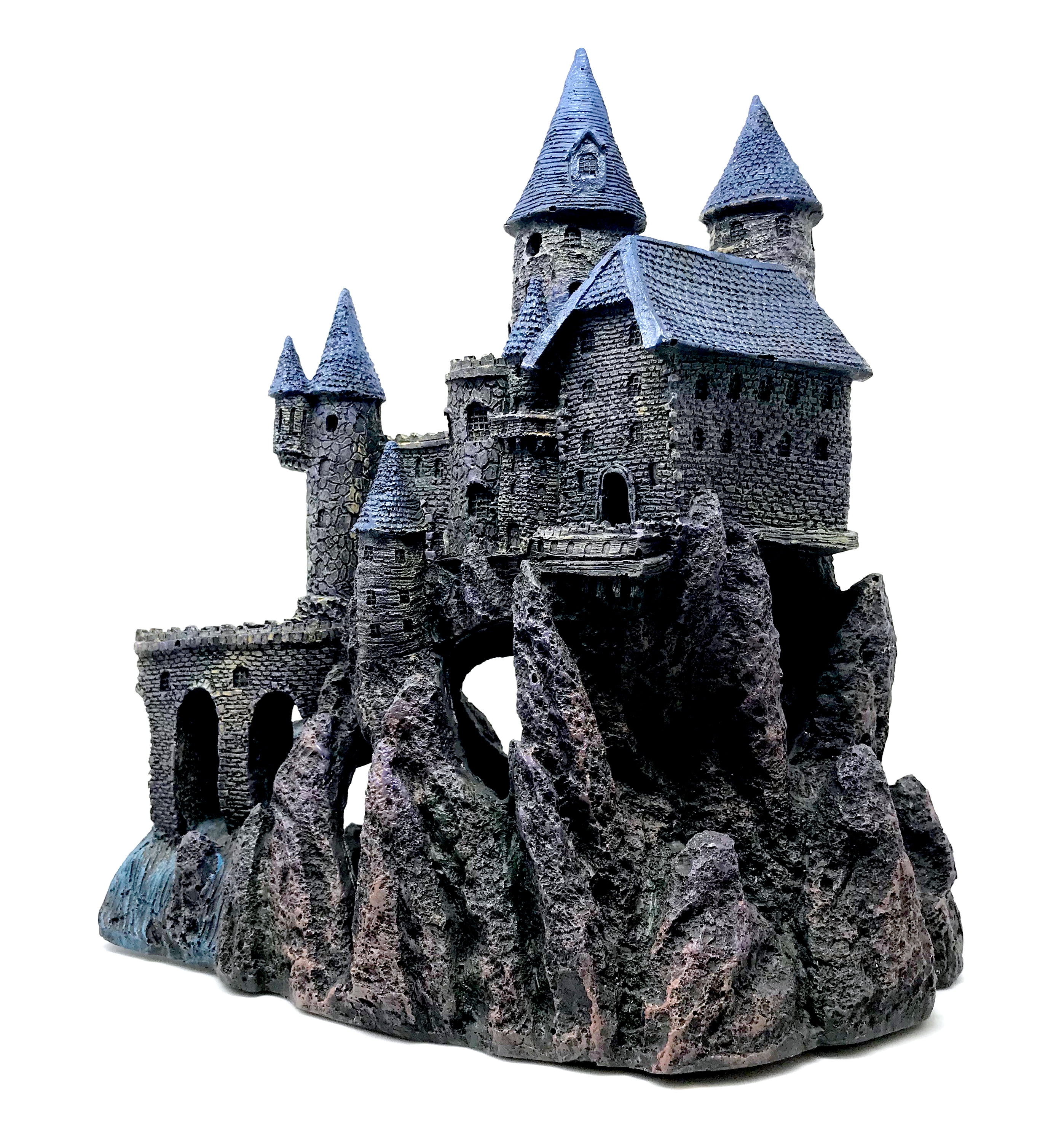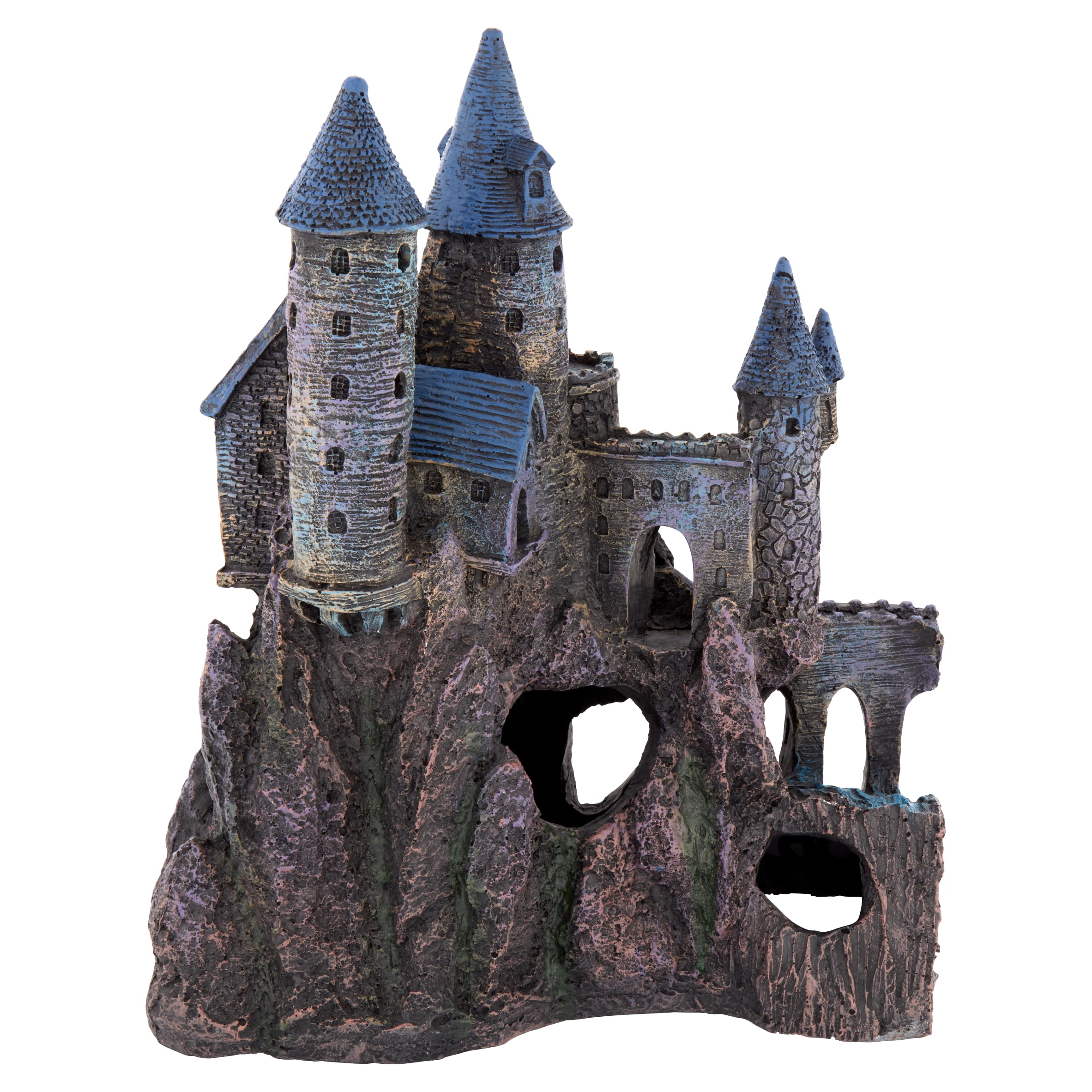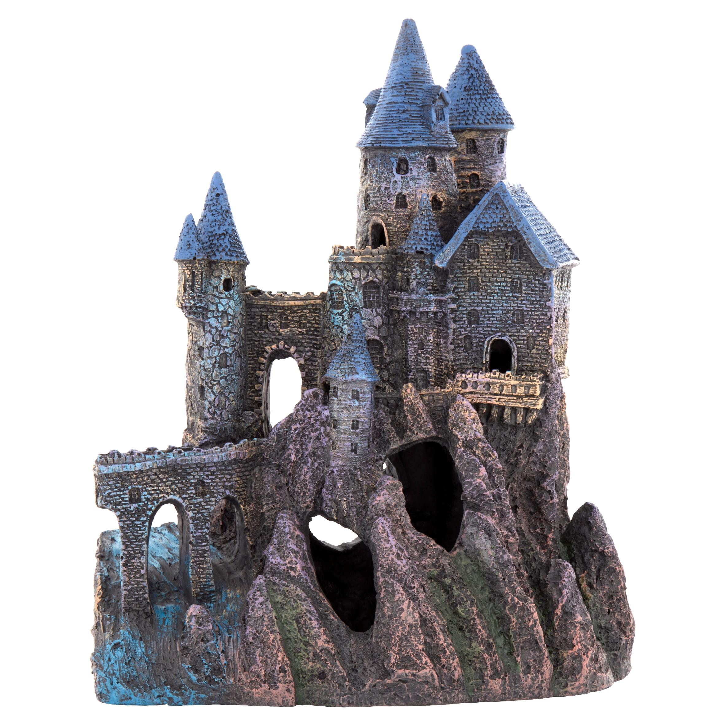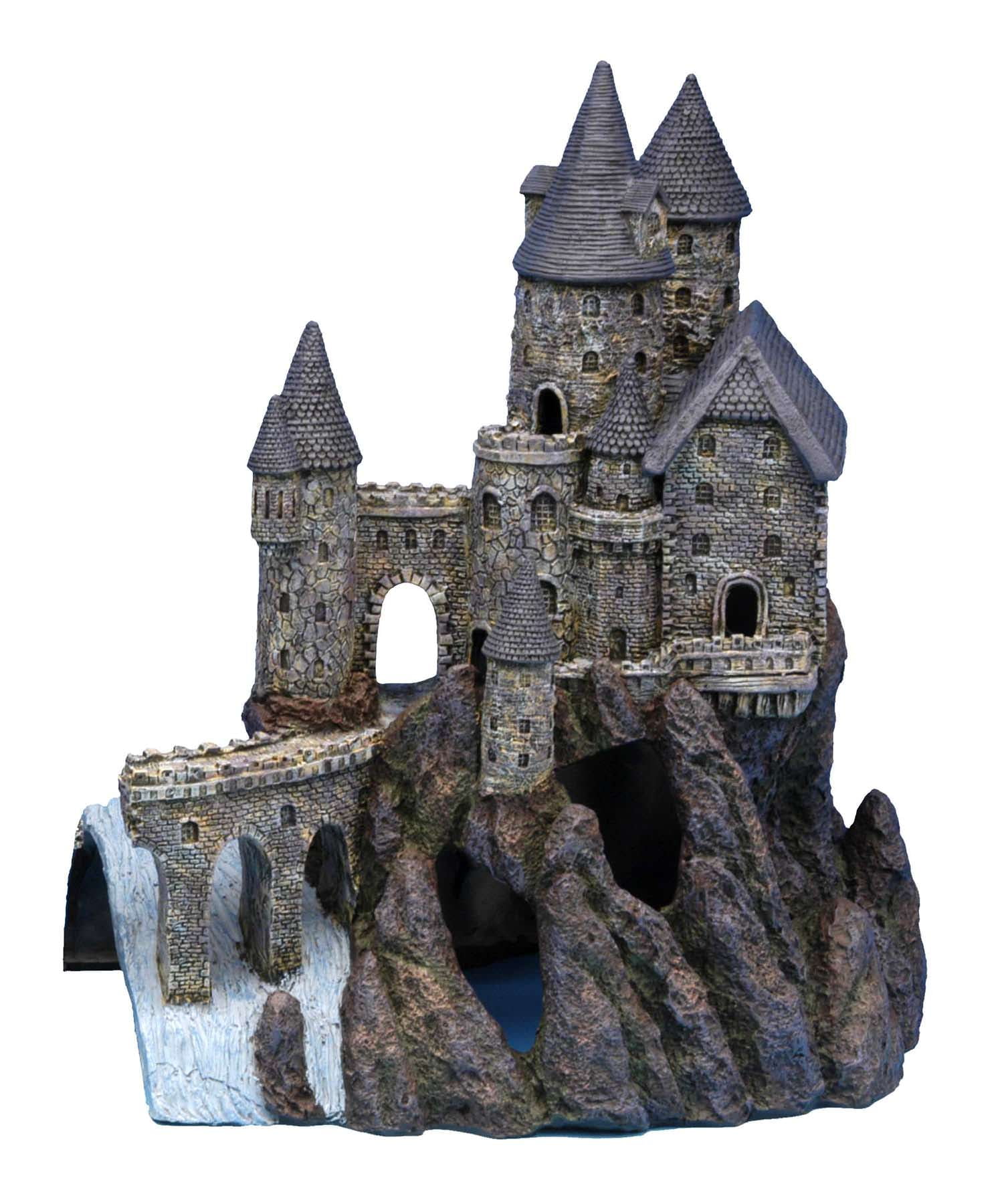 Aquarium Decor MAJESTIC AND MYTHICAL: Add some whimsical charm and wonder to your fish tank with the Extra Large Wizard’s Castle – Part B Aquarium Decoration. This fully colored aquatic ornament features an extra large gray castle perched upon a rocky hill, with bule cone-shaped roofs, towers, archways, and stone details that give a realistic feel from times of old. 2 HALVES OF A WHOLE: The Extra Large Wizard’s Castle Aquarium Decoration comes in two pieces: Part A (Model Number = RRW9) and Part B (Model Number = RRW10). Please note that while these 2 separate parts are also available for sale together, this listing is only for Part B. Care and Cleaning: Rinse With Warm Water, Never Use Soap or Detergent MEASUREMENTS: Overall Assembled Product Depth: 8.5 in Assembled Product Height: 15 in Assembled Product Weight: 6.2 lb Assembled Product Width: 13 in