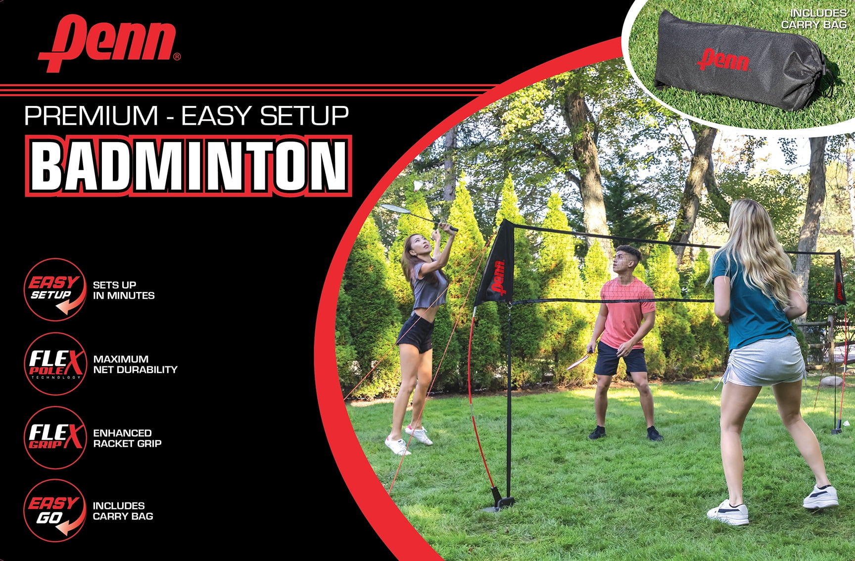 Penn Premium Easy Setup Badminton Set, Includes 4 Rackets and Shuttlecocks