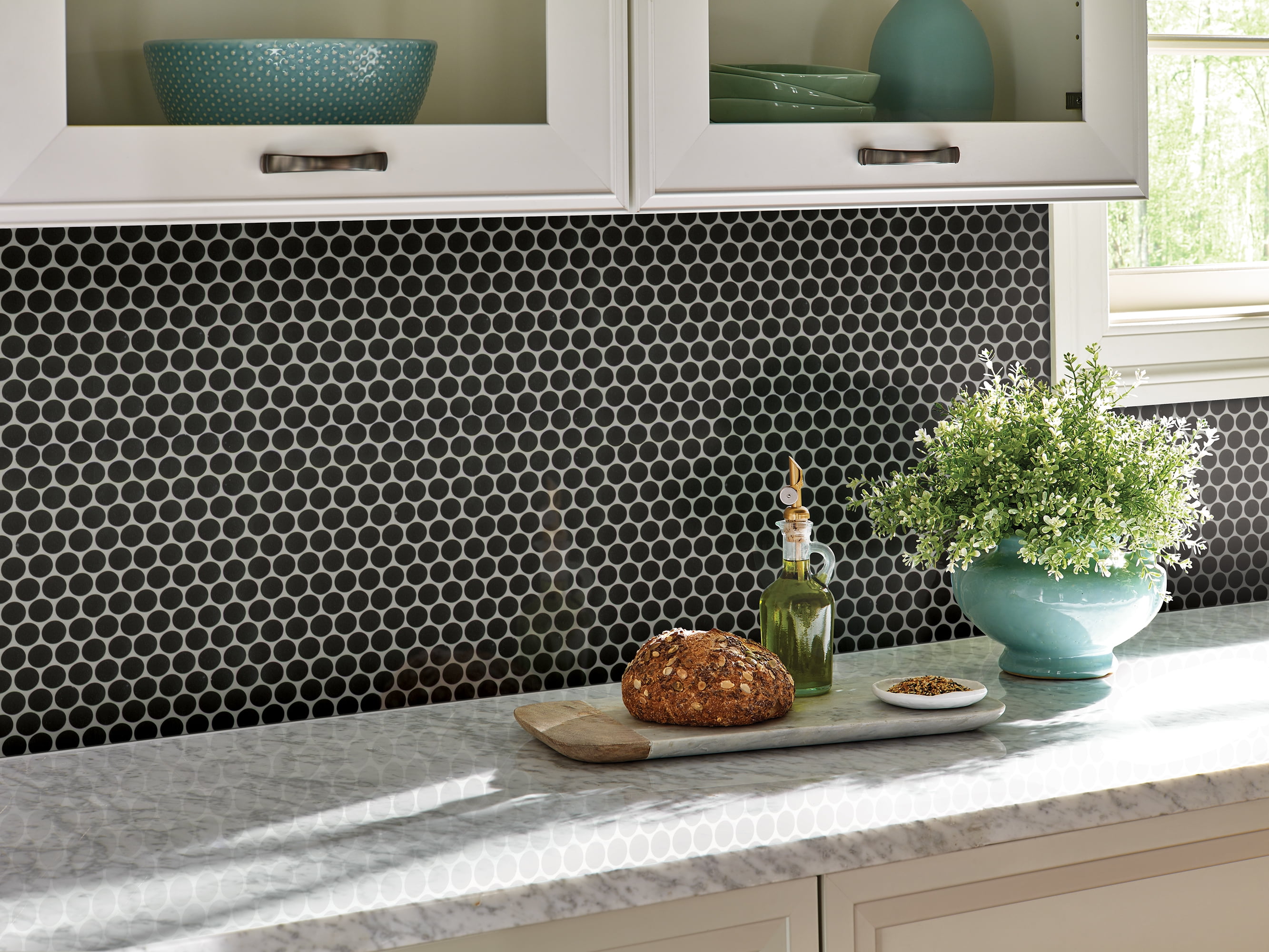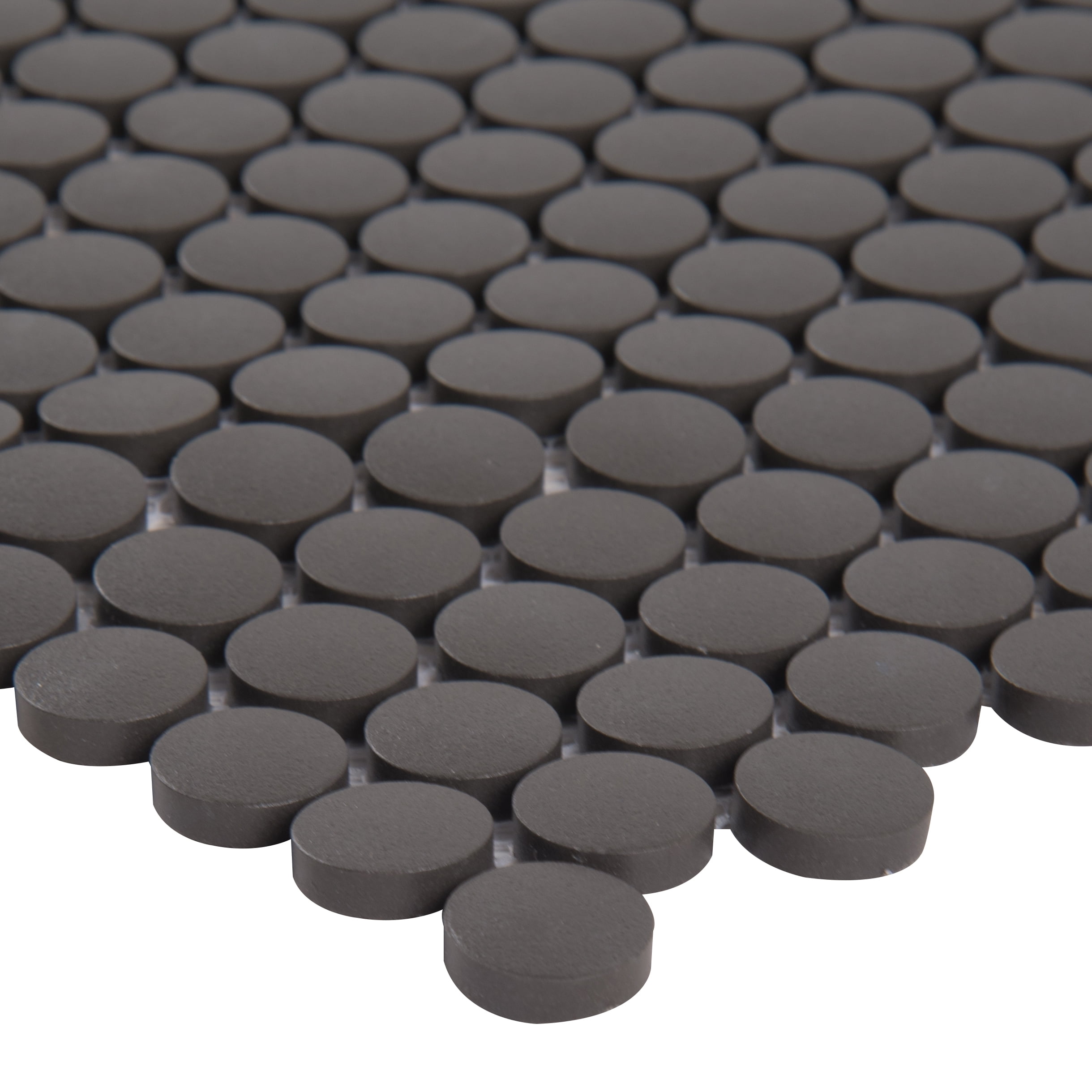 Penny Round Nero 11.3 in. x 12.2 in. x 6 mm Porcelain Mesh-Mounted Mosaic Tile (14.36 sq. ft. / case)