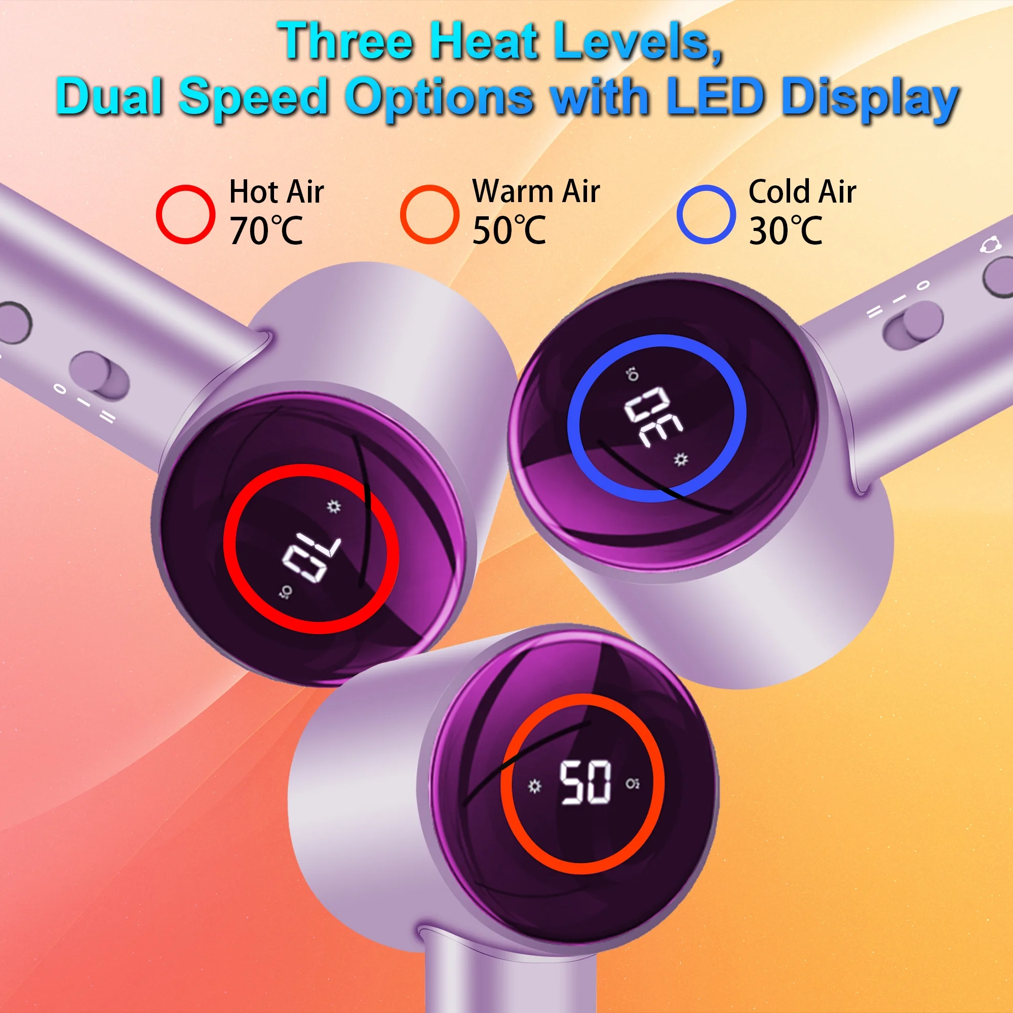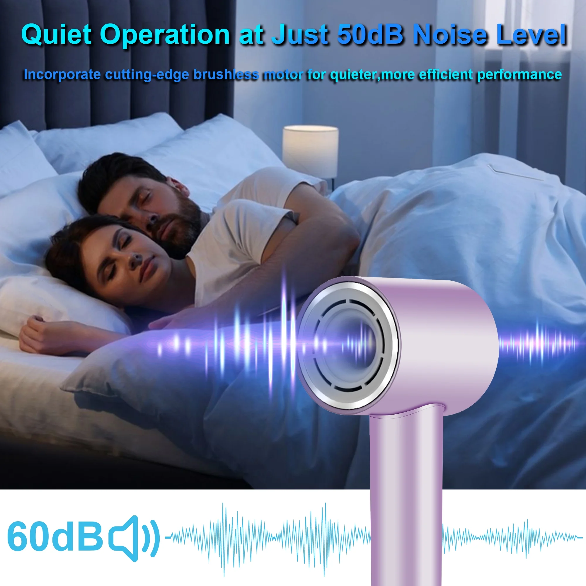 [Quick Drying & Time-Saving] This hair dryer with a 110,000RPM motor dries hair super-fast, up to 6 times quicker than usual. It also protects your hair from too much heat. Enjoy quick and safe hair drying with a powerful airflow of 20m/s. [Negative Ionic Technology]This hair dryer is ergonomically designed to produce 200 million negative ions at a high airflow rate, balancing static electricity in your hair, smoothing frizz, and locking in moisture. This leaves your hair silky smooth and shiny, offering a nourishing and healthy hair care experience. [Low Noise & Safe Hair Blow Dryer] This professional hair dryer features a high soundproof air intake and a layer of PI sound-absorbing material, making it very quiet with noise levels below 50db. It won’t irritate your ears or disturb others when in use. [Multiple Wind Speeds & Temperature]This hair dryer offers three temperature settings (cold, warm, hot) and two speed settings (low, high), along with a cool shot button. These options cater to various hair types and help protect both scalp and hair. [3-Color LED Ring Light] The hair dryer’s LED ring uses colors to show temperature: red for hot, orange for warm, and blue for cold. Flashing red, blue, and orange means it’s switching between hot and cold air. Press and hold to keep it in this mode. [Lightweight & Travel Hair Dryers] This hair dryer is lightweight at only 0.8 pounds, compact, and portable. It’s easy to hold without feeling tired, making it great for both home use and travel. [Enhanced Safety & Self-Cleaning]The hair dryer features a 360° rotating magnetic filter that prevents hair from getting sucked in and a dual air inlet design that boosts airflow by 20%. It also has a reverse cleaning function that automatically clears debris, making maintenance easier. [Perfect Gift for Beloved]This hair dryer is perfect for both men and women with any hair length, making it an ideal gift for family and friends.