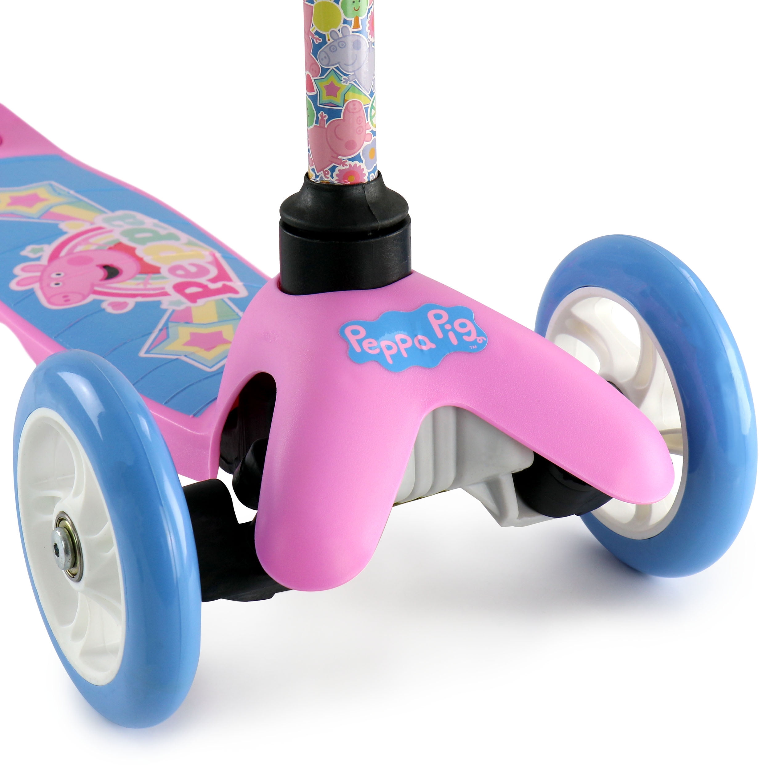 Create long-lasting memories with the Peppa Pig 3 Wheel Tilt and Turn Scooter. The scooter is designed for children ages three to five to begin developing their motor skills, strength, and coordination. The three-wheel design helps your child balance easily with a simple tilt-and-turn steering system. The deck is wide and sturdy and features a rear foot brake so they can build up their confidence and you can have ease of mind as they explore the world.
