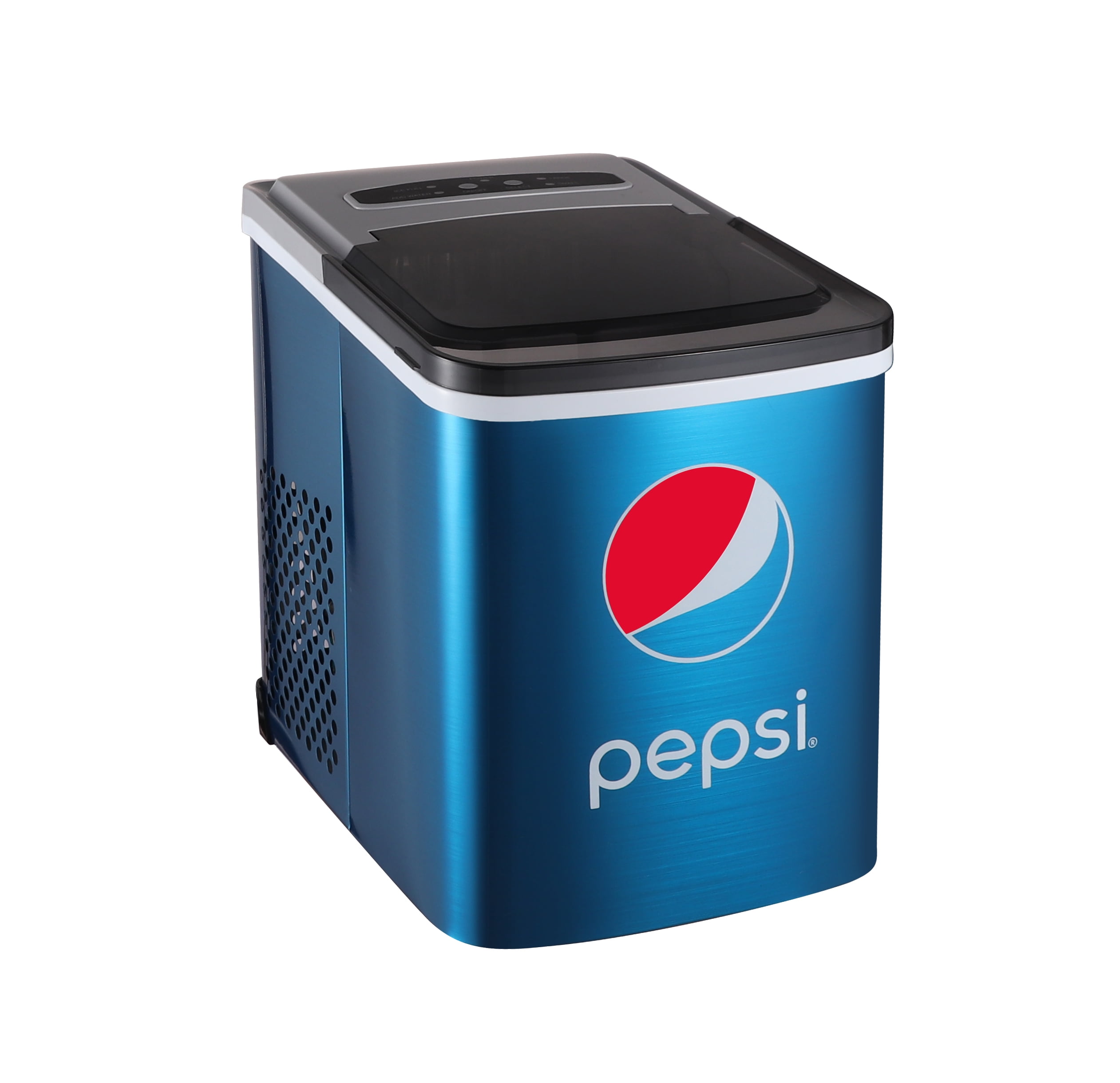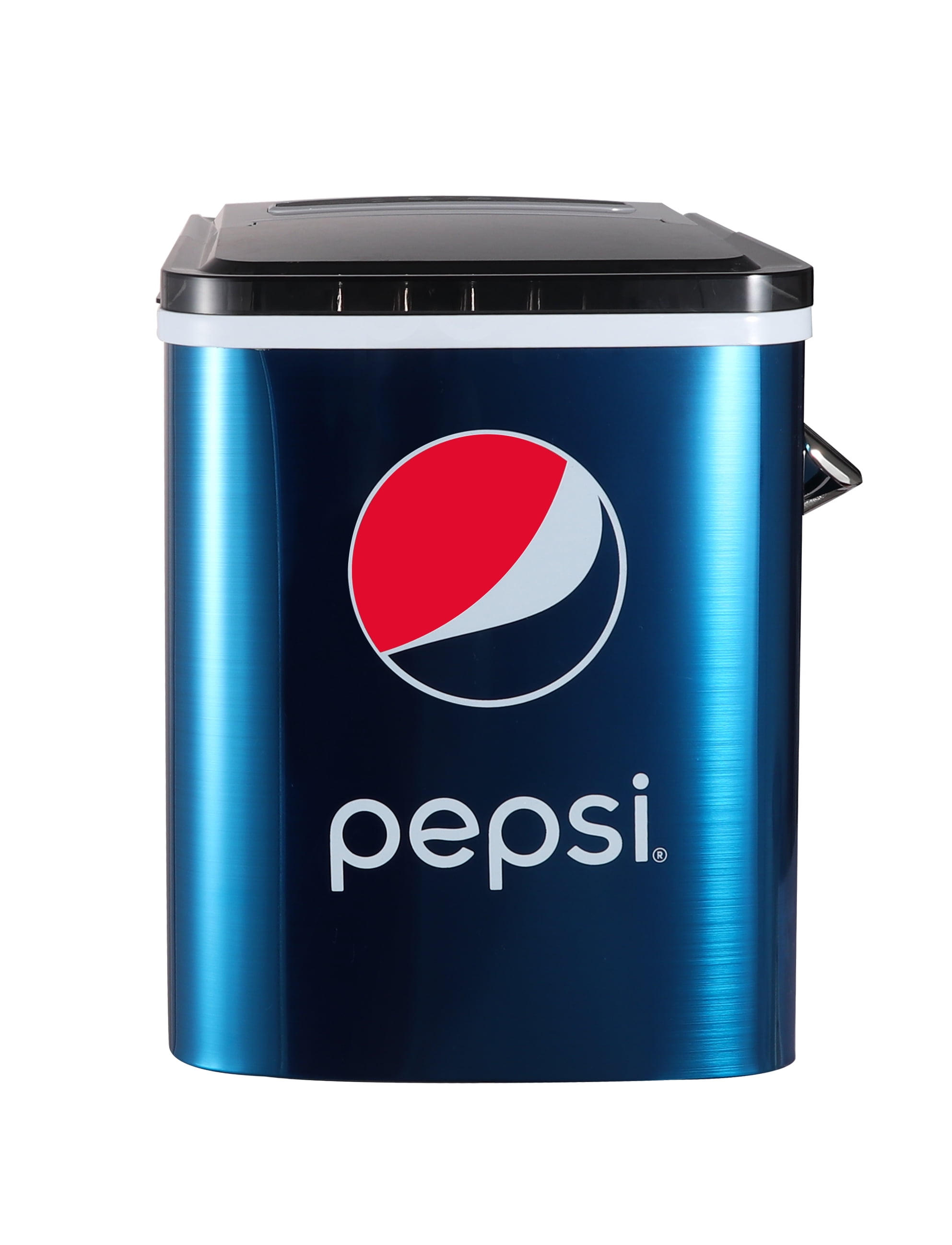 Graphics with official Pepsi logo and eye-catching color scheme make this perfect for collectors and beverage enthusiasts. Whether you’re entertaining guests during the holidays or need a way to cool down your pop beverages in those scorching summer months, the Pepsi blue stainless steel 26-pound ice maker will make every season that much easier. Boasting a 26-pound ice making capacity, it doesn’t skimp on style with a blue stainless-steel finish that makes it looks great with any décor. Opening bottles is a breeze with this built-in side bottle opener. It features a sleek look and a compact space-saving design that’s just the right size for your kitchen. It has LED-backlit controls that make them a breeze to read.
