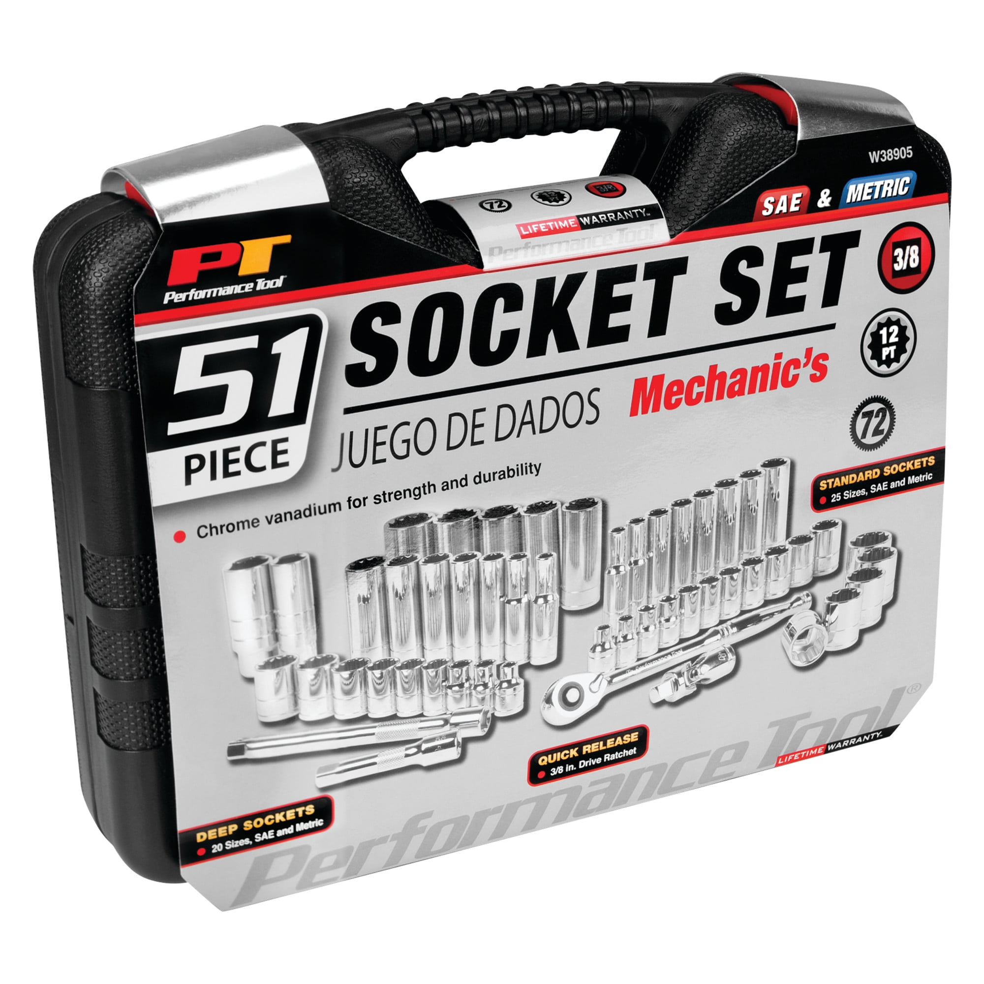 Performance Tool W38905 3/8-Inch Drive Mechanic’s Set, 51-Piece