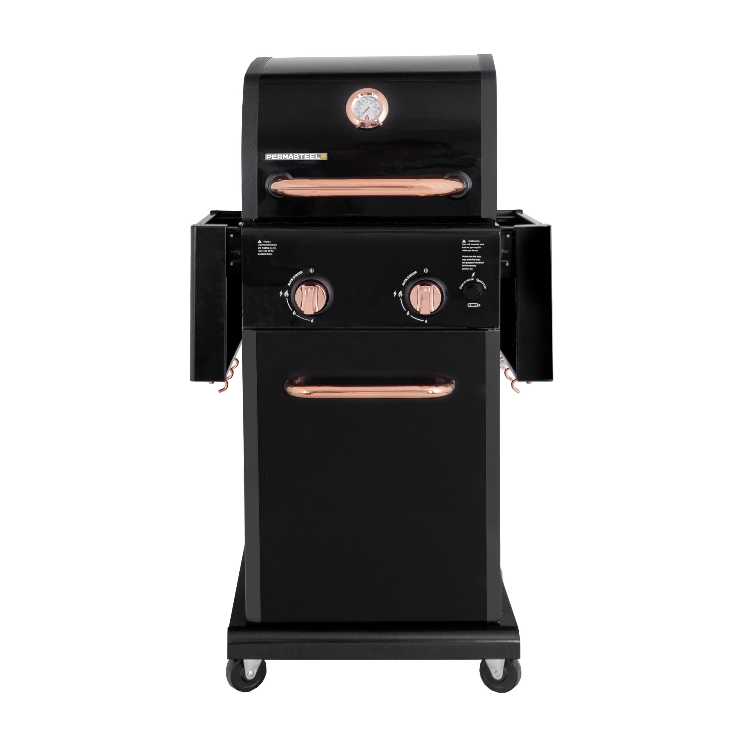 Permasteel 2-Burner Compact Propane Gas Grill with Foldable Sides, Black with Copper Accent