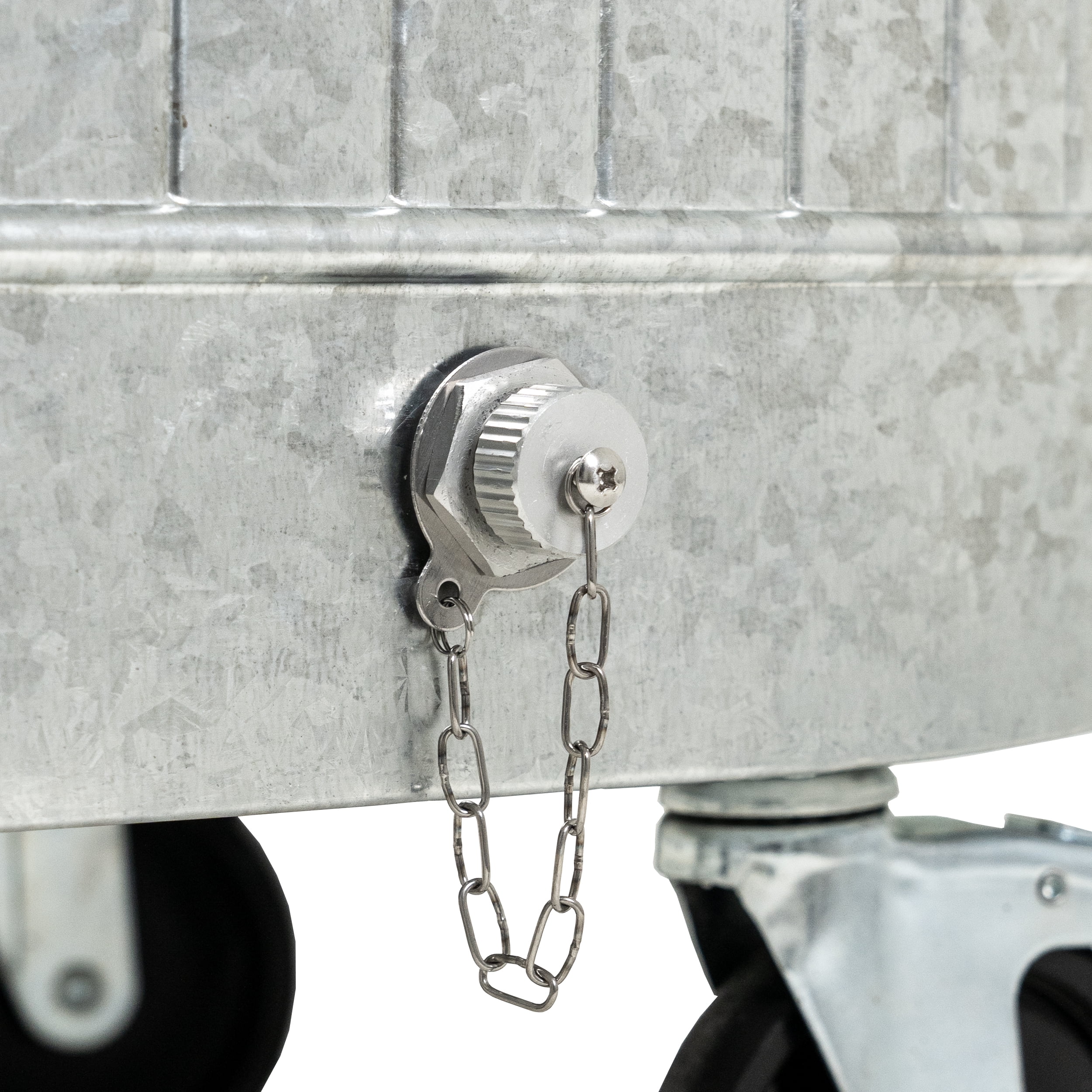 Farmhouse, Rustic Appeal: Stylish galvanized steel body for a sleek appearance High-Capacity Insulation: Holds up to 110 12-oz cans Convenient Lid Access: Fully removable flip-top lid design for easy access Added Functionality: Comes equipped with a built-in bottle opener and cap catcher Robust Handling: Heavy-duty handles for effortless lifting Molded Cup Holder: For secure placement of drinks Mobile Stability: 360° rolling casters with two lockable for easy mobility Easy to Clean: Drain plug for easy cleanup, releasing melted ice water