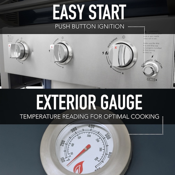 - Permasteel 33-inch grill cover (PA-1023BK) pairs well with this grill, Lowe’s item number # 2881831