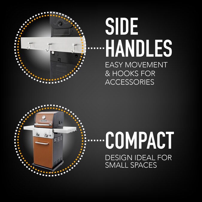 - Permasteel 33-inch grill cover (PA-1023BK) pairs well with this grill, Lowe’s item number # 2881831