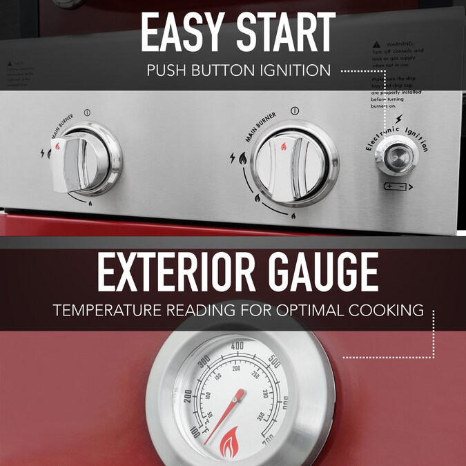 - Porcelain-coated cast iron cooking grates allow for even heat distribution and heat retention, are easy to clean, and comes with electronic ignition to start grilling right away