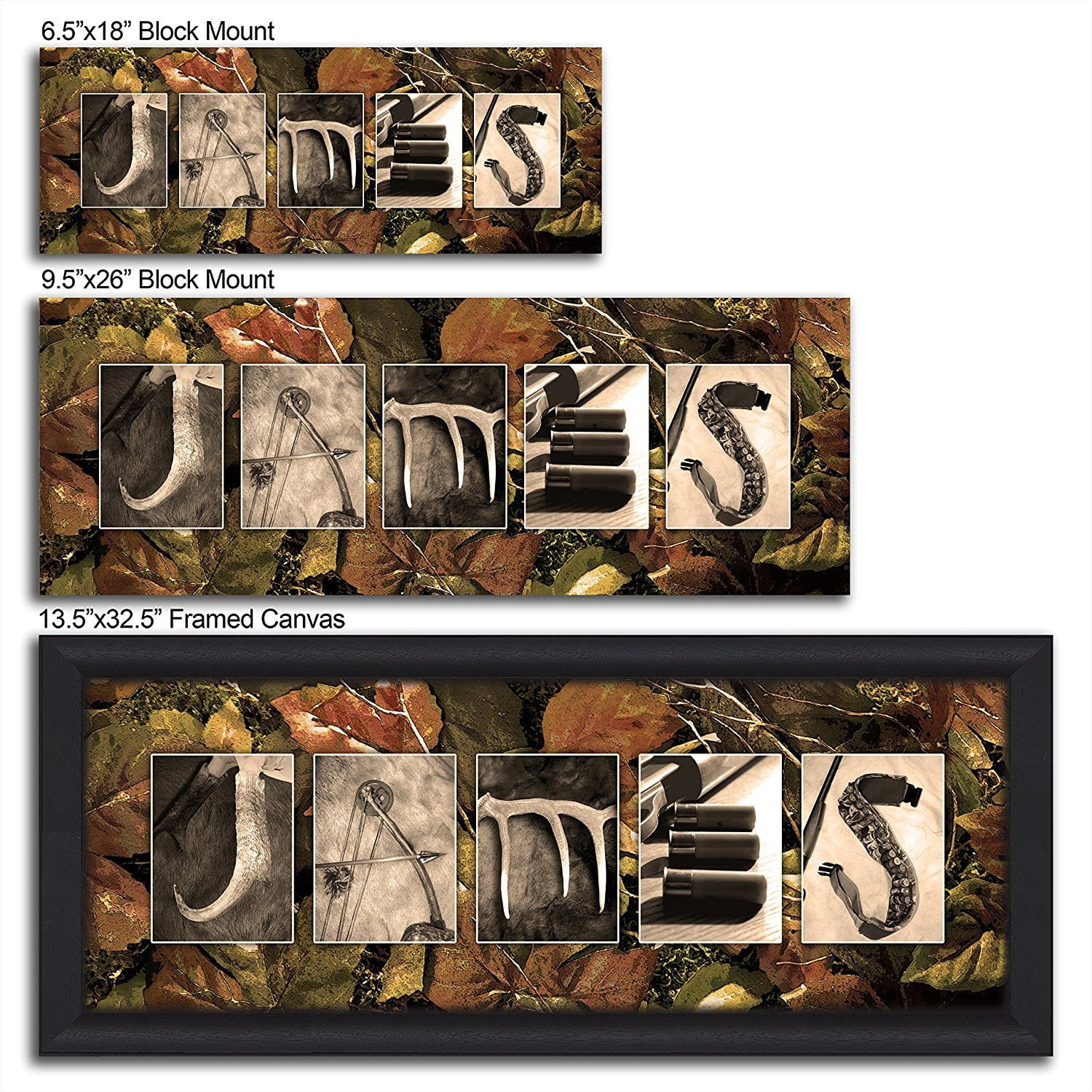 Personalized Hunting Wall Art, Live Previews, Choose Each Photos, Multiple Options Customized with 3 to 11 letters (no numbers). Available as framed canvas wall art or two sizes of frameless and ready to hang wood block mounts. Handcrafted, customized, and personalized for you using hi-res photography of Dance and Ballet related items. Available in 3 sizes and finishing styles Choose from 30+ themes (from sports to coastal)