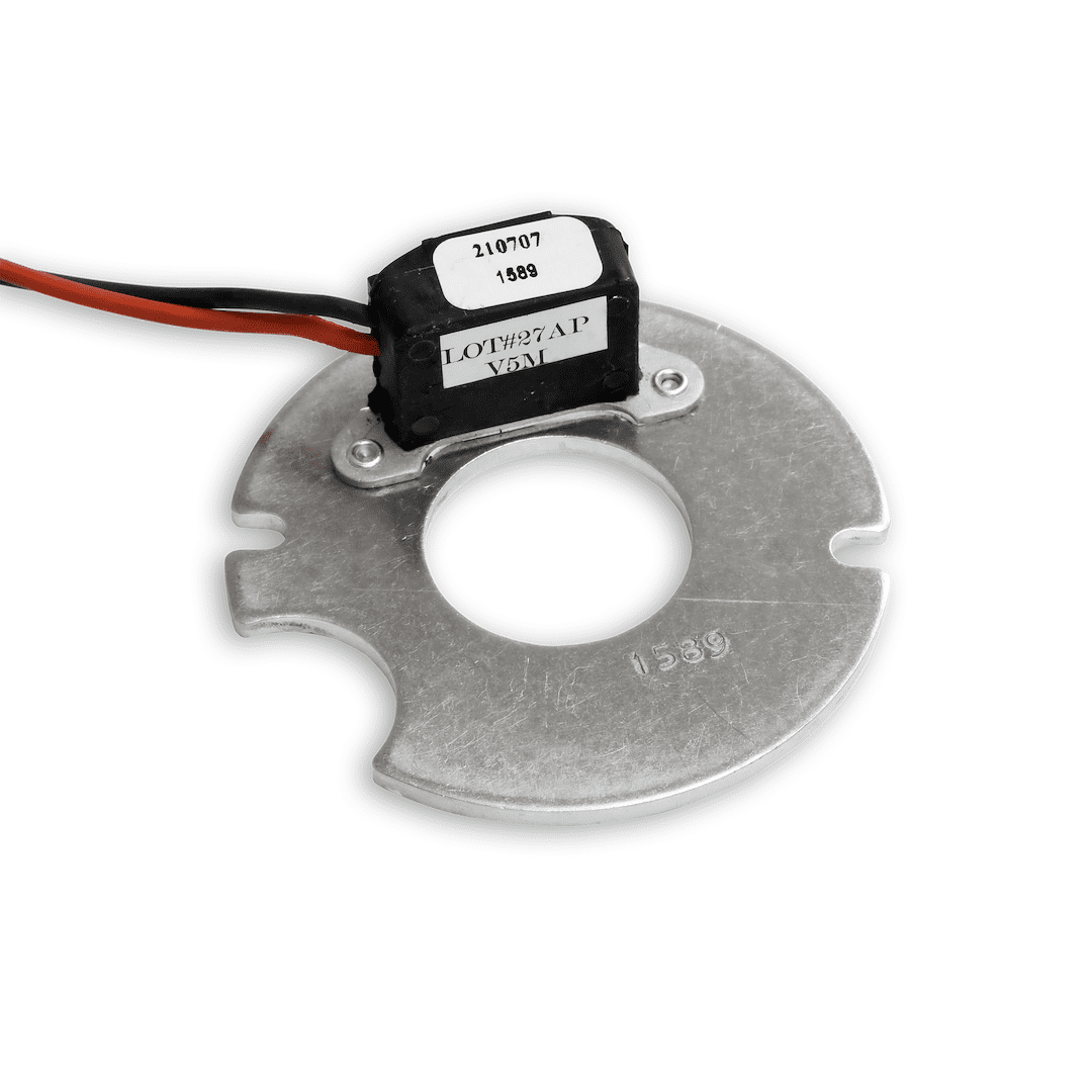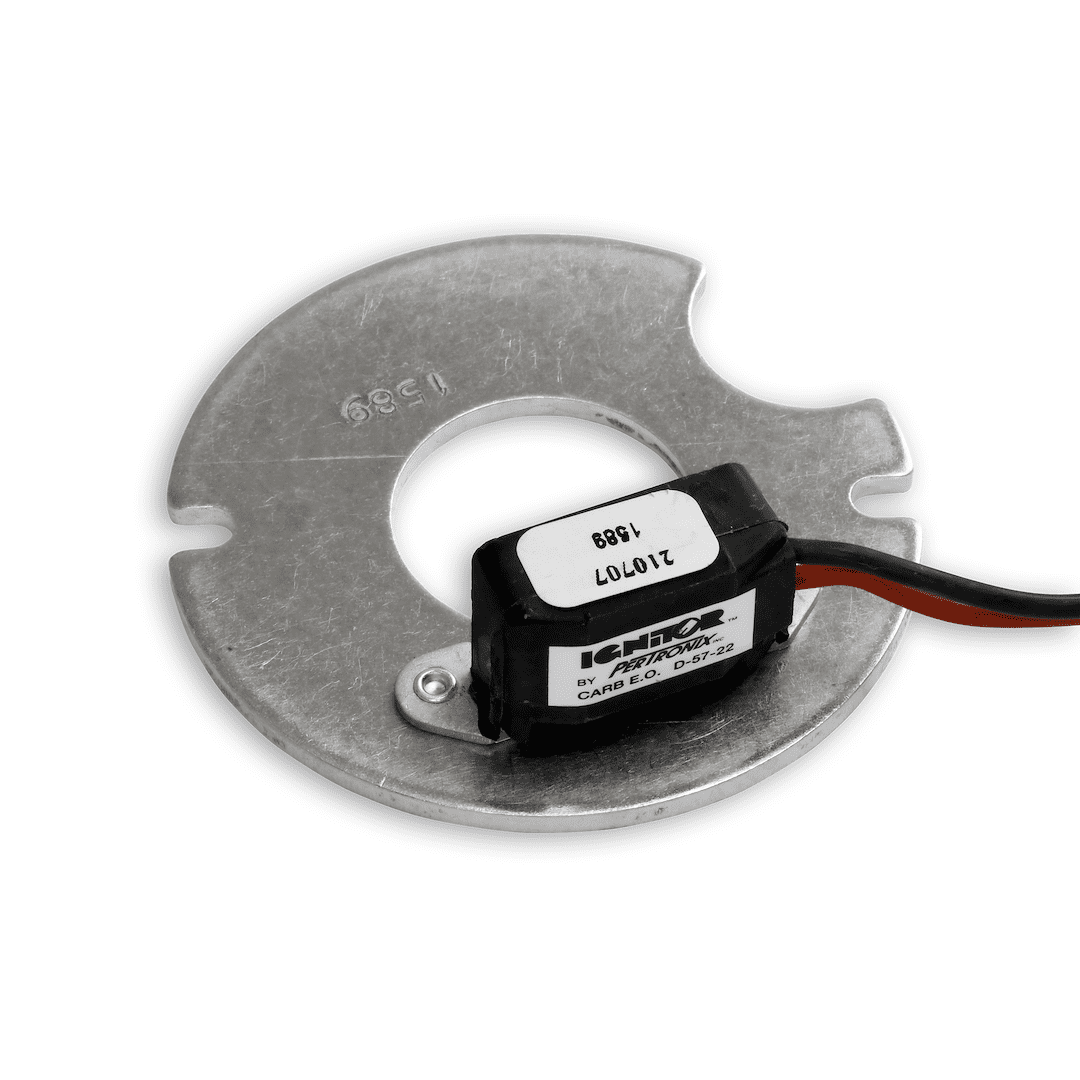 For over thirty years, the Ignitor has proven itself in applications ranging from race cars to tractors. The Ignitor replaces breaker point and troublesome factory electronic ignitions with a dependable, self contained and maintenance free electronic ignition system. The Ignitor has been called the “stealth” ignition because of its quick installation and nearly undetectable presence under your distributor cap.Features Operating Voltage: 8-V to 16-V DC. Temperature Range: -50 to 300F. RPM Range: 0 to 15,000 RPM. Can be used with most point-type coils, optimal performance achieved when used with our Flame-Thrower 40,000 volt coil. Works great in stock point-type distributors as a trigger for multi-spark CD ignitions, eliminating the need for expensive aftermarket distributors. No complicated wiring makes installation easy. A solid-state electronic ignition system. “Never change points again!” PerTronix 1589 Ignitor Prestolite Electronic Distributor 8 cyl. Delivers twice the voltage to the spark plugs, increasing horsepower, fuel economy, and spark plug life. 2:1 improvement over points in current fall time for increased coil output. Rotating cobalt magnets trigger a Hall Effect integrated circuit . …no points to burn, …no moving parts to wear out. Epoxy molding makes our module impervious to dirt, oil, grease and moisture. Fits entirely inside the distributor. No “black box to clutter the engine compartment. Stable timing …no need for any adjustments. Will trigger most multi-spark CD ignitions. Available for 6 and 12-volt negative and positive ground systems. Legal in all 50 states and Canada (C.A.R.B. E.O. #D-57-2) PerTronix 1589 Ignitor Prestolite Electronic Distributor 8 cyl. Delivers twice the voltage to the spark plugs, increasing horsepower, fuel economy, and spark plug life. 2:1 improvement over points in current fall time for increased coil output. Rotating cobalt magnets trigger a Hall Effect integrated circuit . …no points to burn, …no moving parts to wear out. Epoxy molding makes our module impervious to dirt, oil, grease and moisture. Fits entirely inside the distributor. No “black box to clutter the engine compartment. Stable timing …no need for any adjustments. Will trigger most multi-spark CD ignitions. Available for 6 and 12-volt negative and positive ground systems. Legal in all 50 states and Canada (C.A.R.B. E.O. #D-57-2)