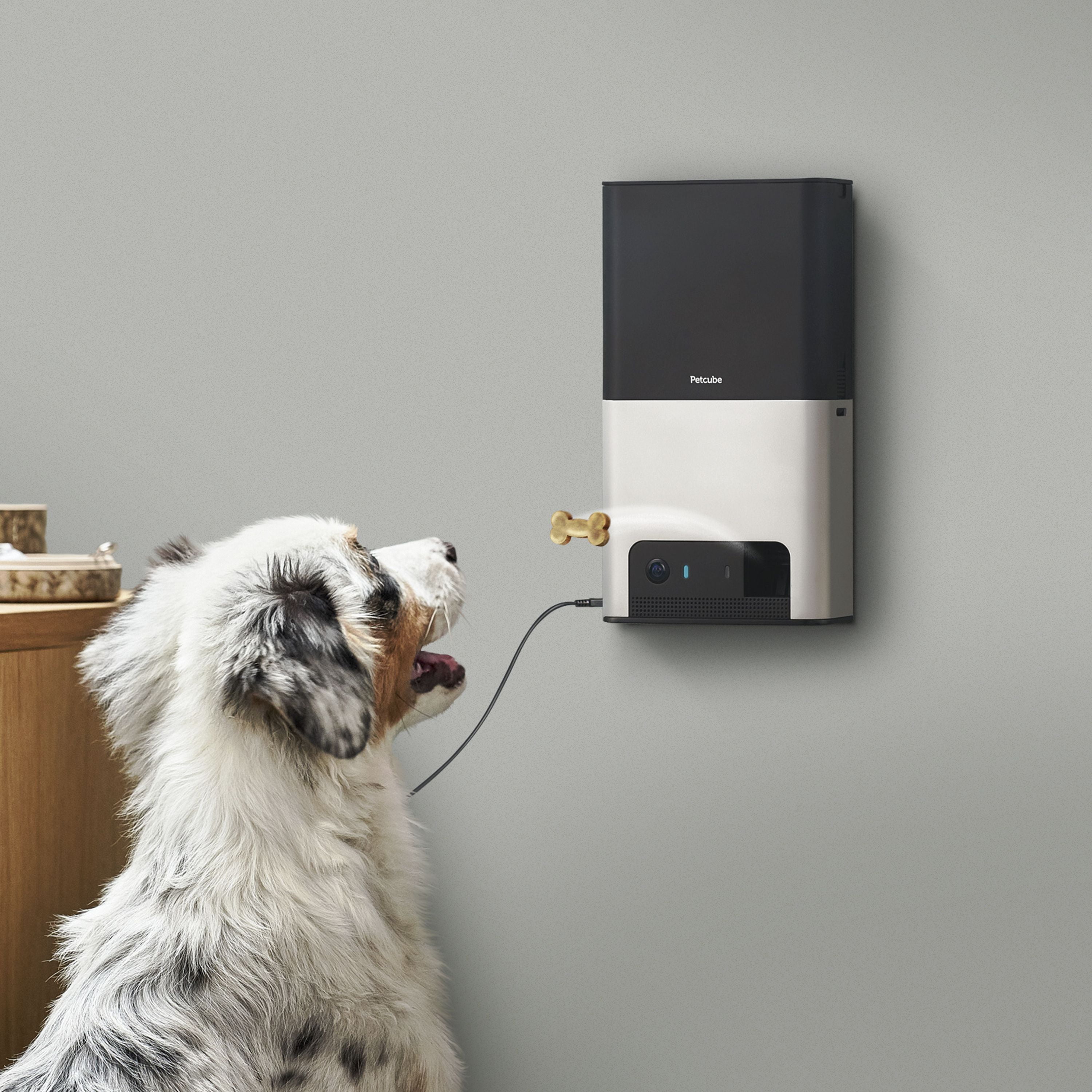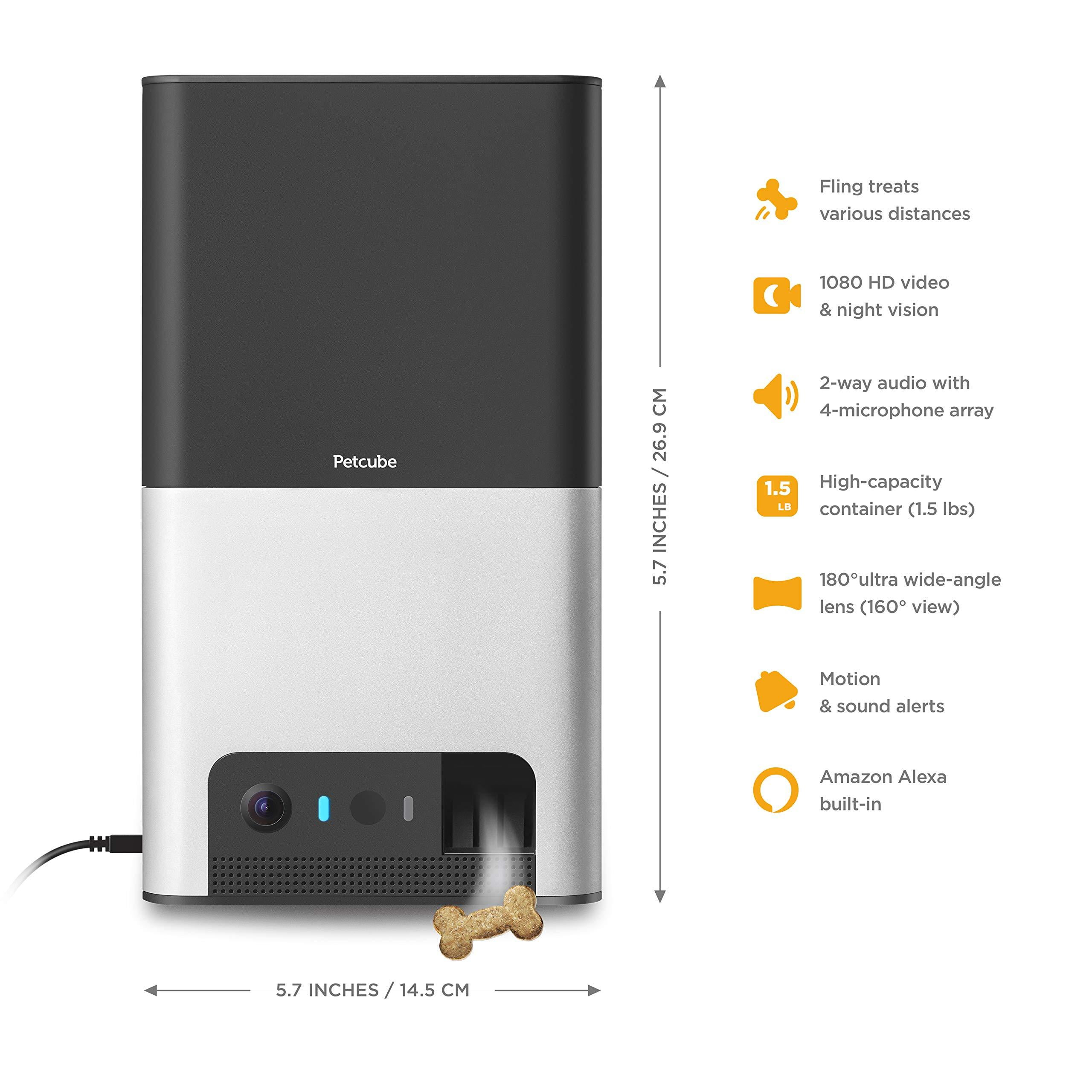 Petcube Bites 2 ULTIMATE PET MONITORING: With Petcube Bites Wi-Fi pet camera, watch your pet with 1080p full HD video, 160° ultra-wide angle view, and night vision. See up close with 4x zoom. Hear & speak with high-quality 2-way audio. QUICK 2-MINUTE SETUP: Petcube Bites 2 is the only pet camera to support 2. 4Ghz and 5Ghz Wi-Fi connections. iOS 11 and higher, Android 7. 1. 2 and higher are required. TREAT YOUR PET REMOTELY: Toss treats short, medium, or long distance or schedule automatic treat dispensing via the free Petcube app. Supports a wide range of dry, crunchy dog and cat treats. 1. 5 lbs treat capacity. SMART SOUND & MOTION ALERTS: Real-time notifications tell you when your pet is active and you need to check in. SMART SOUND & MOTION ALERTS: Real-time notifications tell you when your pet is active and you need to check in. 12 MONTH , 24/7 CUSTOMER SUPPORT: We warrant the Petcube-branded product against defects in materials and workmanship under normal use for a period 1 year. Got issues? We’re always here to help! For immediate assistance, start a live chat on petcube or send us an email to support@petcube.