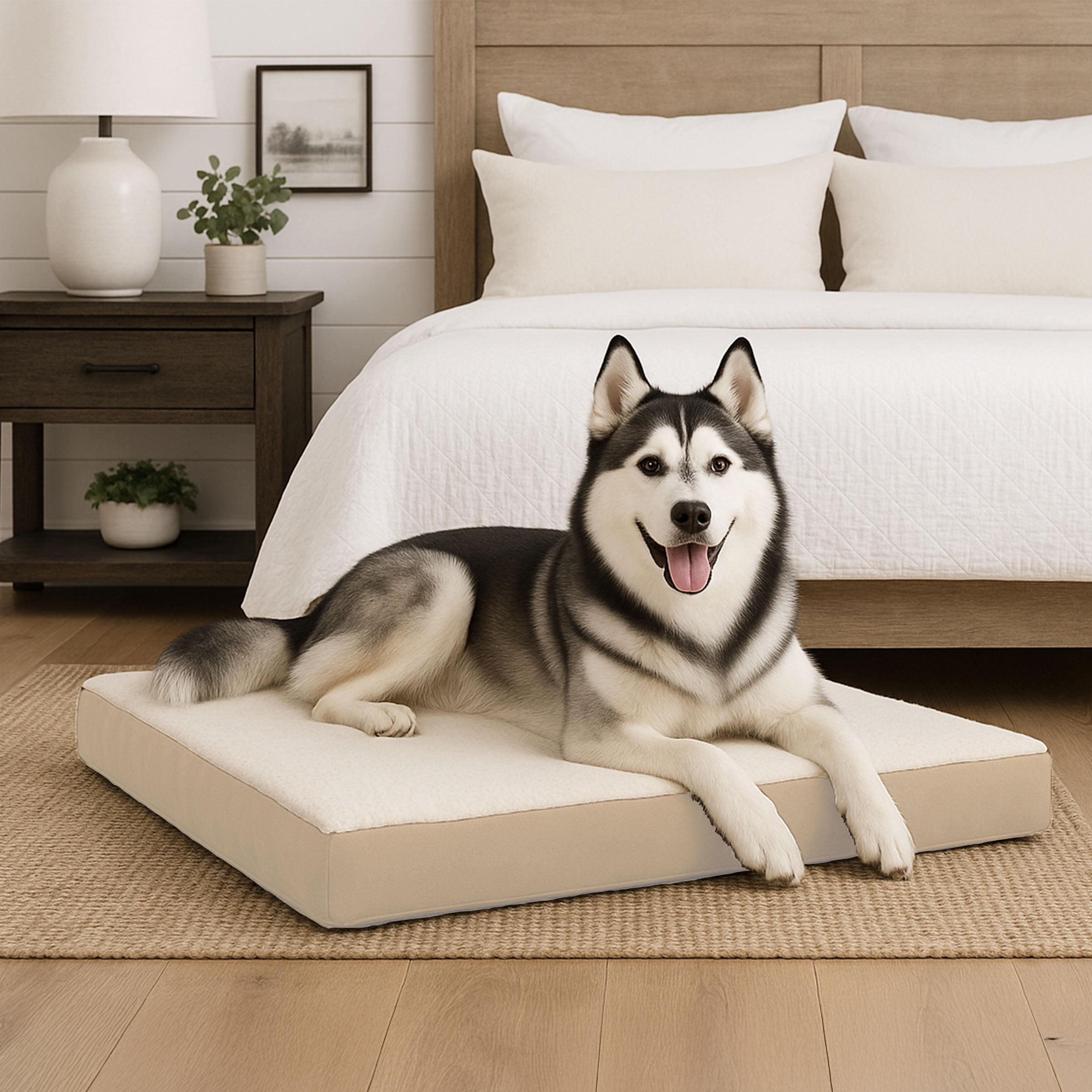 PETMAKER 44×35 Orthopedic Dog Bed with Memory Foam and Sherpa Cover, Tan