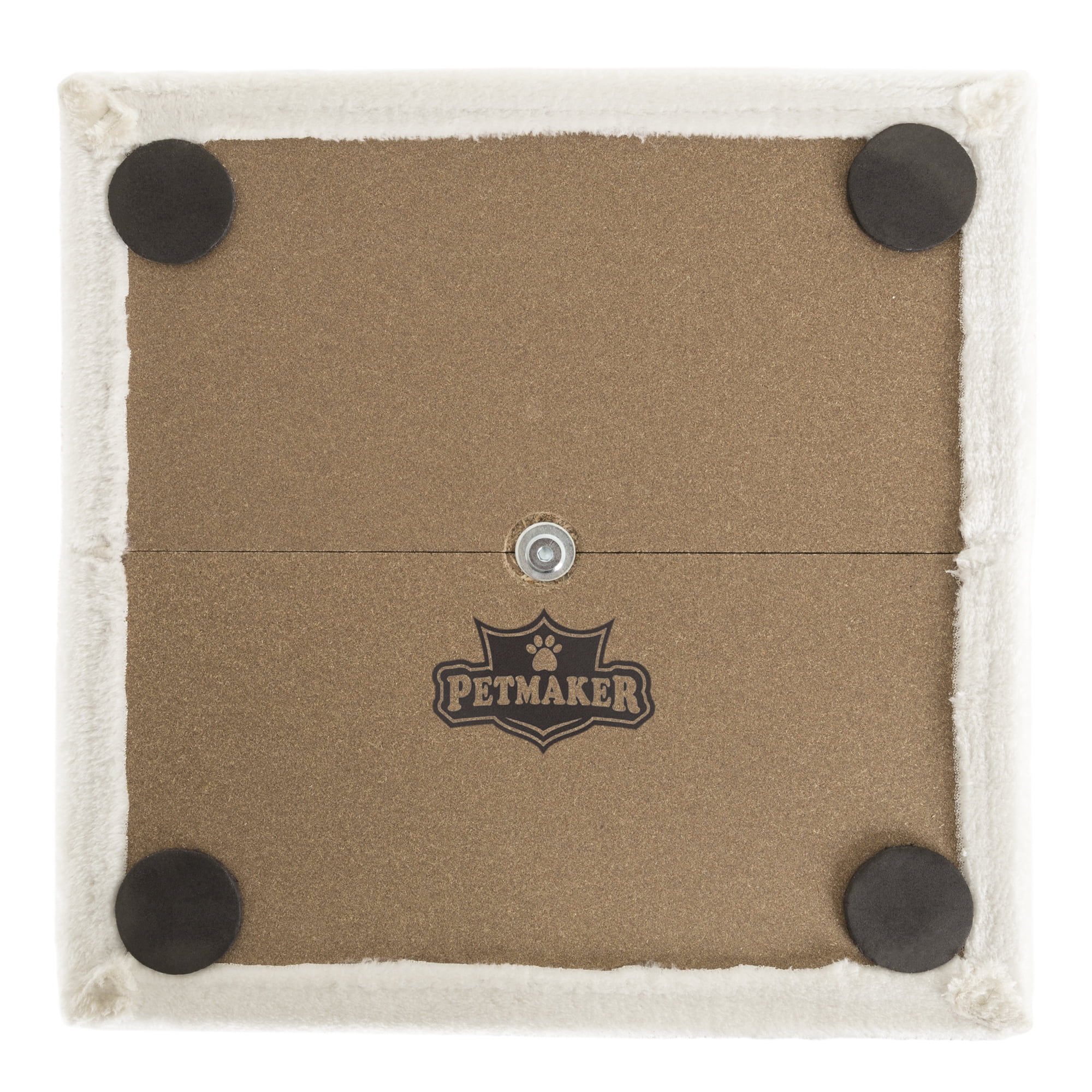 The PETMAKER Sleep and Play 5 tier Cat Tree with double decker Condo will provide hours or fun and adventure for cats and kittens while also offering a comfortable place to sleep. This attractive cat tree condo comes with 4 hanging balls for hours or fun as well as 2 curved platforms for nap time. The double decker condo gives privacy and a place to hide while the 2 scratching posts provide a place for cats to maintain their claws. It is easy to assemble, is covered in soft plush fabric and will look great in any home. IMPORTANT: Look for our logo on the packaging for every one of our products. PETMAKER is committed to providing the consumer with the absolute best price and value on all of our products, which we ensure by applying a rigorous Quality Control process.