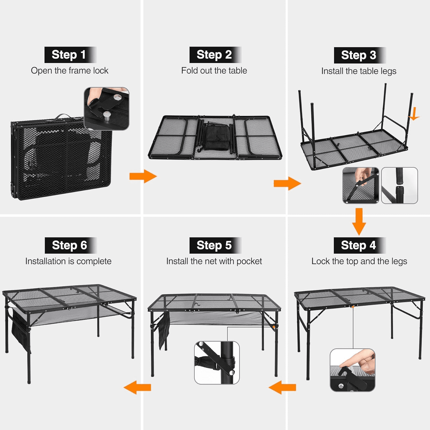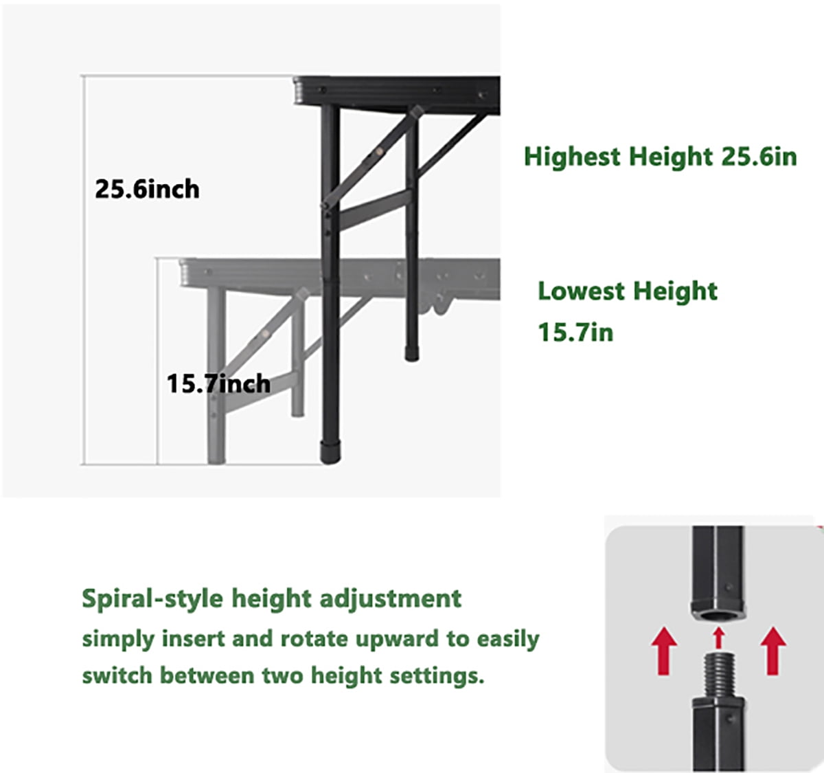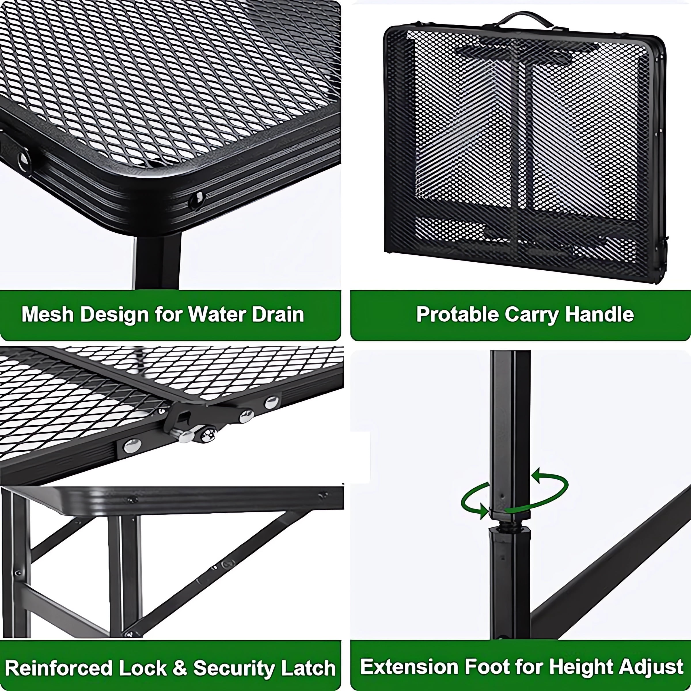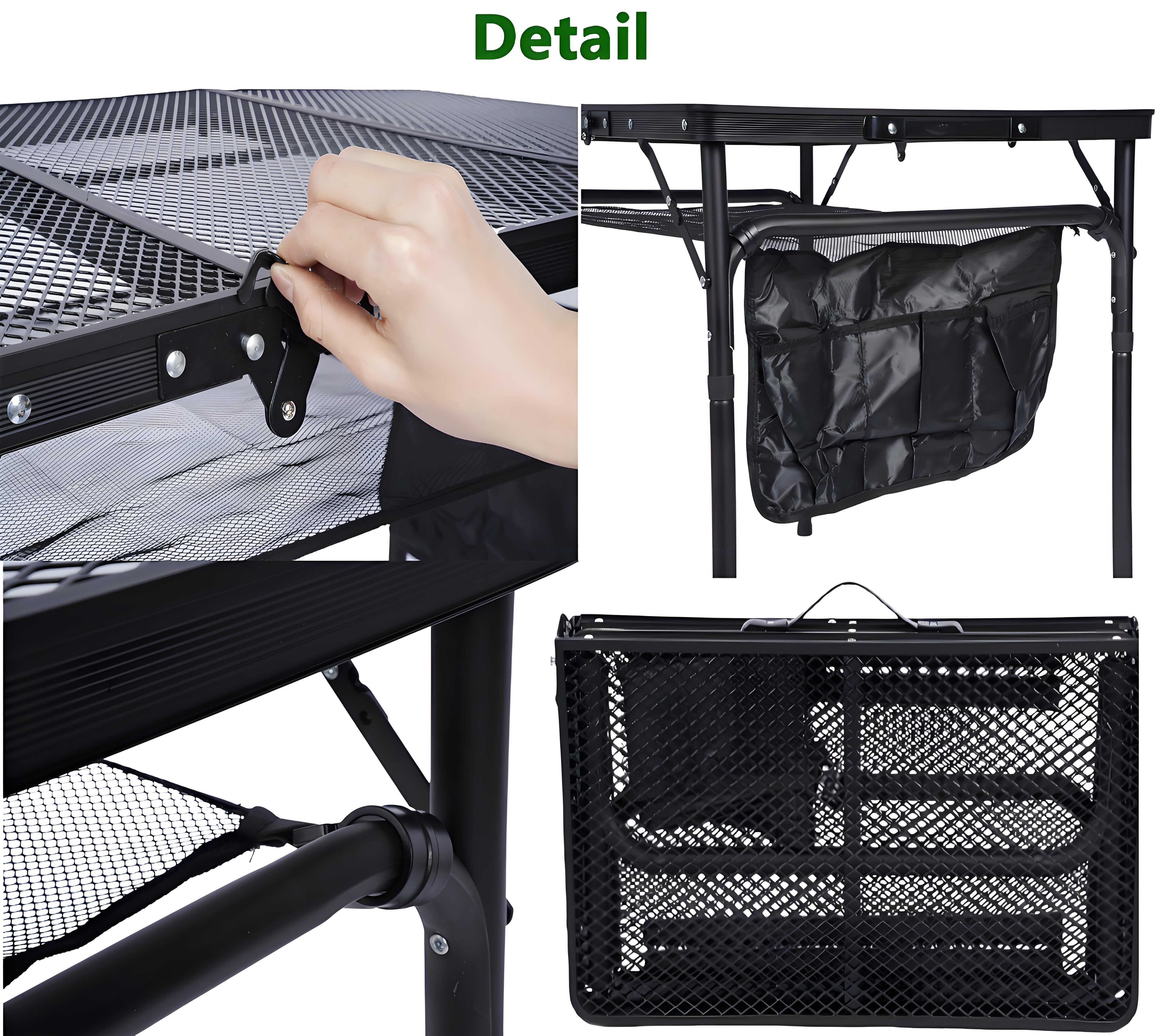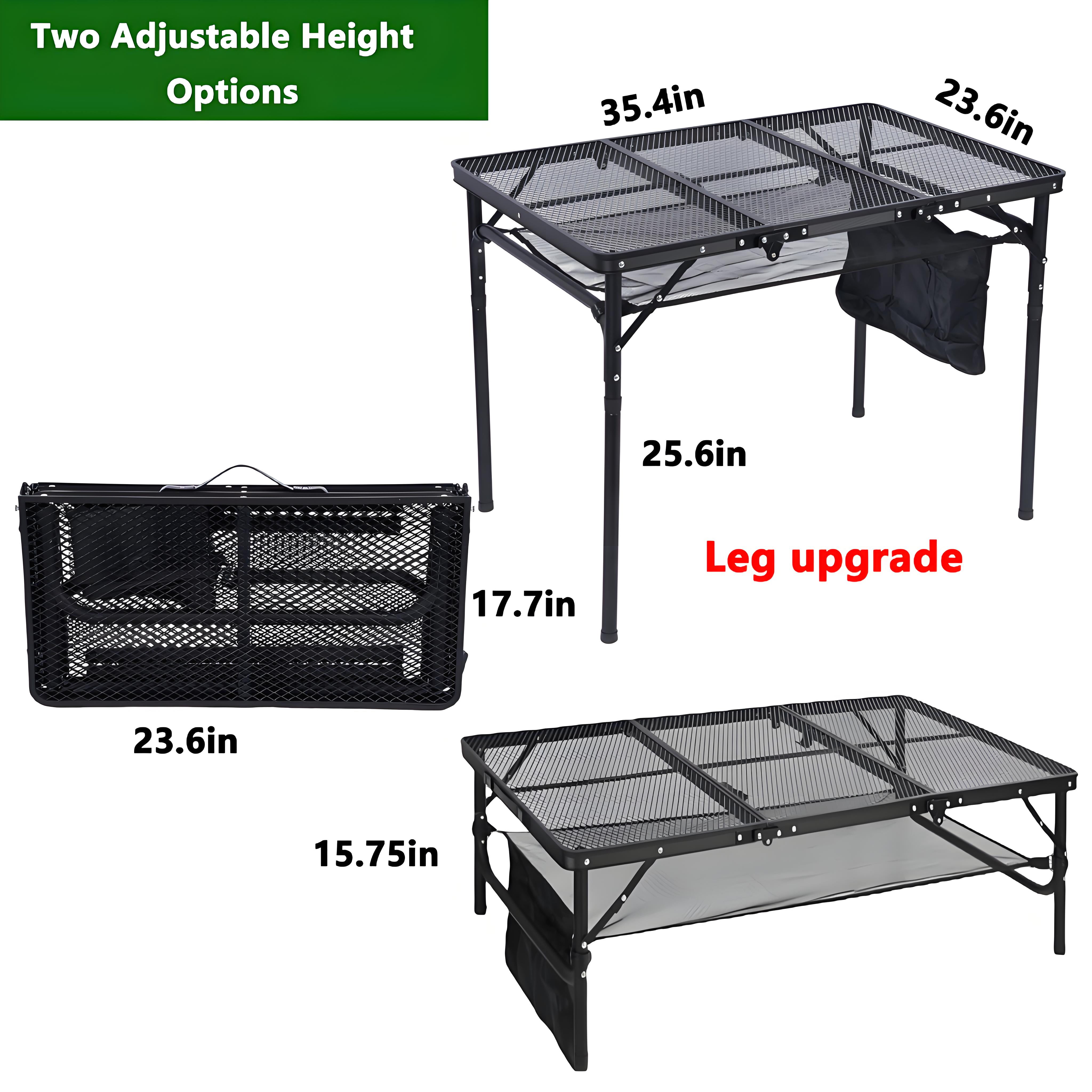 【Durable Construction】 tochean foldable aluminum camping table is crafted from high-quality aluminum, providing a lightweight and foldable structure for easy transportation to your campsite. This robust folding picnic table is not only waterproof but also fire-resistant, rust-resistant, and scratch-resistant, ensuring enduring durability and a prolonged lifespan. 【Height Customization】 Our outdoor cooking table offers two height options, catering to various outdoor environments. Easily adjust the height by tightening or removing the extension leg for customized versatility. 【Premium Mesh Design】 Our barbecue table features a unique coated mesh design, effectively preventing water accumulation and rust. The quick-wipe material simplifies cleaning, addressing spill concerns. Additionally, non-slip feet enhance stability during use. 【Lightweight Portability】 This camping table weighs a mere 9 pounds, making it exceptionally lightweight. Its compact size after folding facilitates easy carrying and storage. Installation is a breeze, and it can be unfolded quickly with the convenient carry handle. 【Versatile Application】 Our outdoor picnic table is suitable for various occasions, serving as a camping dining table for 4-6 people, a picnic table, a beach table, a fishing table, and an outdoor grill table, among other uses.