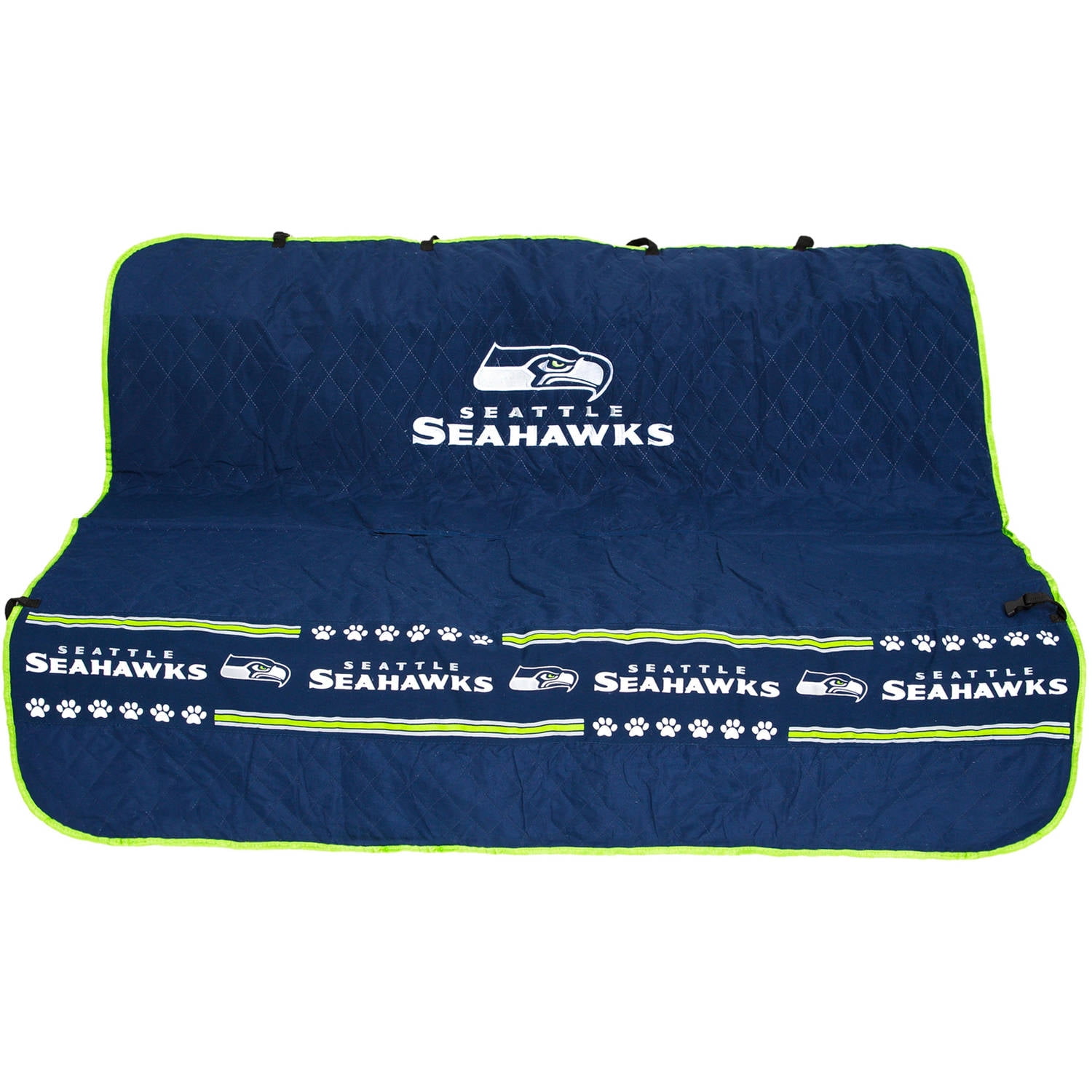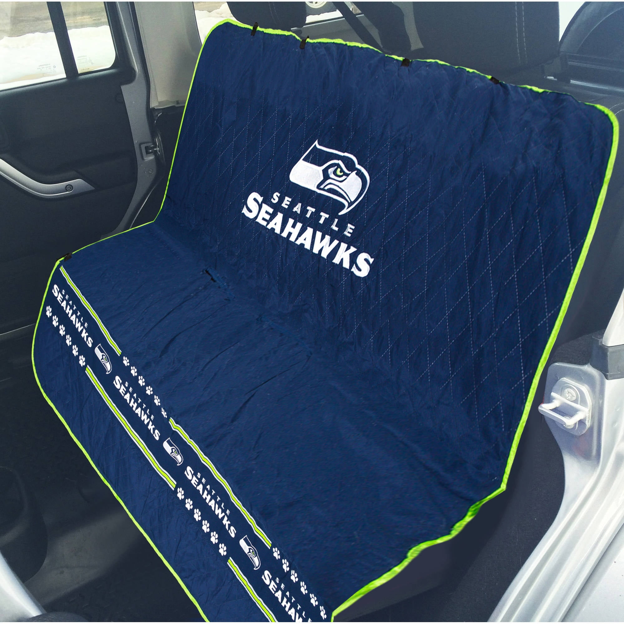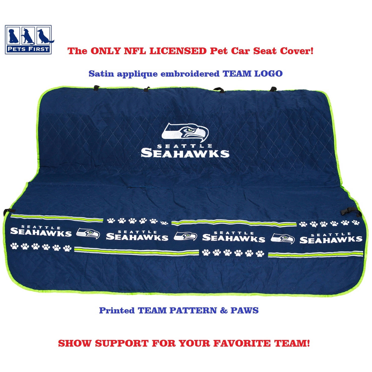 Pets First NFL Seattle Seahawks Car Seat Cover: Official NFL Licensed Soft quilted ultra-suede loop Team logo embroidery Printed team band across the bottom Contrast trim Skid-proof material on bottom