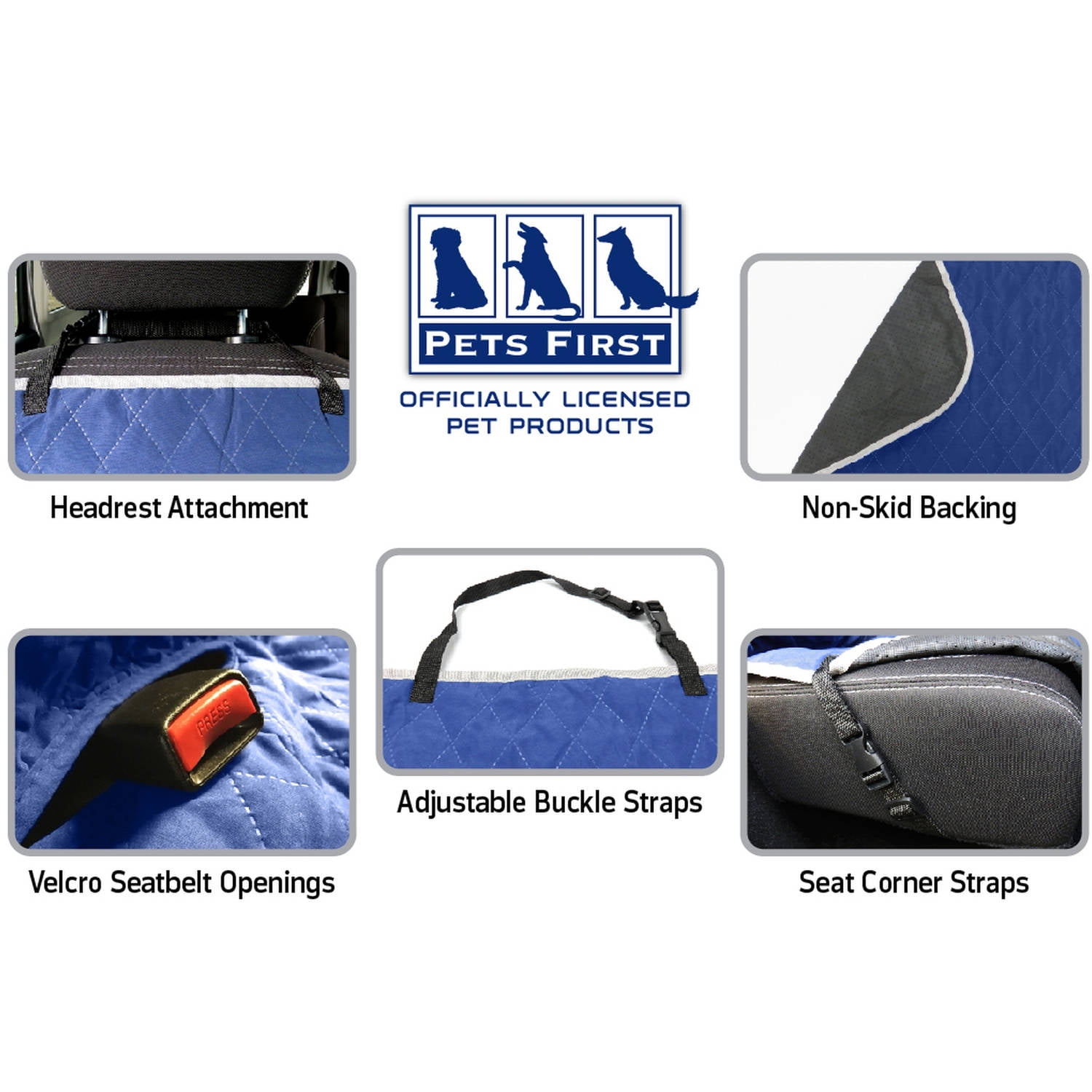 Pets First Officially NFL Licensed CAR SEAT COVER ARE YOU A SPORTS FAN?? DO YOU HAVE A CAR, TRUCK, VEHICLE, or SUV? If the answer is YES, then this is the Correct Product for you! This the ideal way to travel with your pet! Show your support for your favorite SPORTS TEAM with this elegant & comfy NFL CAR SEAT COVER! Features: A GIGANTIC satin applique embroidered TEAM LOGO for everyone to see your favorite team! A printed TEAM PATTERN & Dog Paws in vibrant team colors! Velcro slits for seat belts easy access & install. Adjustable straps to loop around your car’s head rests. Whether you are going to the game or just taking a drive, we’ve got you “COVERED”! This PET CAR SEAT PROTECTOR is licensed by the NFL Team! It is made using NEW & HIGH QUALITY materials to protect your vehicle from any spills, dirt, hair, scratches, fur, mud & other messes. Keep your car’s seats as good as NEW! This DOG CAR SEAT COVER is made with 3 Layers: ► Top Layer: Waterproof Faux quilted ultra-suede so your pet doesn’t skid around the vehicle. ► Filling Layer: Thick poly-filled for extra COMFORT! ► Back Layer: Nylon with NON SKID dots, so you are guaranteed DURABILITY, COMFORT & SATISFACTION! MACHINE WASHABLE cold on gentle cycle, Lay flat to dry. Size: Measures: 55 x 50 inches to FIT MOST VEHICLES! Another great pet product designed by PETS FIRST to keep your vehicle’s rear seats clean even with the dirtiest dog! TEAMS: This REAR SEAT COVER comes in all 29 NFL TEAMS: Arizona Cardinals, Atlanta Falcons, Baltimore Ravens, Buffalo Bills, Carolina Panthers, Chicago Bears, Cincinnati Bengals, Cleveland Browns, Dallas Cowboys, Denver Broncos, Detroit Lions, Green Bay Packers, Houston Texans, Indianapolis Colts, Jacksonville Jaguars, Kansas City Chiefs, Los Angeles Chargers, Los Angeles Rams, Miami Dolphins, Minnesota Vikings, New England Patriots, New Orleans Saints, New York Giants, New York Jets, Raiders, Philadelphia Eagles, Pittsburgh Steelers, San Francisco 49ers, Seattle Seahawks, Tampa Bay Buccaneers, Tennessee Titans, and Washington Redskins. Choose your team and click ADD TO CART NOW! Another great pet product designed by PETS FIRST! Pets First company has established itself as the largest sports-licensed pet product company in the country. Pets First has gained its reputation in providing every pet owner with premium licensed pet products; from unique and colorful apparel items to fun and playful toys and accessories. Working with the latest technology, our creative designers choose from the highest quality materials to provide durable, unique and innovative pet merchandise. Our factories follow the highest standards of safety guidelines to ensure your pet’s security, while providing a long lasting product. Licensed Pet Products by Pets First.