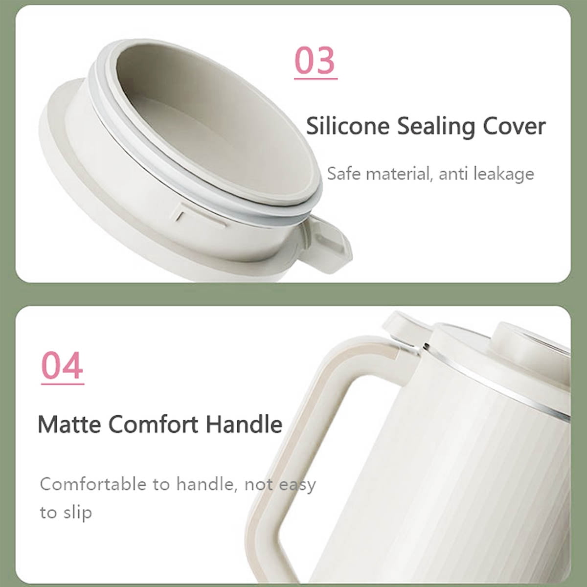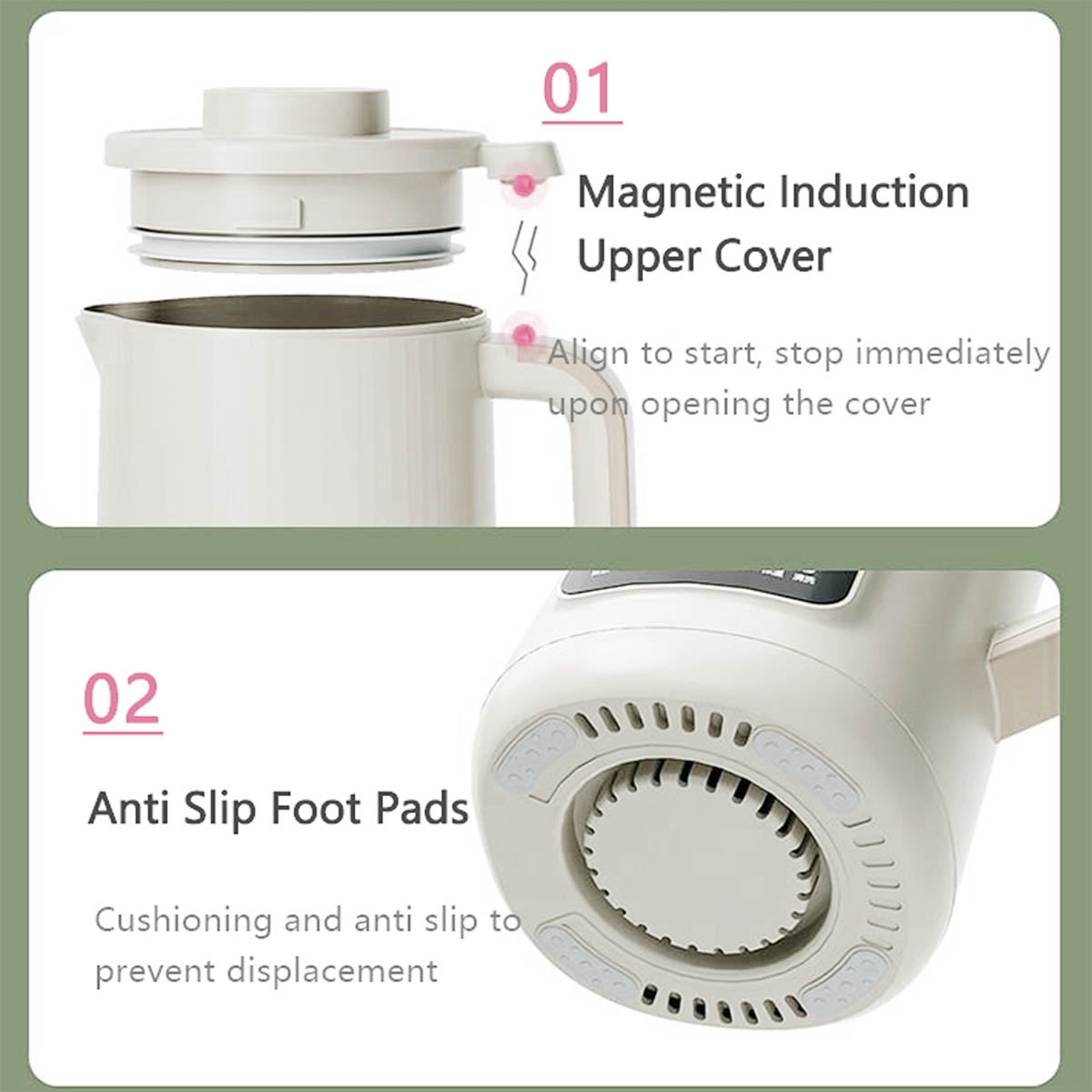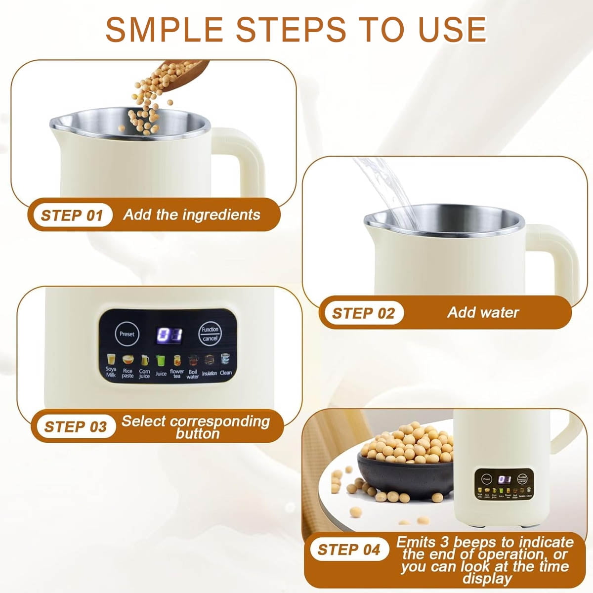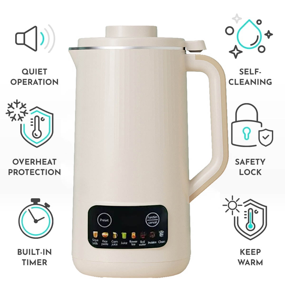 ????【Plant-Based Milk Maker】This versatile maker can quickly create smooth, creamy plant-based milk, juice, smoothies, and hot chocolate by crushing nuts, grains, and seeds in minutes. Perfect for making different homemade beverages to suit your taste. ⚙️【Upgraded 10-Blade 3D Design】With 10 stainless steel x-cross blades and a built-in quadrilateral stirring column, the ingredients collide repeatedly, ensuring thorough processing while preserving nutrients and delivering a smooth, rich taste. ????【Easy to Use & Wide Range of Functions】Featuring 9 functions, this machine skips the soaking process for easy plant-based milk preparation. Room Temp (special for chilled nut milk), Cold (104℉), Warm (122℉), and Hot (140℉) are for making warm beverages like oat milk. Boil (212℉) is used for soy milk and rice milk. It also includes functions like auto clean (120s), Boil Water, Keep Warm, and a Timer (up to 12 hours). ????【Smart LED Screen Design】The smart LED screen offers precise temperature and timer control, helping you create the perfect nut milk consistency. To ensure safe operation, align the lid’s protruding part with the handle to avoid E2 errors and maintain optimal performance. ????️【User-Friendly Design】The intuitive touchscreen interface allows easy operation. Whether you’re a novice or experienced cook, simply select your function and start with one touch.
