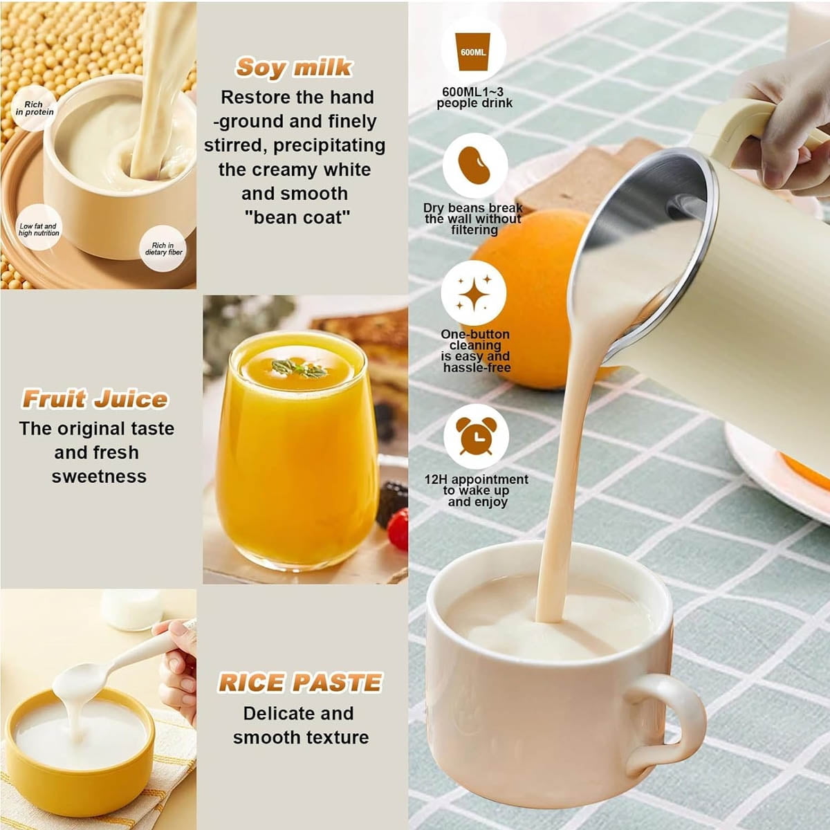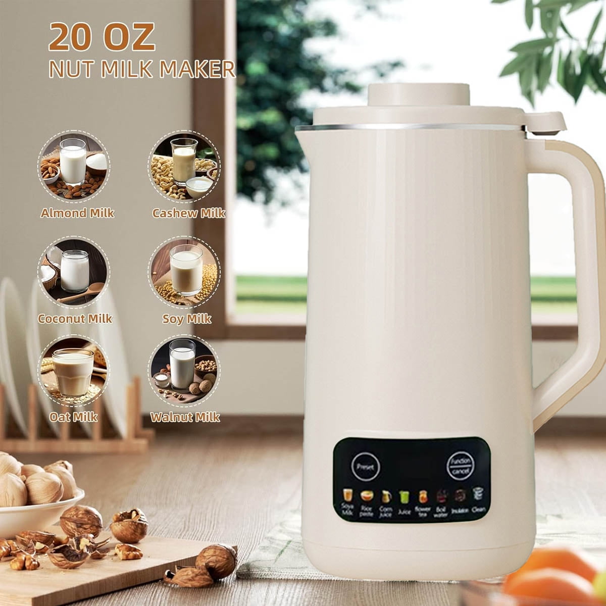 Features Noiseless motor and double layer body for quiet operation will not disturb your sleep. It has a 12-hour preset, allowing you to wake up to freshly made milk. Large 600ml capacity to suit your drinking needs. Magnetic top lid ensures proper alignment, silicone gasket prevents leaks and spills. 10 sharp blades to chop soybeans effortlessly, built-in mixing column ensures thorough mixing without residue. LED touch screen with 8 functions, including Soya Milk, Rice Paste, Juice, Flower Tea, Sterilization, boil, Keep Warm and clean. Specification: Color: White Material: Plastic+stainless steel Size: 125*125*245mm/4.9*4.9*9.6″” Capacity: 600ml Plug type: US plug(110V) Rated voltage: 220V Power: 600W Stirring power: 150W Package List: 1x nut milk maker Note: Please allow 1-3cm (0.4-1.18″”) difference due to manual measurement