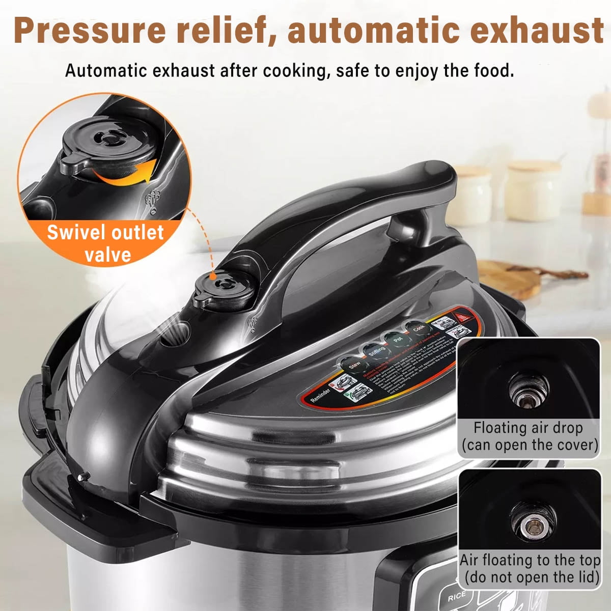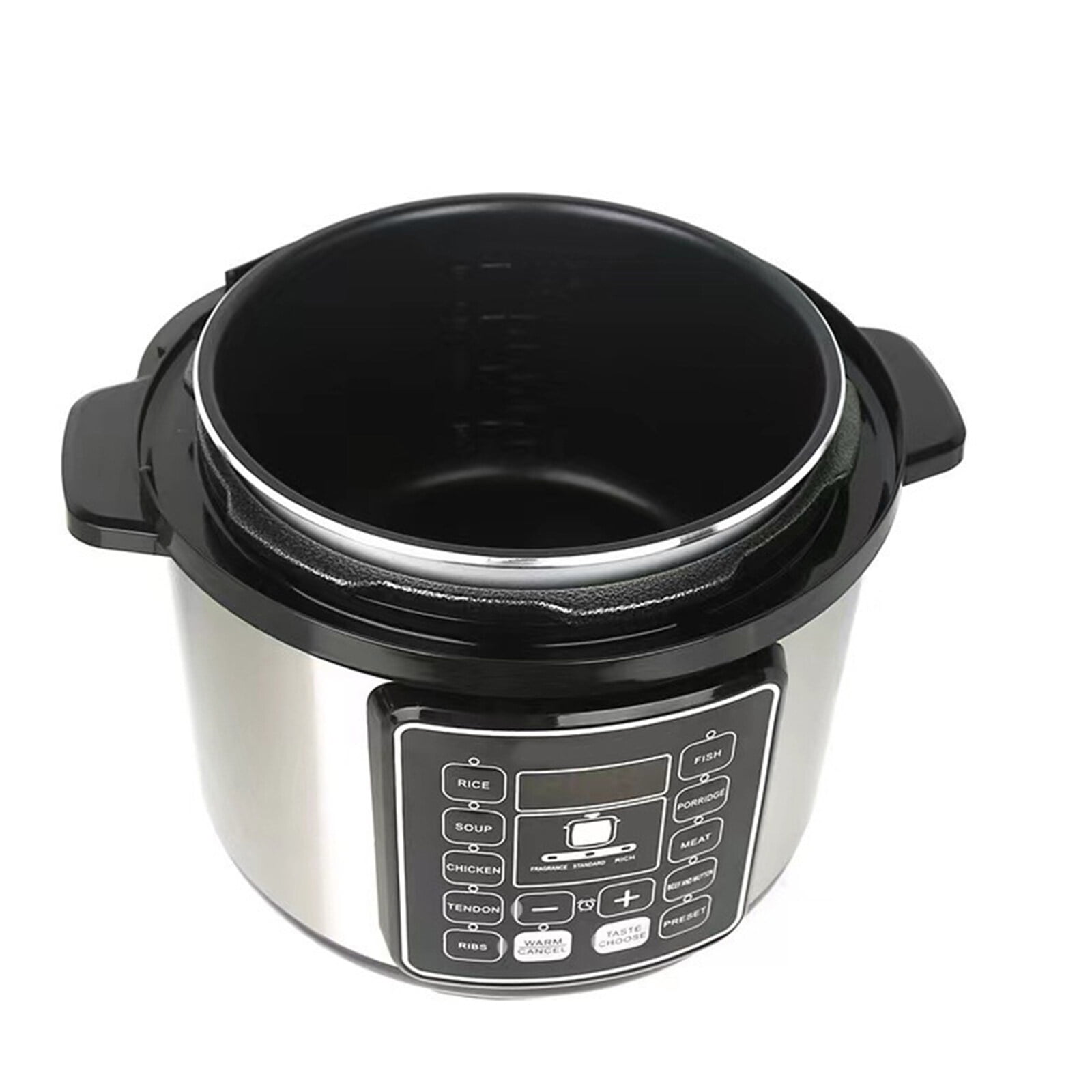 Features: 9 functions in one: pressure cooker, slow cooker, rice cooker, yogurt maker, steamer, frying pan, yogurt maker, sterilizer, food warmer. 15 customizable Smart Programs for cooking pressure ribs, soup, beans, rice, chicken, yogurt, desserts etc. Touch panel with DIY manual settings, start/cancel button, menu button to select preset programs and keep warm function. Easy-to-read display has a full cooking progress bar for real-time feedback. This electric pressure cooker has a large 5L capacity that can cook up to 10 cups of rice. Specification: Item name: Electric pressure cooker Voltage: 110V Rated power: 1000W Working pressure: 40KPa-70Kpa Capacity: 5L Color: silver Material: alloy aluminum + stainless steel Package Includes: 1 * Pressure Cooker 1 * Measuring Cup 1 * Spoon