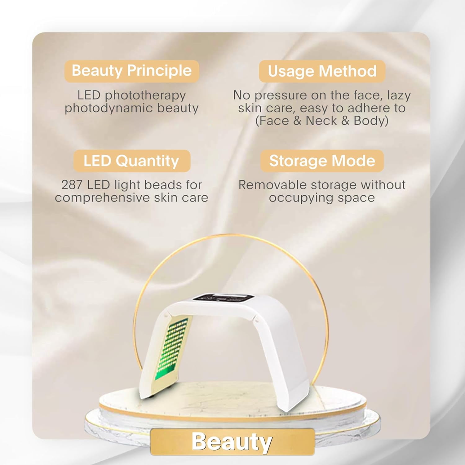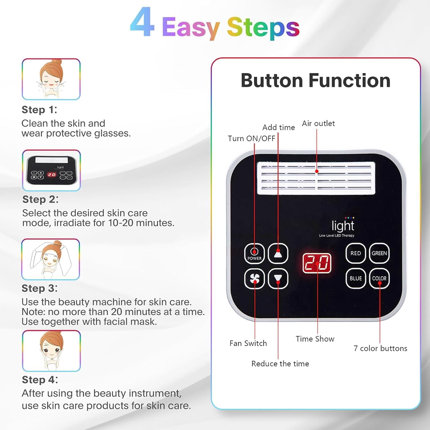 ????Equipped with seven different wavelengths of LED lights, customized for different skin types, whether you want to reduce wrinkles, brighten your skin, or improve your skin condition, you can find the most suitable light therapy solution for you. ????Equipped with 287 large rows of light beads, it achieves 180° all-round lighting, whether it is the face, neck, hands or other parts of the body, every inch of skin can be meticulously cared for. ????The large control panel design can easily adjust the use time, fan and power switch with one button operation without complicated settings. ????The included goggles protect your eyes intimately, so that you can enjoy light therapy skin care without worrying about light damage to your eyes. ????Made of high-quality ABS material, it is durable and reusable. It is suitable for both men and women and suitable for all skin types. Simple installation and convenient operation, it is your ideal companion for daily skin care and beauty.