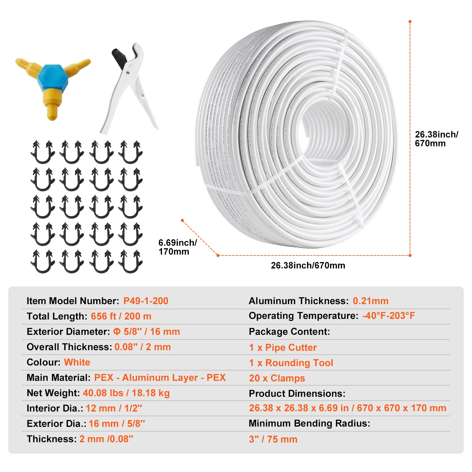 SVOPES PEX-AL-PEX tubing combines premium PEX and aluminum materials, designed to withstand temperatures from -40°C to 95°C; Perfect for residential and commercial use, it offers exceptional flexibility and can be easily installed with different connection systems; Ideal for radiant heating systems, plumbing, and other applications, this tube ensures long-lasting, reliable performance.