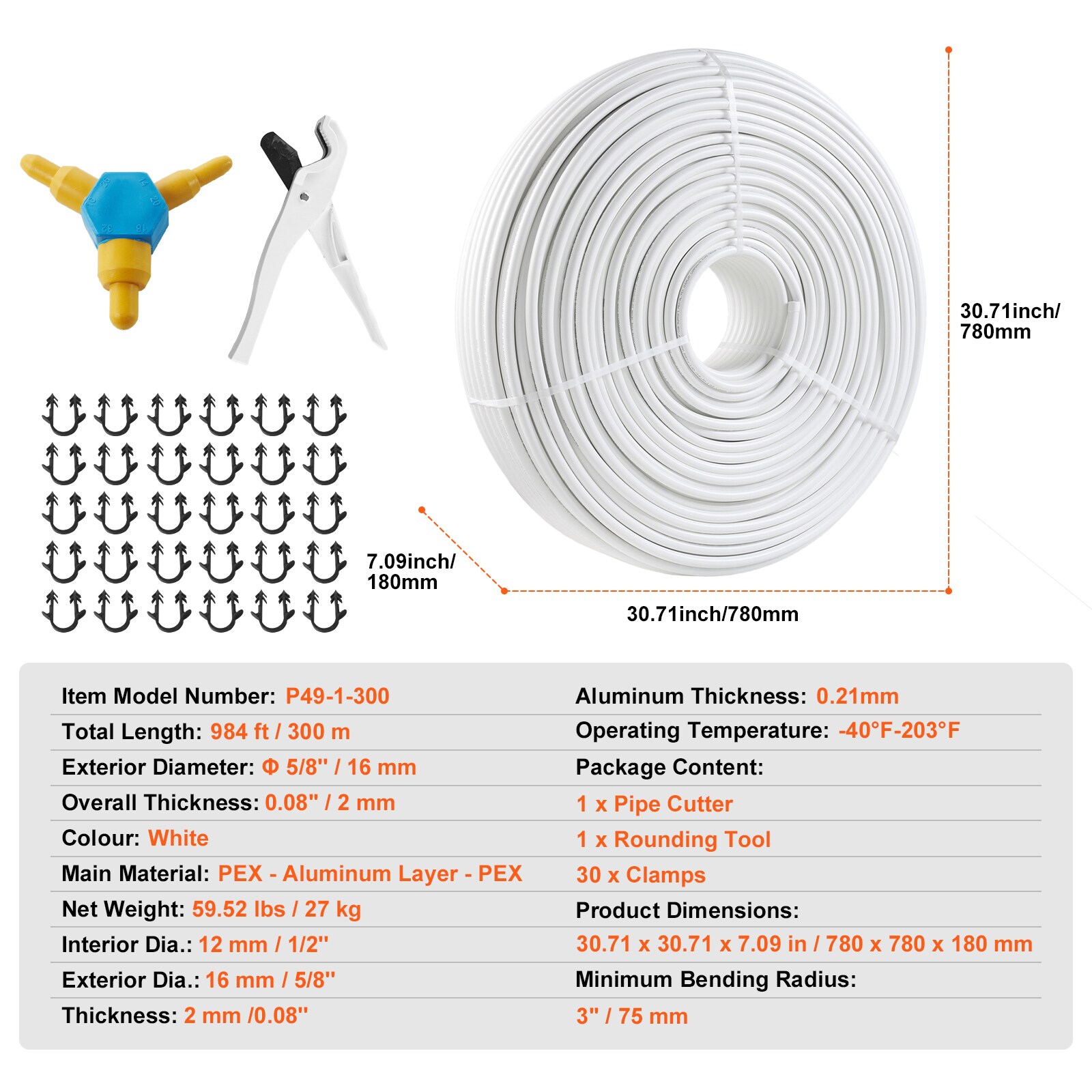 SVOPES PEX-AL-PEX tubes are designed with a combination of premium PEX and aluminum materials, offering outstanding durability and resistance; With the ability to withstand water temperatures from -40°C to 95°C, these pipes are perfect for a variety of systems and applications; Whether for residential or commercial use, they provide unmatched flexibility for radiant heating, plumbing, and more.