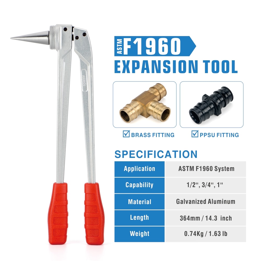 PEX Expander Tool with 1/2.3/4 and 1-in Expansion Heads for Uponor ProPex Expansion Sleeves