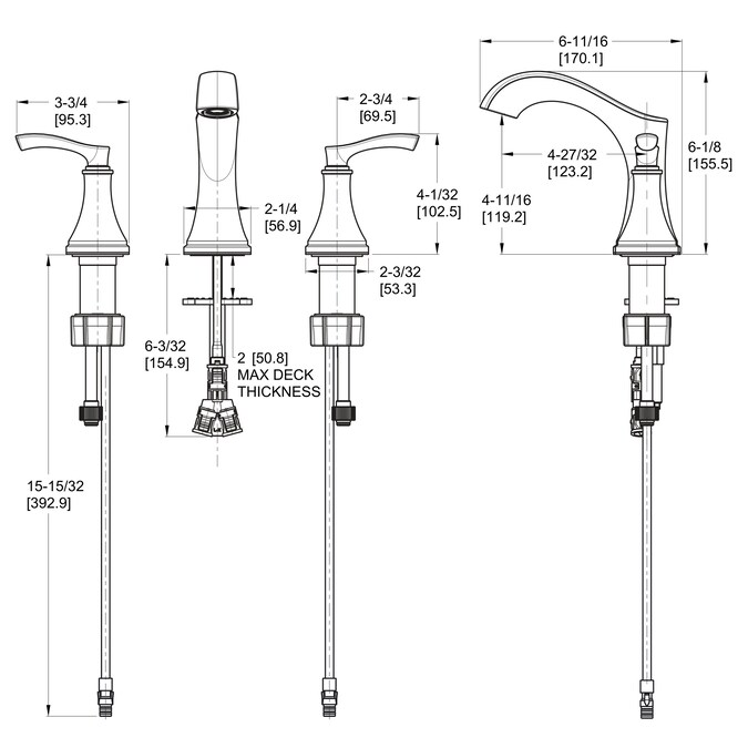 - Adjustable widespread install from 8-in to 20-in