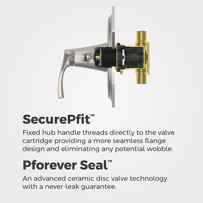 - Featuring Secure Pfit™, fixed hub handle threads directly to the valve cartridge providing a more seamless design to the flange and eliminating any potential wobble