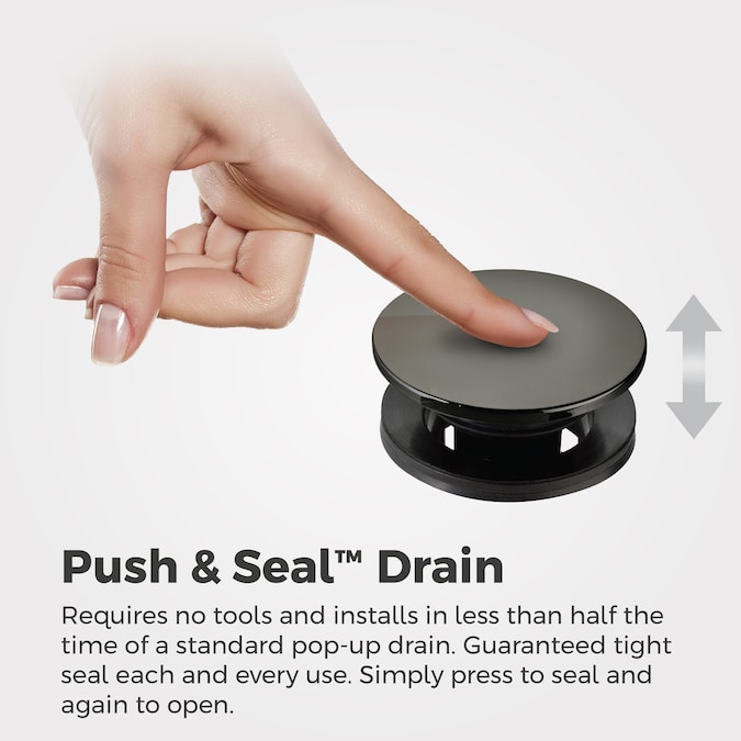 - Push & Seal drain requires no tools and installs in less than half the time of a standard pop-up drain, Guaranteed tight seal each and every use – simply press to seal and again to open