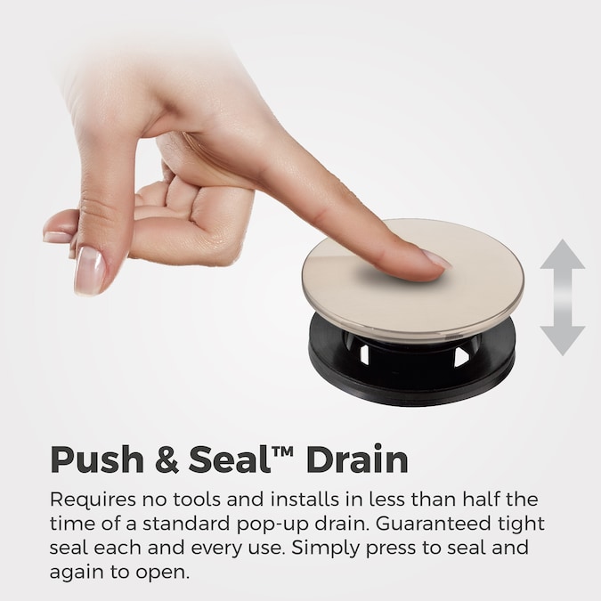 - Push & Seal drain requires no tools and installs in less than half the time of a standard pop-up drain, Guaranteed tight seal each and every use – simply press to seal and again to open