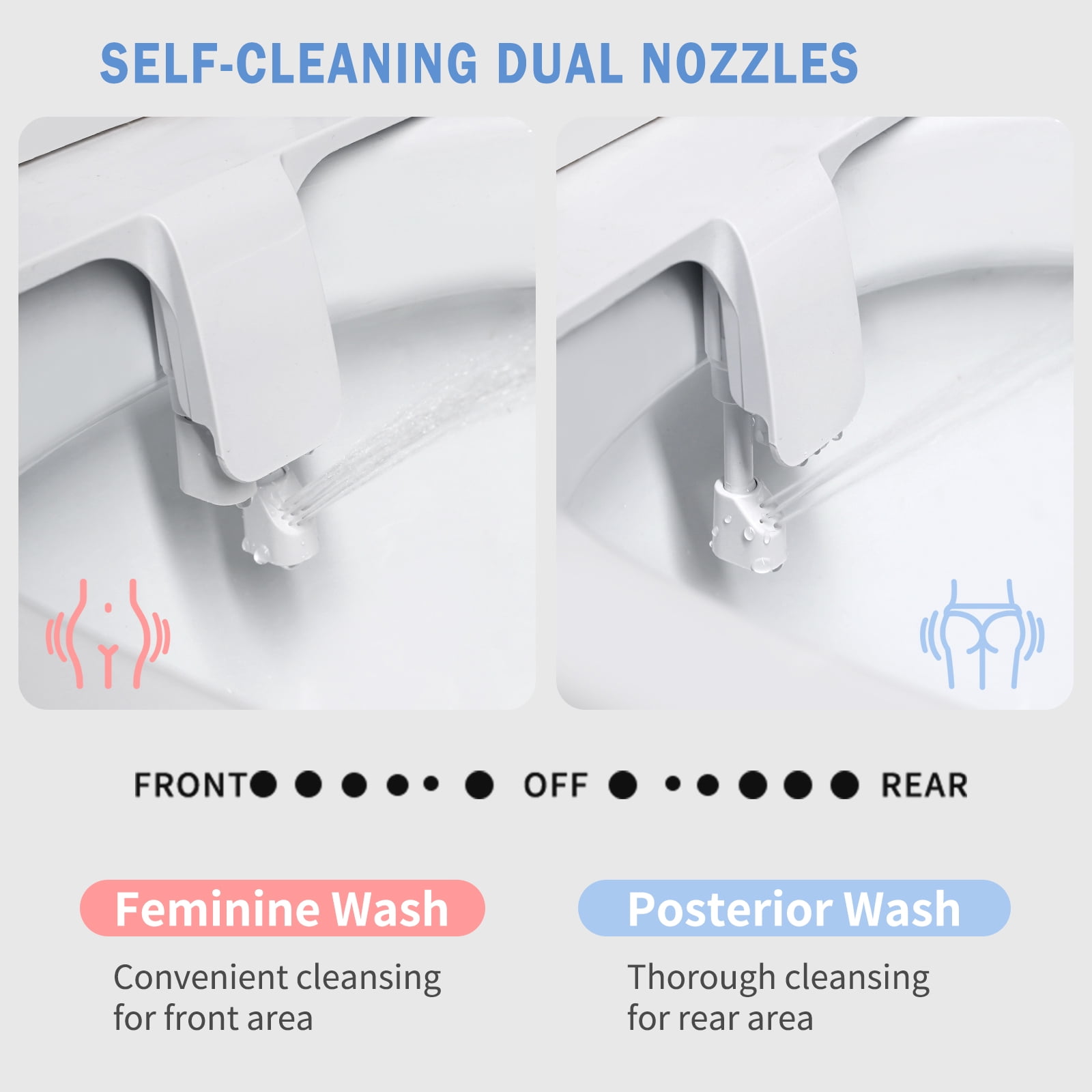 PHANCIR Ultra-Slim Bidet Attachment for Toilet, Dual Nozzle (Frontal & Rear Wash) with Self Cleaning, Non-Electric Adjustable Water Pressure Water Toilet Seat Attachment White