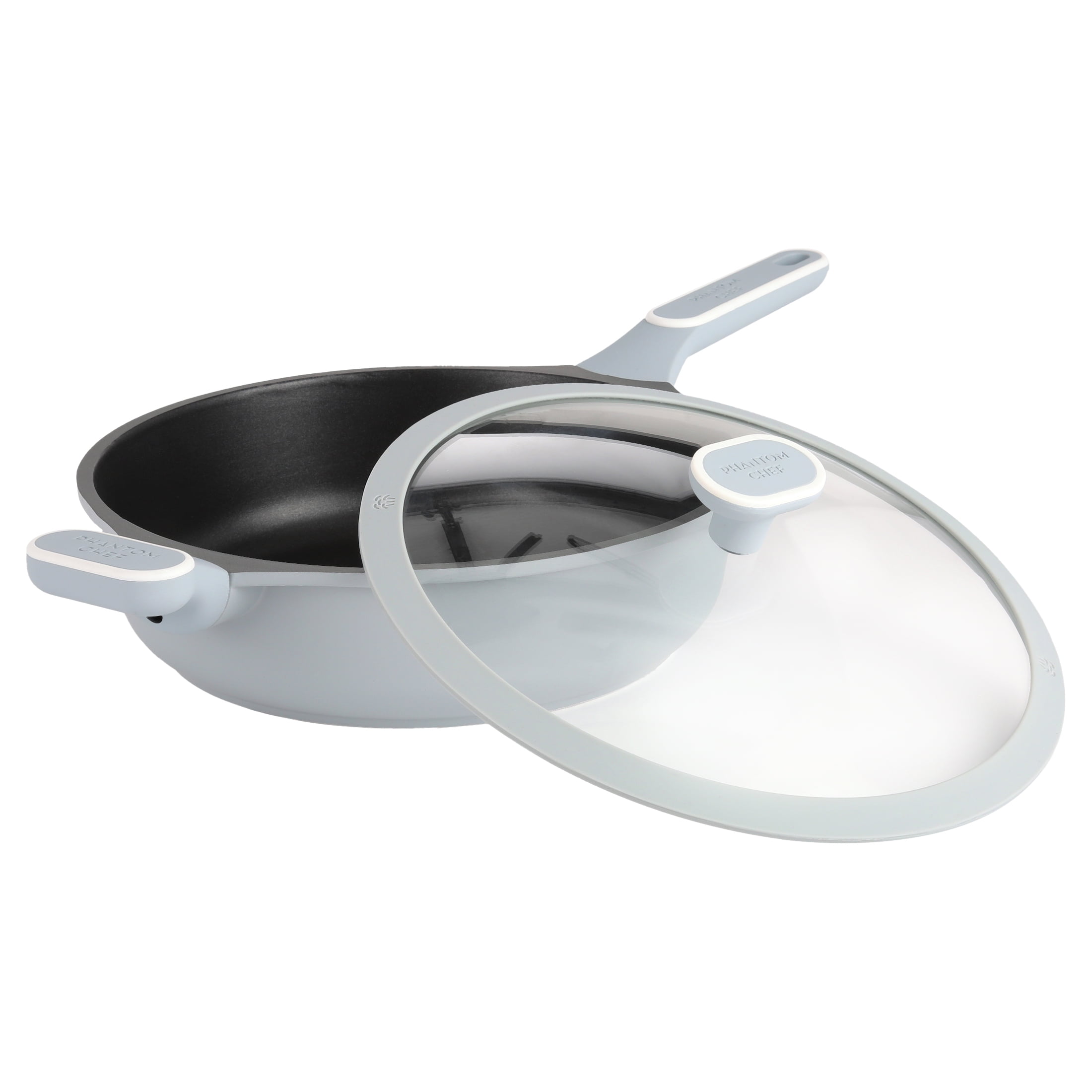 Phantom Chef 11 – Inch Deep Frypan with Lid – Cast Aluminum – Sky Blue – Midnight Collection