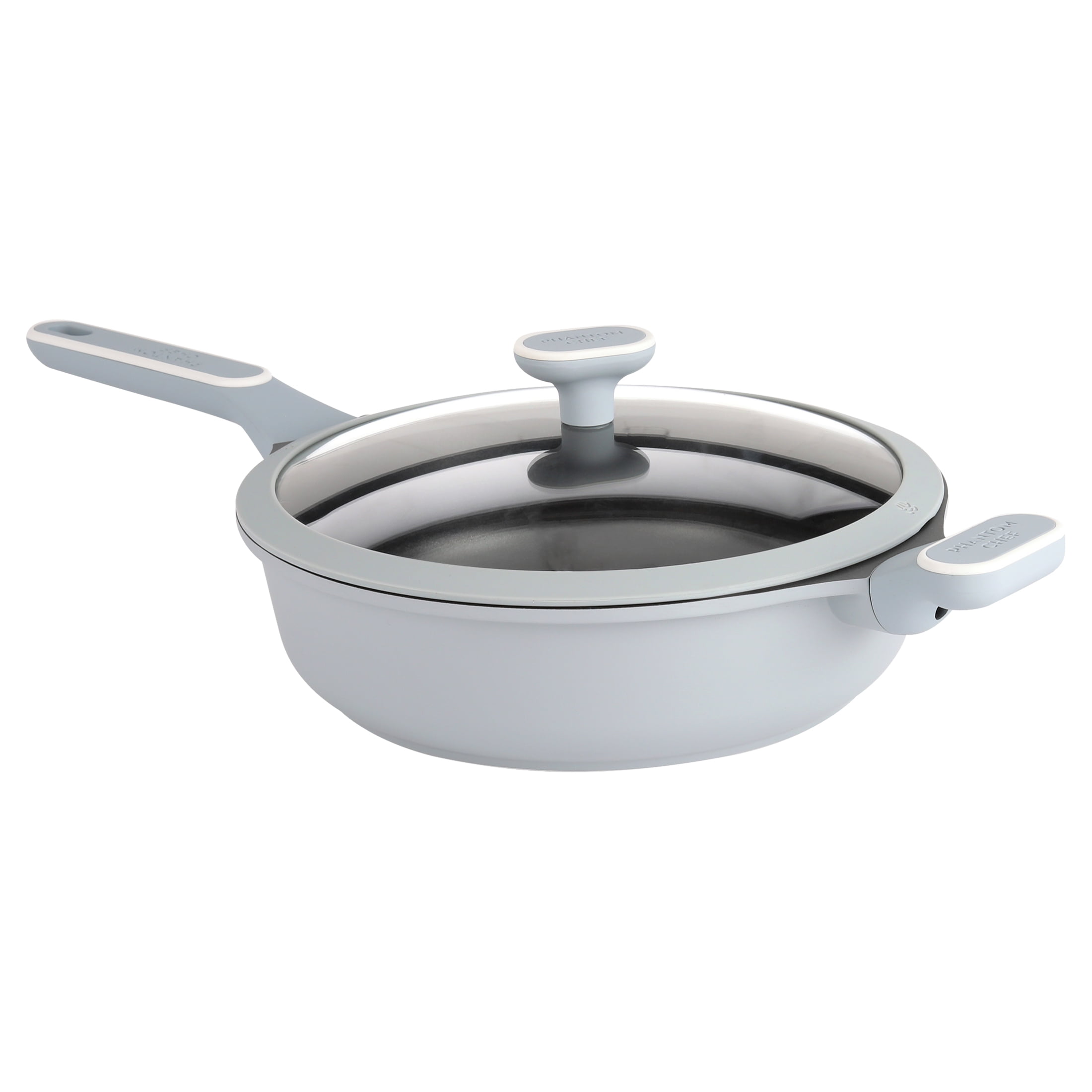 The Phantom Chef 11 – Inch Deep Frypan – Sky Blue – From the Midnight Collection is the perfect all-around pan for cooking family favorites at home. Featuring a deeper design than regular frypans, this is the ideal pan for cooking curries or braising chicken. This stylish piece is as durable as it is appealing – and with a ceramic non-stick coating, you’ll be able to sauté, fry or grill food with ease! Crafted from cast aluminum for a harder and longer wearing frypan, this essential piece of cookware from the Midnight Collection is compatible with all stovetops, including induction. The Deep Frypan also comes with a glass lid, so you can keep an eye on your cooking without having to let any heat out. The handle is ergonomically designed and comfortable to grip, even when it’s on the stovetop.