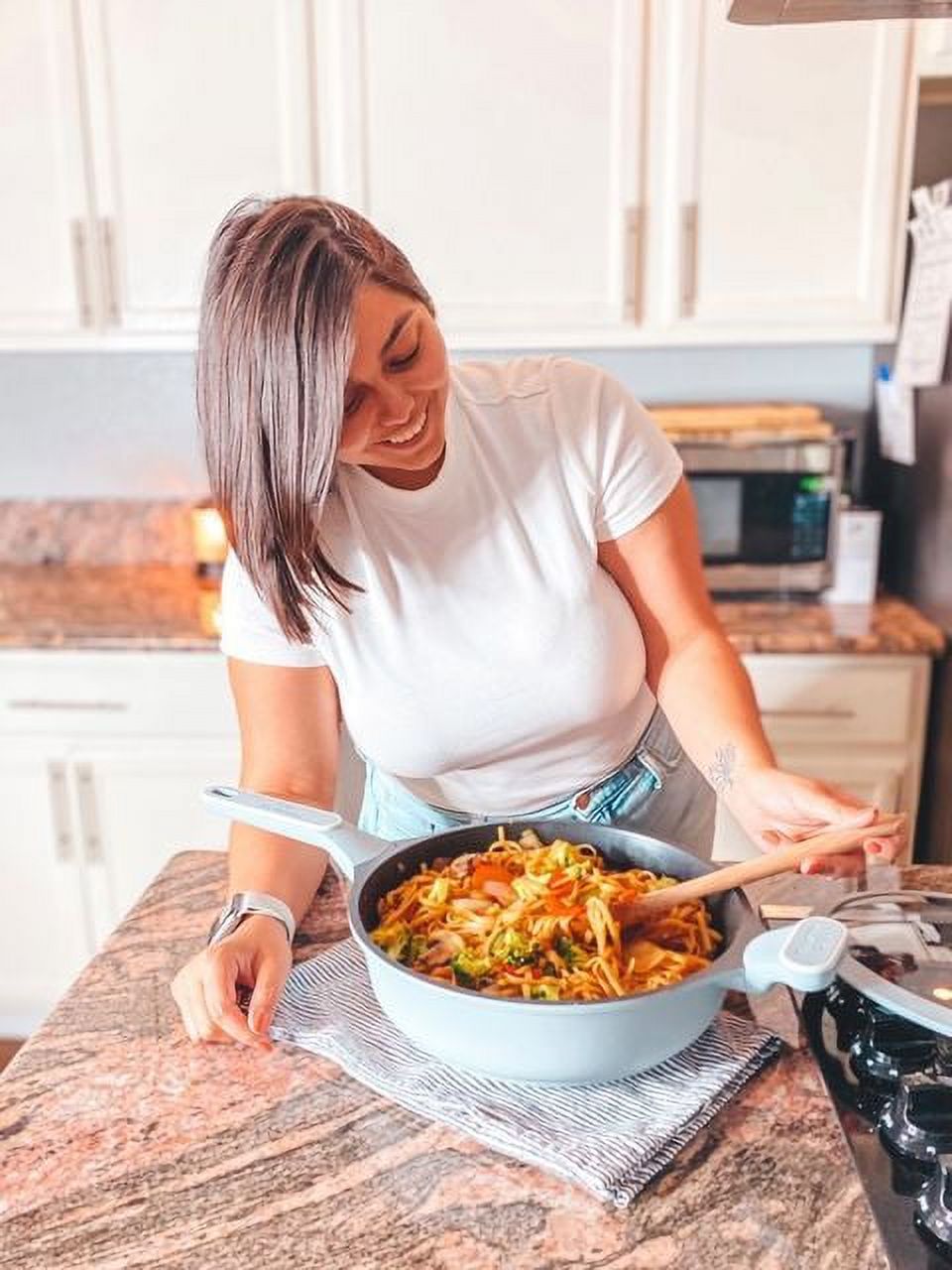 Phantom Chef 11 – Inch Deep Frypan with Lid – Cast Aluminum – Sky Blue – Midnight Collection Available in Black, Emerald and Sky Blue Non-Stick Ceramic Coating Non-Toxic – PFOA & PTFE Free Aluminum Body ‘Stay Cool’ Handle Dishwasher Safe – Hand Wash Preferred Compatible with all stove tops; gas, induction, electric, halogen, and ceramic