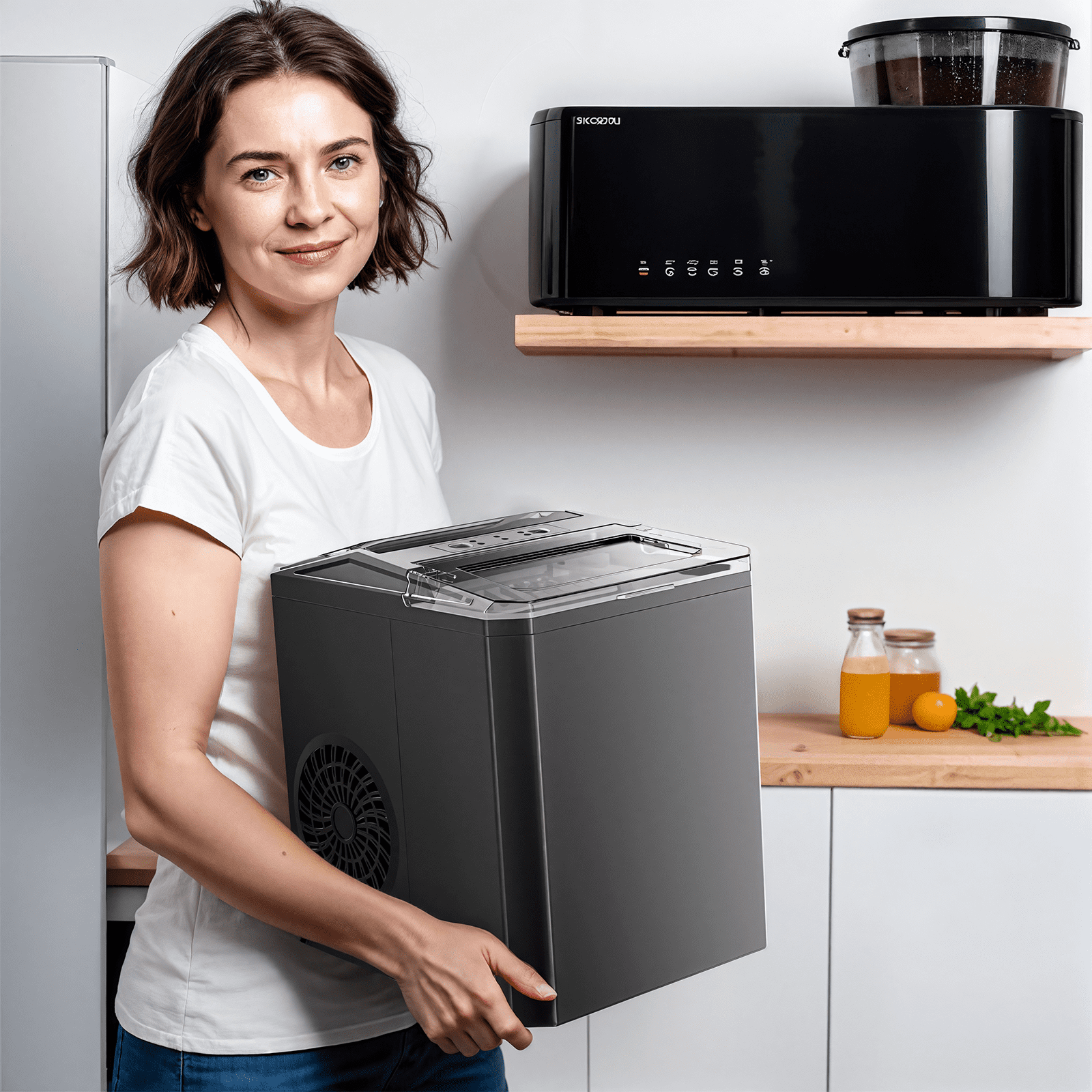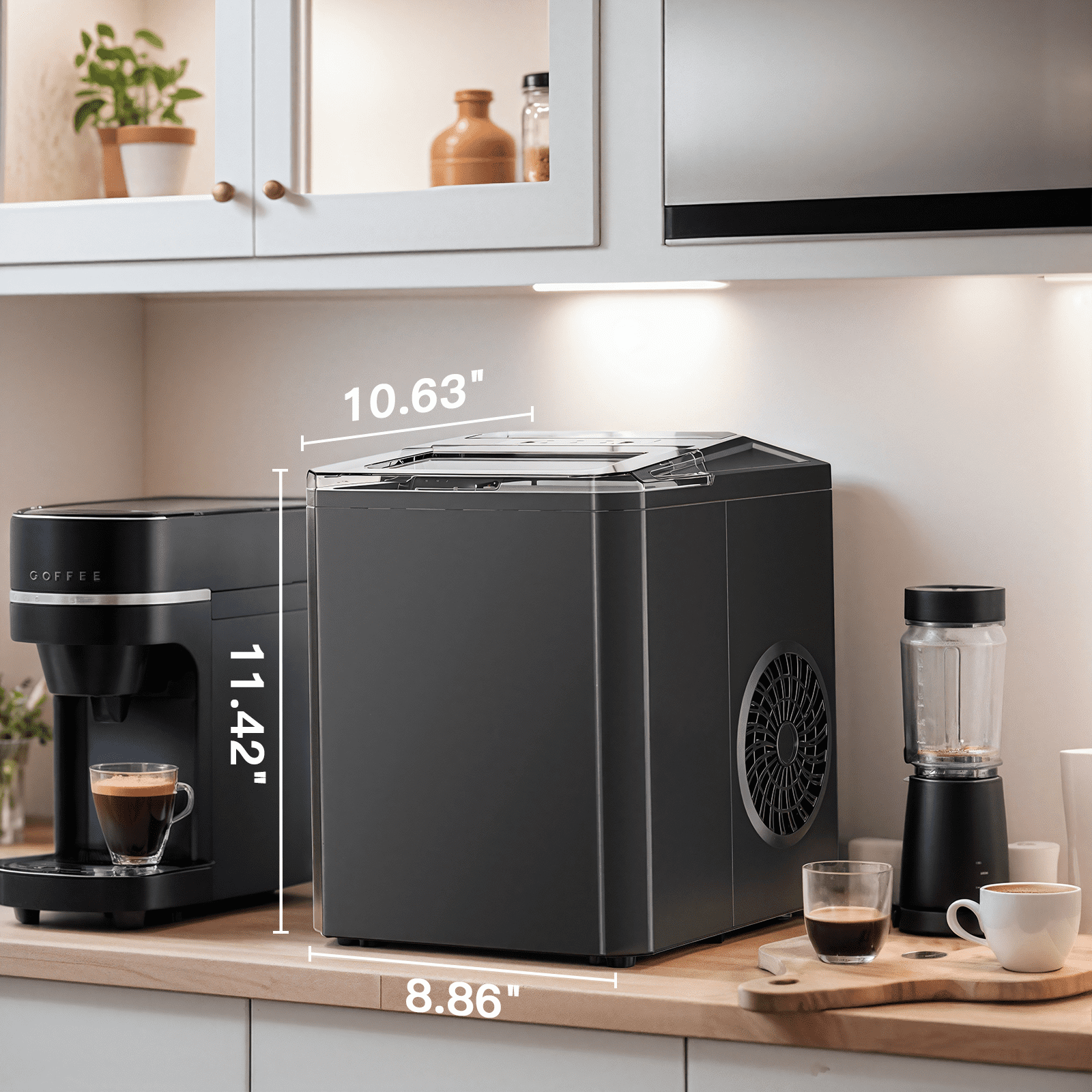Specifications: Maximum Capacity: 26 lbs Wattage: 160 Watts Water Tank: 1.1L Noise: 35 dB Ice Speed: 9 Cubes/6 Mins Weight per Basket Ice: 2.6 lbs Special Feature: Self-Cleaning Product Highlights: Rapid Ice Production: The Philergo Ice Maker produces 9 bullet-shaped ice cubes every 6 minutes. The water tank holds 2 liters of water and produces 26 pounds of ice in 24 hours. TWO SIZES OF ICE: You can make two different sizes of ice. Smaller ice cubes can chill seafood and beer to keep them fresh and cold. Large ice cubes are better for beverages and will cool them down quickly. QUIET AND USER-FRIENDLY: Makes ice cubes at less than 35 decibels, similar to a working refrigerator. Transparent lid allows you to monitor ice capacity. A sensor automatically detects when the ice is full and stops making ice to prevent spillage. SELF-CLEANING AND PORTABLE: The Philergo ice maker measures 8.86 x 10.63 x 11.42 inches and is portable and efficient. Press the on/off button for 5 seconds to start the self-cleaning program.