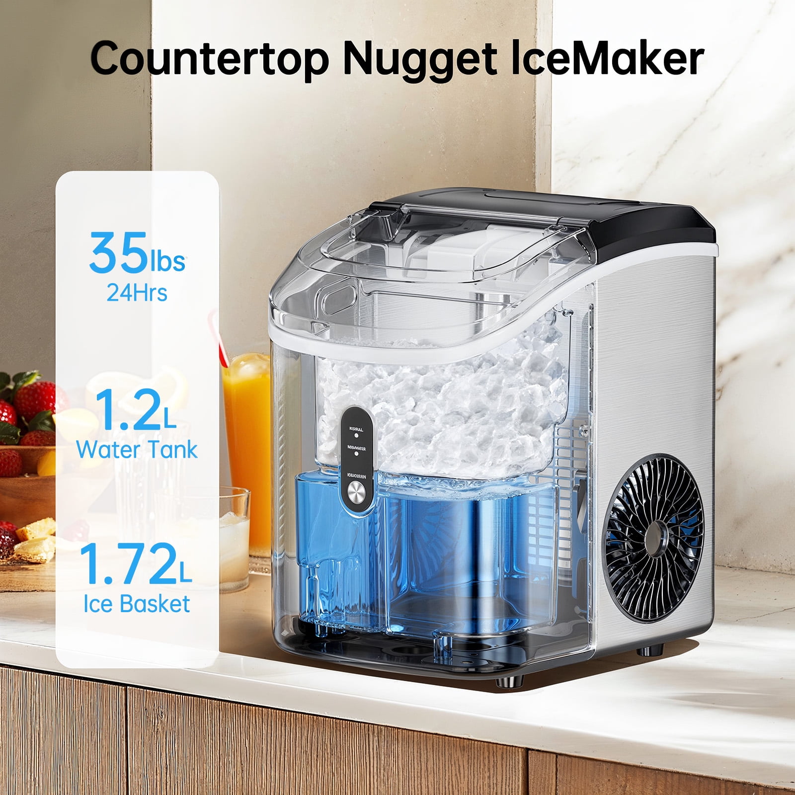 This Philergo nugget ice maker will be your best choice. It is different from the bullet ice cubes, the resulting nugget ice is soft and easy to chew, the satisfying crunch and chewy texture of nugget ice comes from the compacted and layered ice flakes, resulting in a better mouthfeel, making it a good choice for making smoothies, cocktails, and sodas. Besides, as opposed to traditional hard block ice which are chewable, brittle, ready fast and retains its flavor. The optimal melting speed preserves the original flavor of whisky and cold drinks. Due to the compact of the design, our Philergo small and portable countertop ice maker is very suitable for home and office use, helping to cool off the heat and make delicious food. It can also be taken outdoors and is a good companion for camping, barbecues, and parties. Note : Please check the blue-green color on the surface is a protective film, please remove it before use. ????Specifications: · Brand: Philergo · Capacity: 35 lbs · Noise: 35 dB · Wattage: 192 Watts · Water Tank: 1.2L · Making Ice Speed: 6 Min · Self-Cleaning: 15 Mins · Ice Type: Nugget Ice · Ice Shape: Nugget Ice, Pellet Ice, Pebble Ice · Dimension: 11.3″W x 8.66″D x 12.68″H · Feature: One Button Operation, Ice-Full Alert, Water Shortage Alert ????Product Highlights? · Makes Ice Quickly: This block ice machine can make ice in just 6 minutes and can make up to 35 pounds of ice per day. Equivalent to filling 100 250ml glasses. Have your cold beverage ready in minutes. · Quiet and Friendly: The production process of the block ice maker is quiet, producing only 35 decibels of noise. Let you not be disturbed when you are working and resting · Lightweight & Portable: 12.5″W x 9.9″D x 14.5″H is compact enough to fit perfectly on any countertop in your home and office. Easy to carry design, convenient for you to use in any occasion such as home/kitchen/camping/RV/party · Cleaning & Maintenance: The removable lid on this countertop ice maker gives you easy access to every nook and cranny for deep cleaning. Built-in self-cleaning cycle, complete cleaning activated by pressing and holding the ICE/CLEAN button for 5 seconds, and then just take 15 mins! ???? Package Included · 1 x Nugget Ice Maker · 1 x Ice Scoop · 1 x Ice Basket · 1 x User Manual