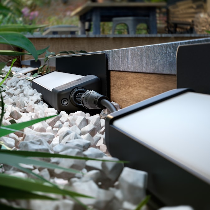 Illuminate your outdoor spaces, such as fences, walls, and hedges, with white and color light. Part of the LowVolt system, the Amarant linear wall wash light connects to a Philips Hue power supply unit and can even be connected to one another, creating a continuous wall of light.
