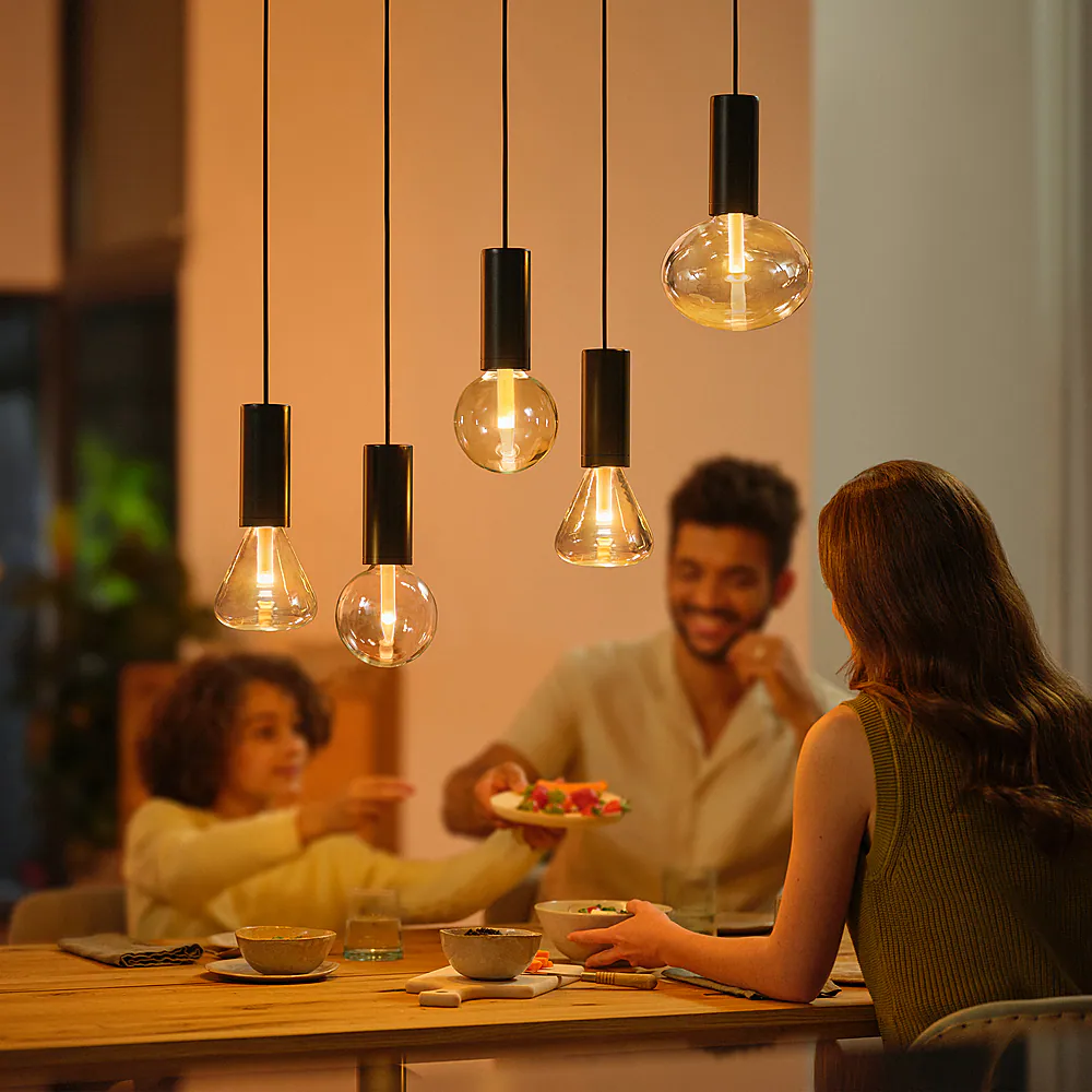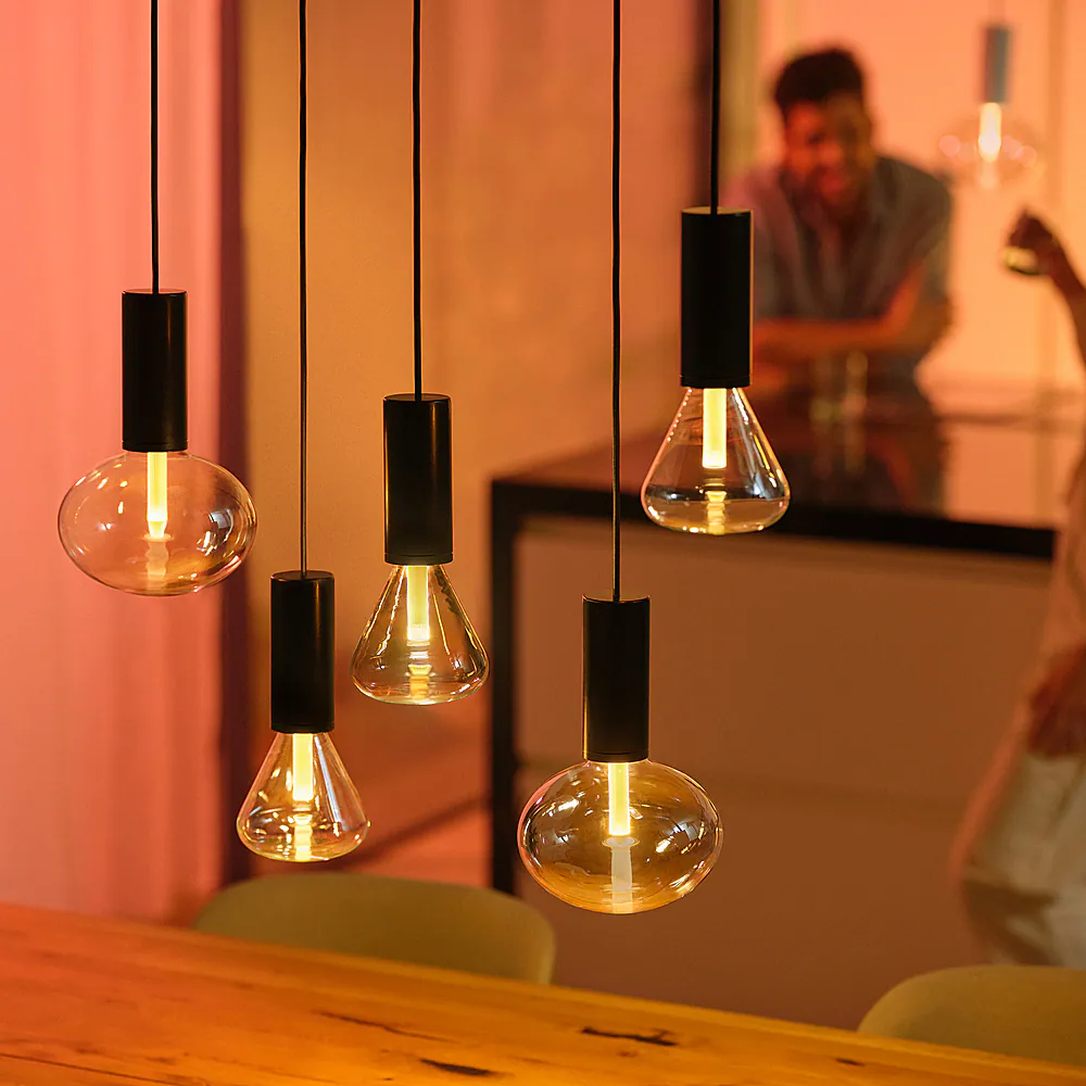 With its inner tube and reflective glass coating, the Lightguide bulb give you a glow of brilliantly colorful light, which you can dim to the perfect level. Use any of millions of shades of white or color light to set the mood in any space of your home. Specially made to fit the Lightguide bulb, its fabric-wrapped cord and metal holder (sold separately) — which perfectly covers the base of the bulb — lets you hang your bulb in style. Set the mood instantly with Bluetooth-enabled LED lamps and the Hue Bluetooth app, which allows you to control up to 10 lights in a room. Add a Hue Bridge (sold separately) to your smart lighting system to unlock all smart lighting features.