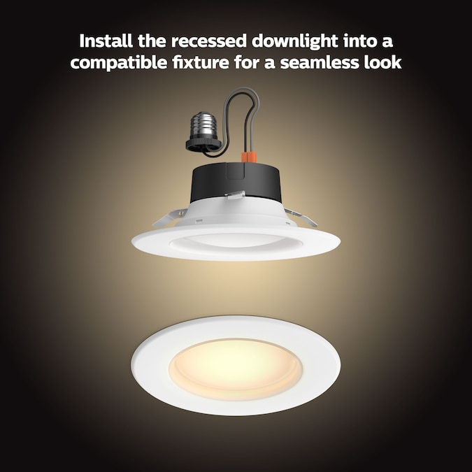 - Includes four 12W Hue White ambiance smart retrofit LED 5/6 inch tunable white downlight for recessed cans; requires existing recessed cans