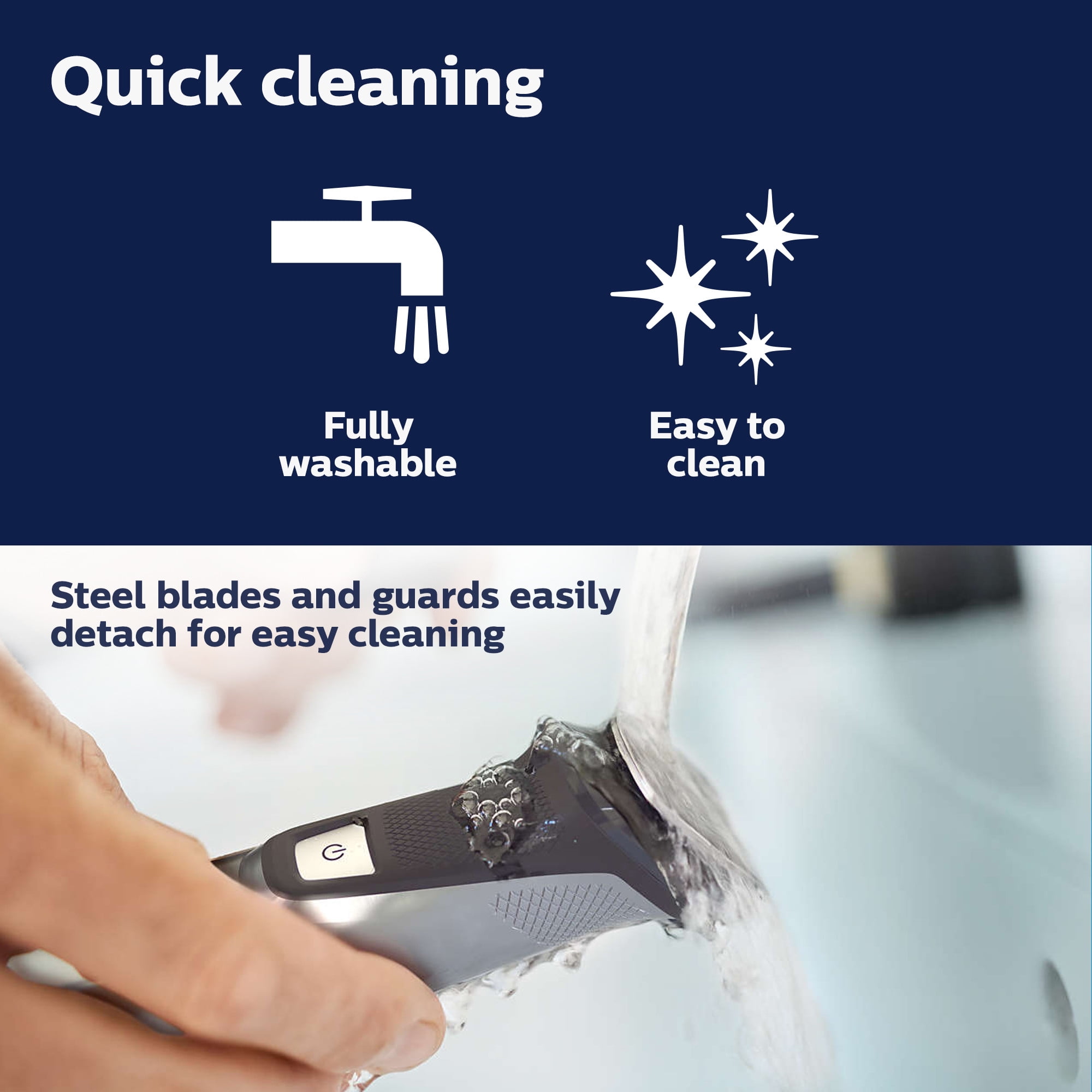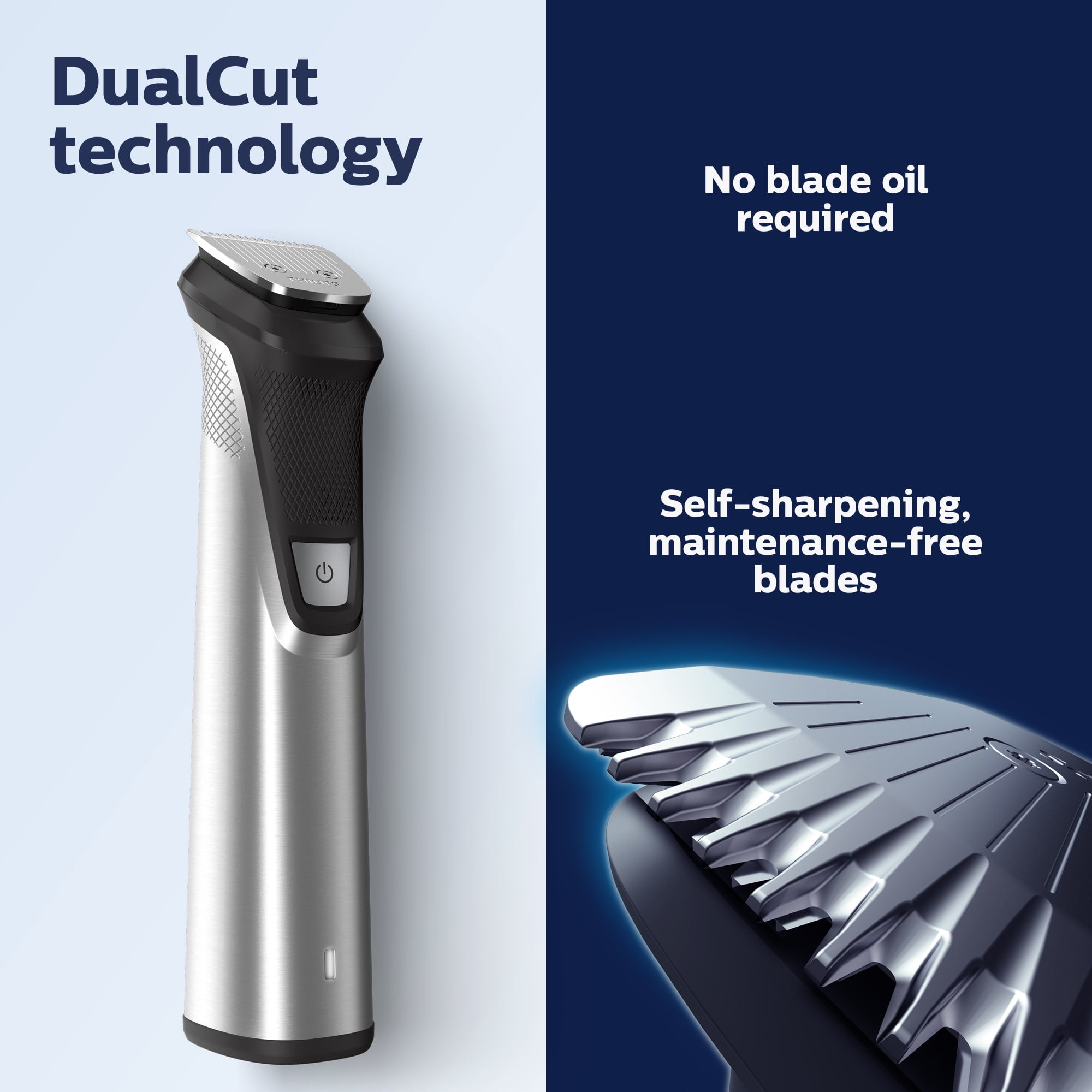 Maximum precision with DualCut technology includes 2x more self sharpening blades that remain sharp as day one after 3 years of use. Our most powerful Lithium-ion rechargeable battery delivers up to 5 hours of runtime per charge. 100% Showerproof for Wet/ Dry Use and easy cleaning Our unique cutting guards are reinforced with ultra-strong fiberglass material to prevent bending and buckling, ensuring an even trim every time. Includes a body grooming/ man-scaping attachment to protect and easily trim sensitive areas.
