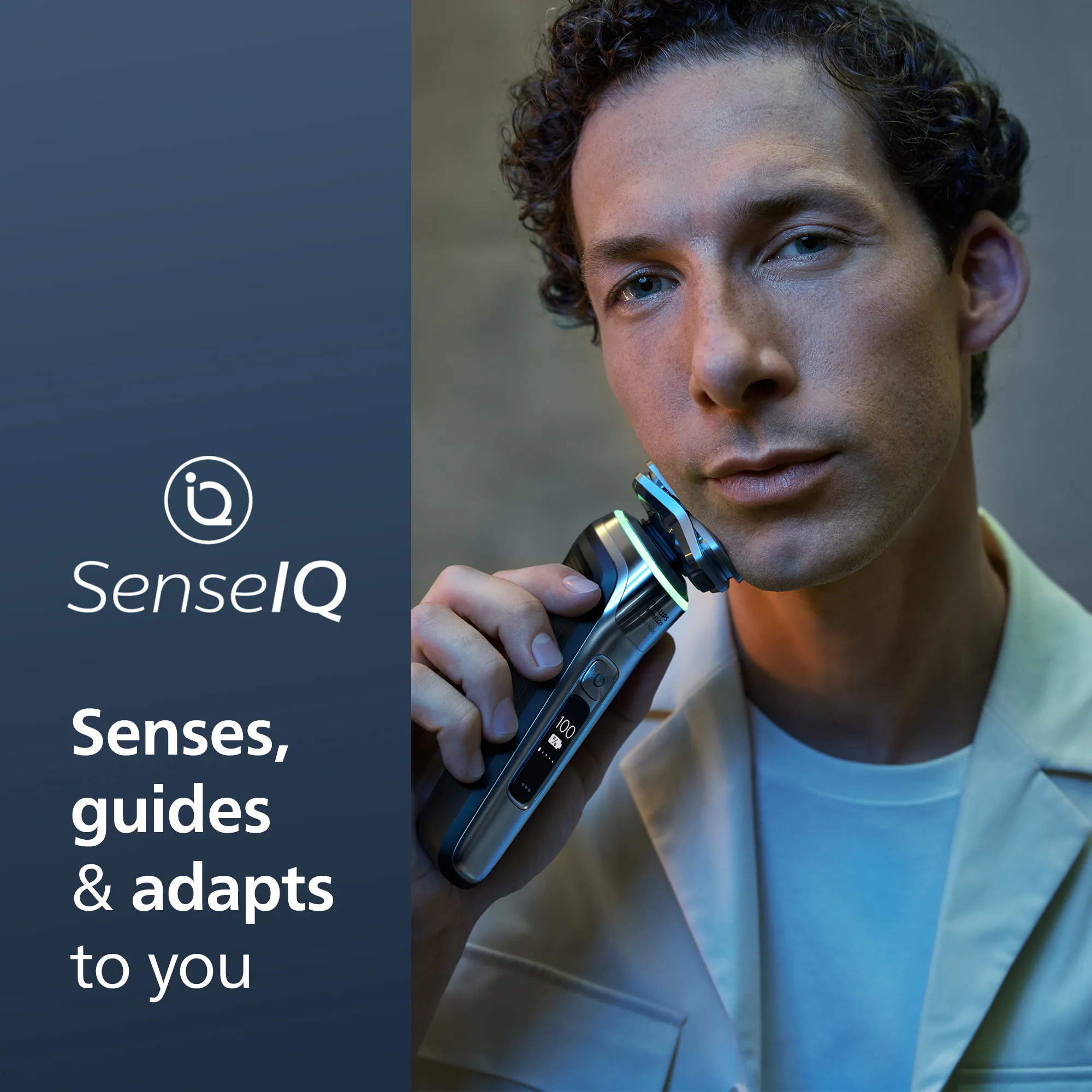 Philips Norelco Shaver 9500 delivers superior closeness and personalized skin comfort with SenseIQ technology. Designed to prevent skin irritation, the 9500 features Pressure Guard Sensor which guides you to the the right pressure as you shave.
