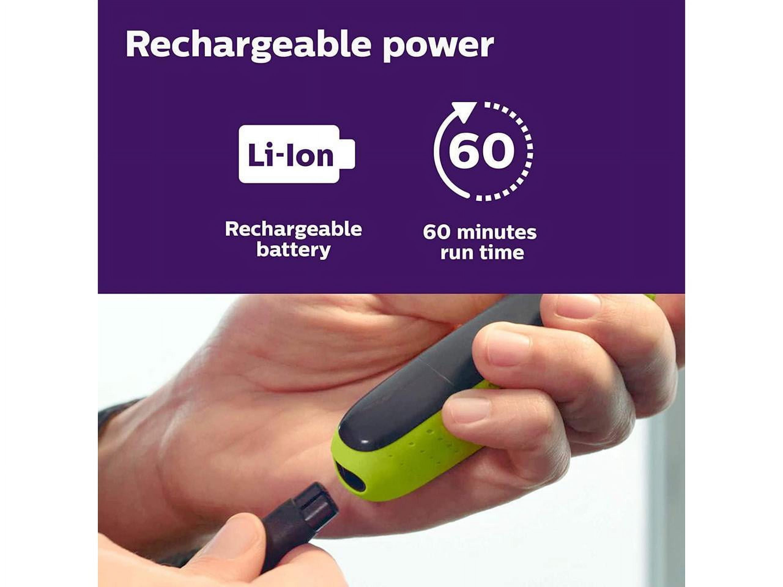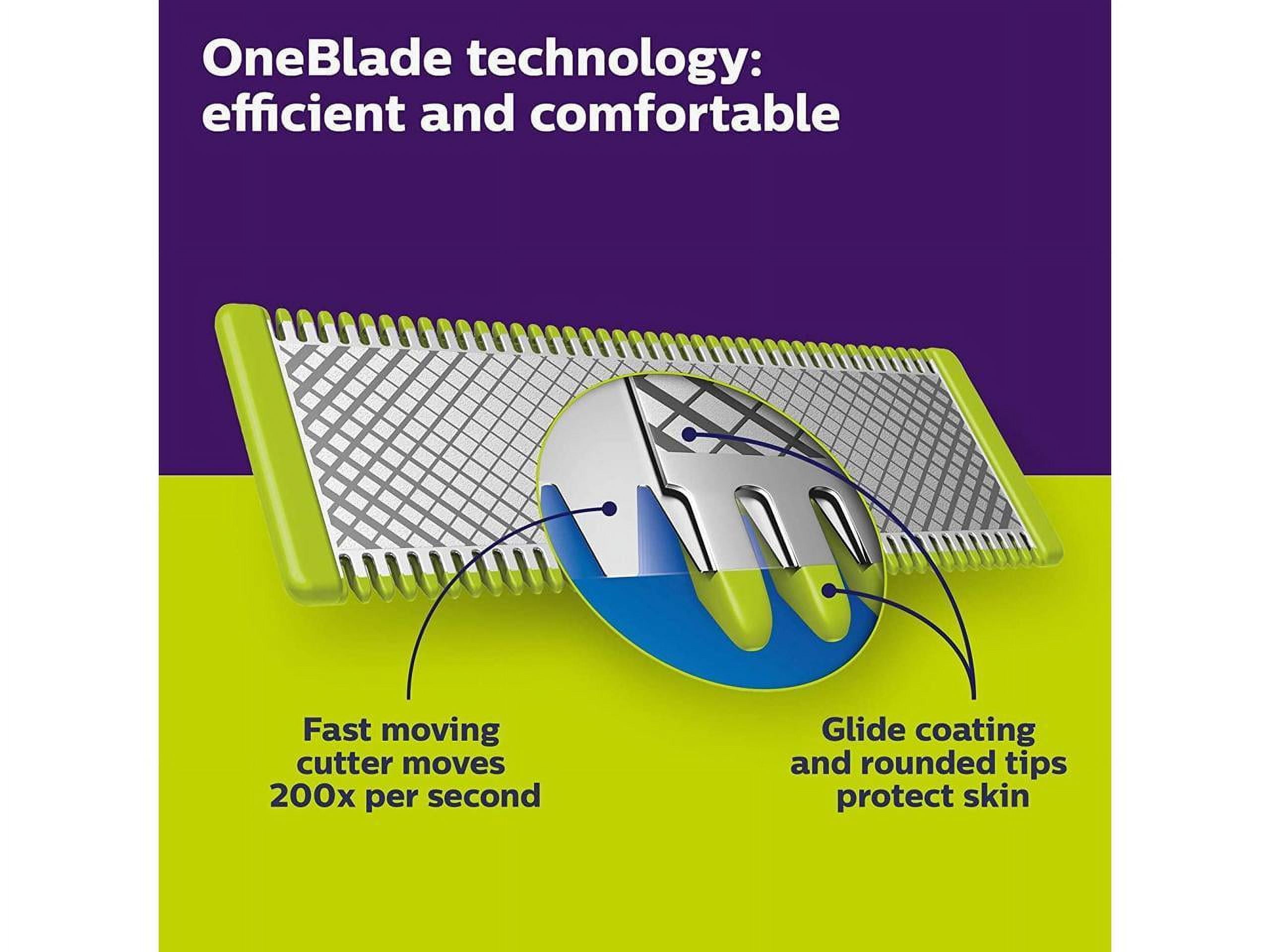 Unique OneBlade technology – Designed for facial styling and body grooming, the Philips OneBlade trims, edges and shaves any length of hair. It delivers an easy and comfortable shave thanks to a glide coating and rounded tips. And with a cutter that moves at 200x per second, it’s efficient even on longer hairs. Dual-sided blade – One Blade follows the contours of your face, allowing you to easily and comfortably trim and shave all areas. Use the dual-sided blade to style your edges and create clean lines by moving the blade in any direction. Durable OneBlade – Easily replace your blade once every 4 months* for optimal performance. A green usage indicator will appear once the blade is worn out. Wet & dry – Use this waterproof razor at the sink or take it with you into the shower. The One-Blade wet and dry razor is easy to clean and can be used with or without foam. Shave it off – The OneBlade shaver doesn’t shave as close as a traditional blade, ensuring your skin stays comfortable. Go against the grain and shave off any length of hair easily. Unique OneBlade technology – Designed for facial styling and body grooming, the Philips OneBlade trims, edges and shaves any length of hair. It delivers an easy and comfortable shave thanks to a glide coating and rounded tips. And with a cutter that moves at 200x per second, it’s efficient even on longer hairs. Dual-sided blade – One Blade follows the contours of your face, allowing you to easily and comfortably trim and shave all areas. Use the dual-sided blade to style your edges and create clean lines by moving the blade in any direction. Durable OneBlade – Easily replace your blade once every 4 months* for optimal performance. A green usage indicator will appear once the blade is worn out. Wet & dry – Use this waterproof razor at the sink or take it with you into the shower. The One-Blade wet and dry razor is easy to clean and can be used with or without foam. Shave it off – The OneBlade shaver doesn’t shave as close as a traditional blade, ensuring your skin stays comfortable. Go against the grain and shave off any length of hair easily. Unique OneBlade technology – Designed for facial styling and body grooming, the Philips OneBlade trims, edges and shaves any length of hair. It delivers an easy and comfortable shave thanks to a glide coating and rounded tips. And with a cutter that moves at 200x per second, it’s efficient even on longer hairs. Dual-sided blade – One Blade follows the contours of your face, allowing you to easily and comfortably trim and shave all areas. Use the dual-sided blade to style your edges and create clean lines by moving the blade in any direction. Durable OneBlade – Easily replace your blade once every 4 months* for optimal performance. A green usage indicator will appear once the blade is worn out. Wet & dry – Use this waterproof razor at the sink or take it with you into the shower. The One-Blade wet and dry razor is easy to clean and can be used with or without foam. Shave it off – The OneBlade shaver doesn’t shave as close as a traditional blade, ensuring your skin stays comfortable. Go against the grain and shave off any length of hair easily. Unique OneBlade technology – Designed for facial styling and body grooming, the Philips OneBlade trims, edges and shaves any length of hair. It delivers an easy and comfortable shave thanks to a glide coating and rounded tips. And with a cutter that moves at 200x per second, its efficient even on longer hairs. Dual-sided blade – OneBlade follows the contours of your face, allowing you to easily and comfortably trim and shave all areas. Use the dual-sided blade to style your edges and create clean lines by moving the blade in any direction. Durable OneBlade – Easily replace your blade once every 4 months* for optimal performance. A green usage indicator will appear once the blade is worn out. Wet & dry – Use this waterproof razor at the sink or take it with you into the shower. The OneBlade wet and dry razor is easy to clean and can be used with or without foam. Shave it off – The OneBlade shaver doesn’t shave as close as a traditional blade, ensuring your skin stays comfortable.