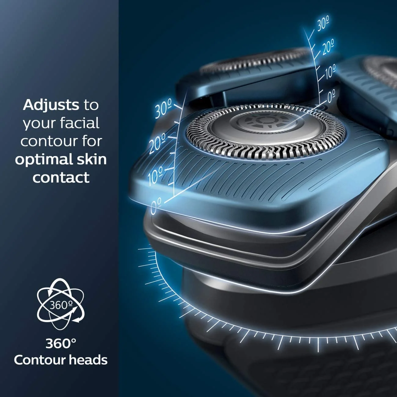 COMFORTGLIDE RINGS PROTECT FACE FROM IRRITATION: The shaving heads are surrounded with ComfortGlide rings, which have a special protective coating with skin gliding properties to shield your face from irritation. 360° CONTOUR HEADS: Maintains skin contact for a comfortable, smooth shave. Fully flexible heads turn 360° to follow your contours of the face and neck. Experience optimal skin contact for a thorough and skin-friendly shave. ENHANCED SHAVING EXPERIENCE WITH GROOMTRIBE APP: Perfect your shave by pairing your shaver with the Philips GroomTribe app. Shave by shave, track the progress of your skin, personalize your shave and master your technique for a shave that’s as close as it is kind to skin. CORDLESS OPERATION / 5 MINUTE QUICK CHARGE: Shave longer with 60 Minutes of cordless shaving from a 1-hour charge – that’s about 20 shaves or a quick 5-minute charge provides enough power for one shave. CHARGING STAND: Charging stand keeps the shaver stored, charged and ready to go with the included charging stand (Please see Description below for more information).